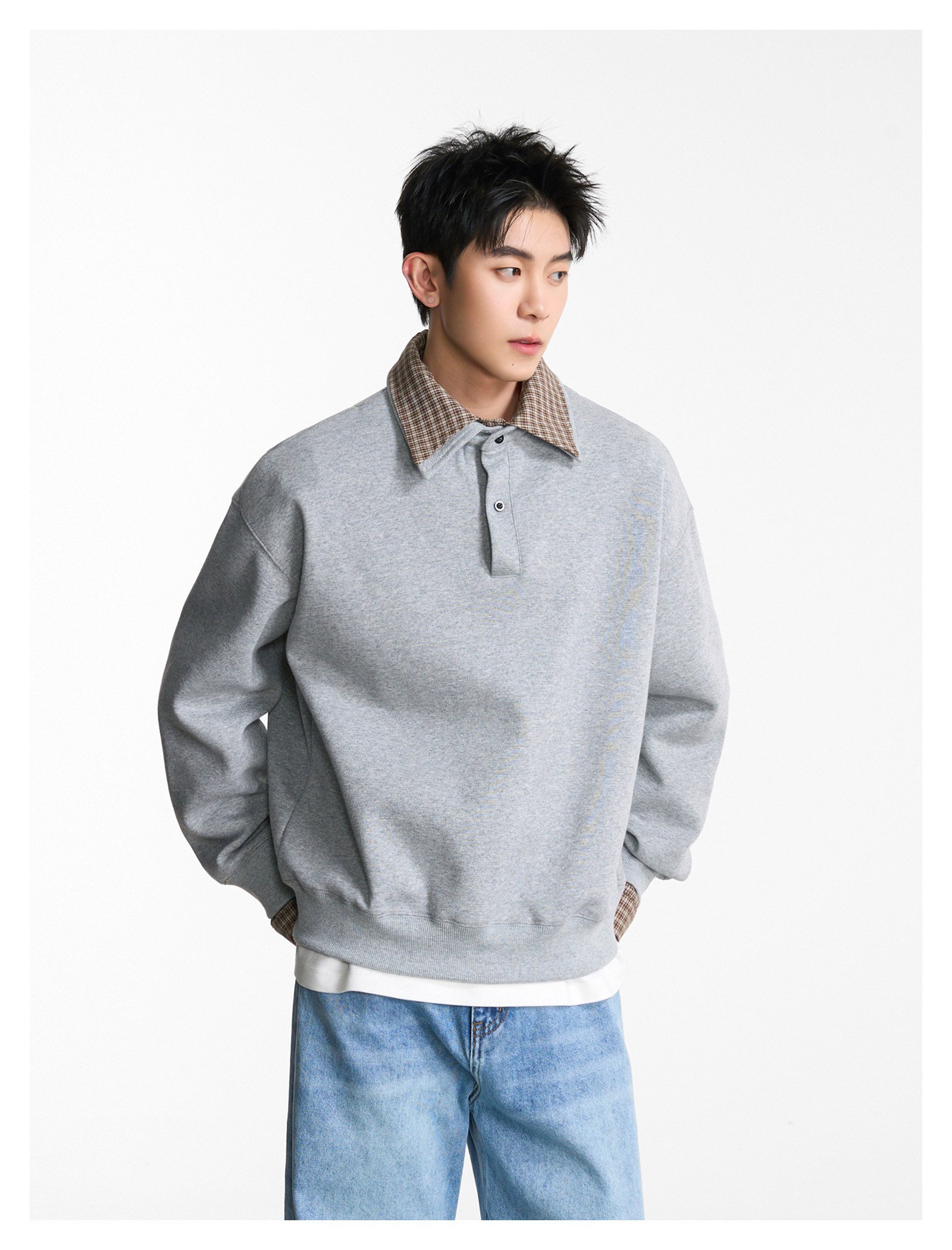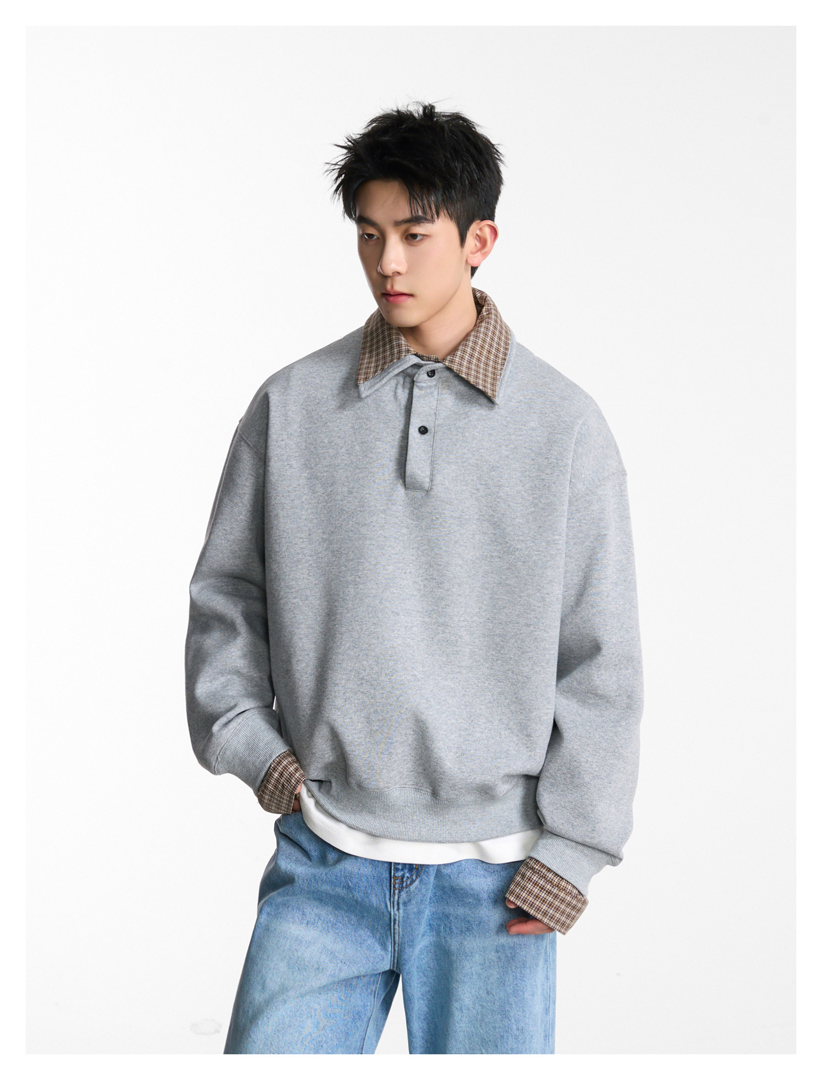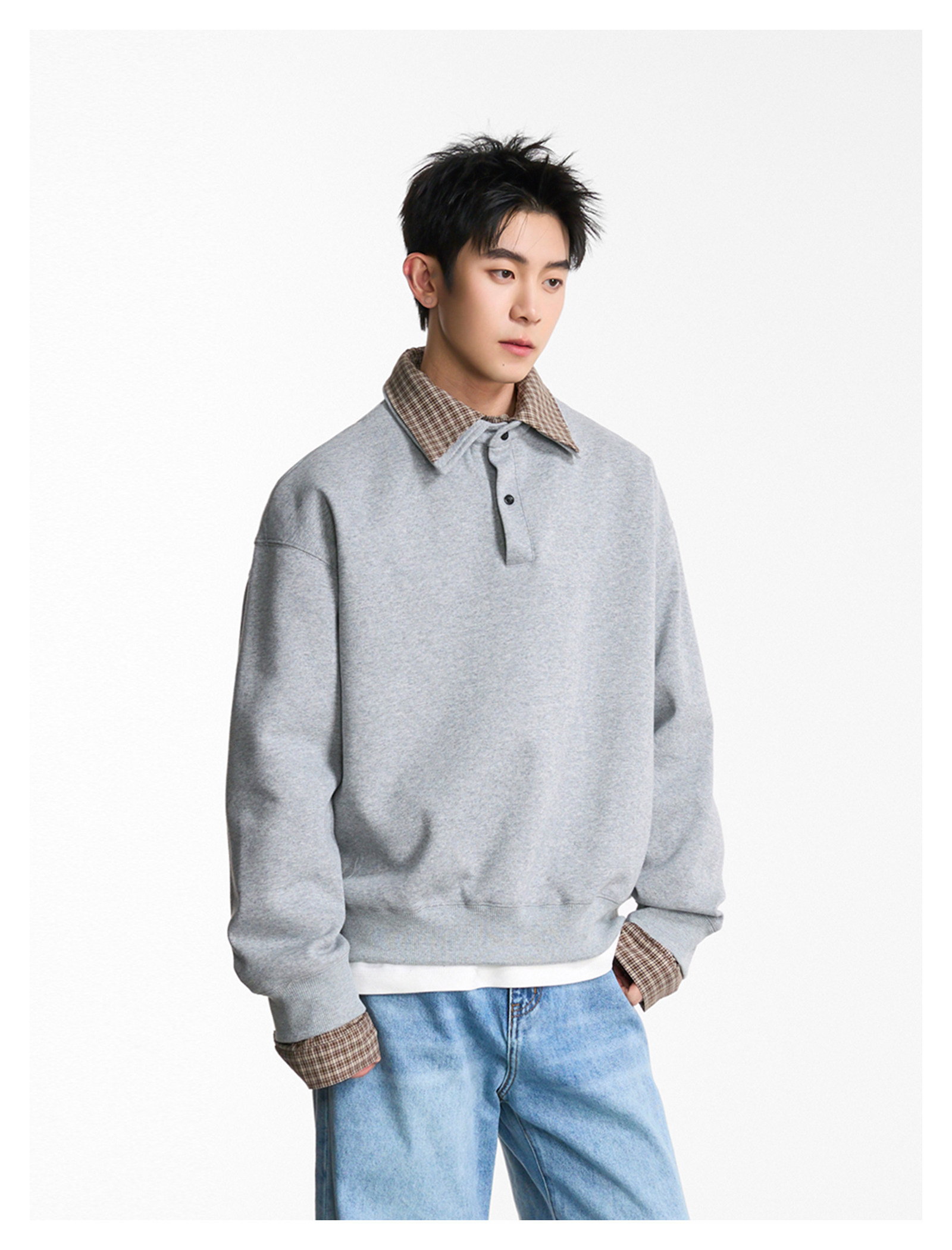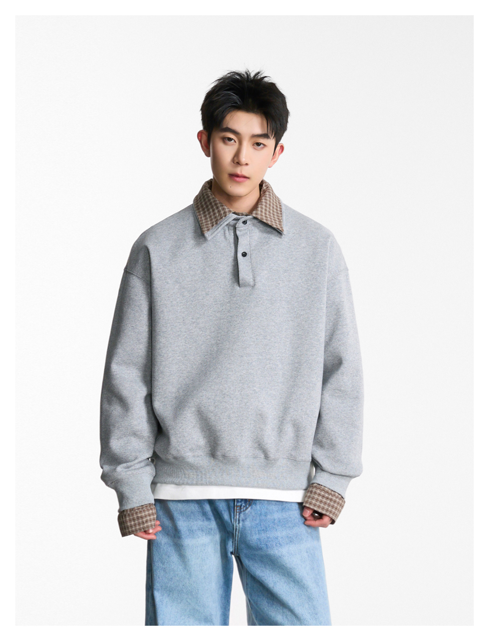 拼接寬版·兩件式長Polo衫
