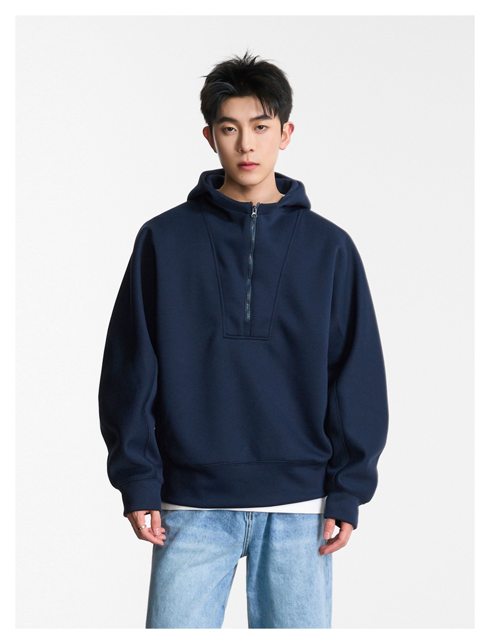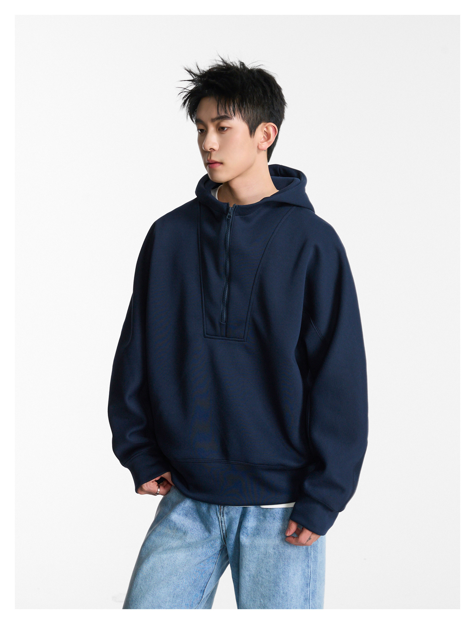 CleanFit寬版·拉鍊連帽Tee