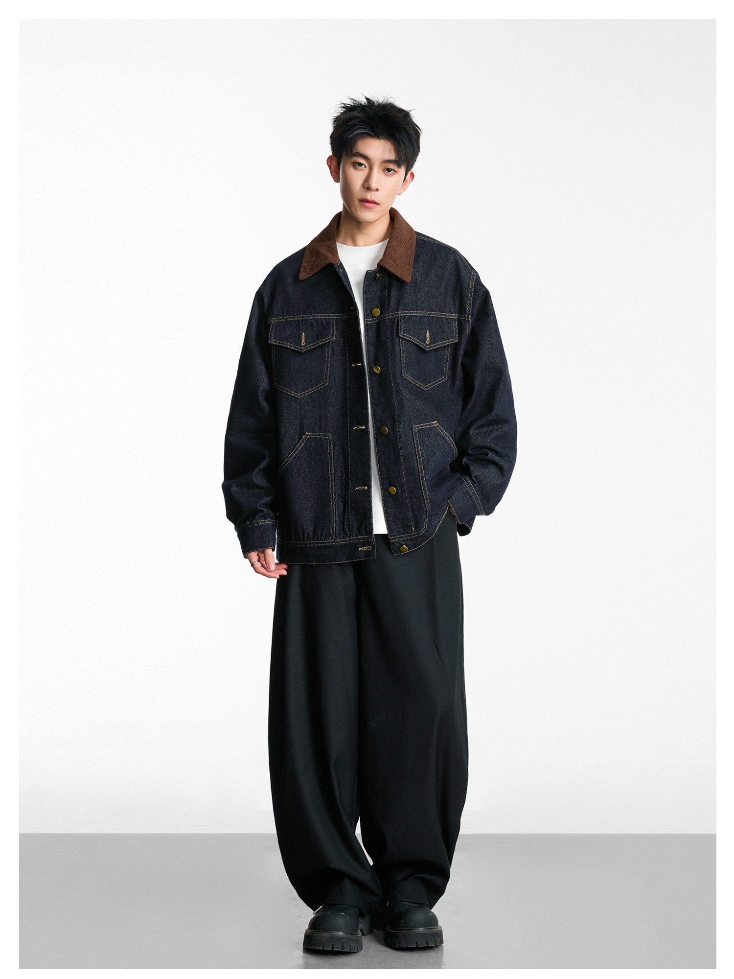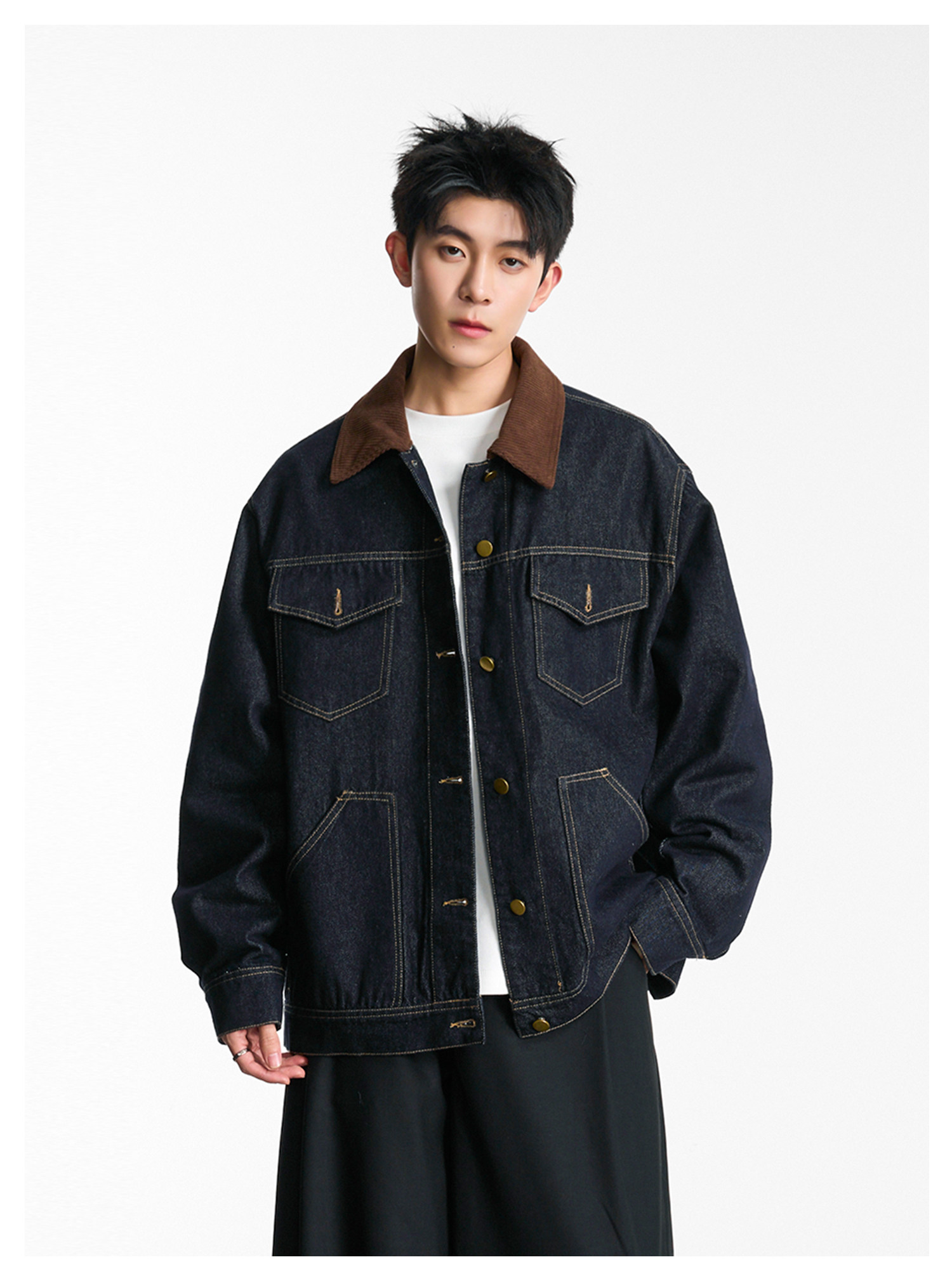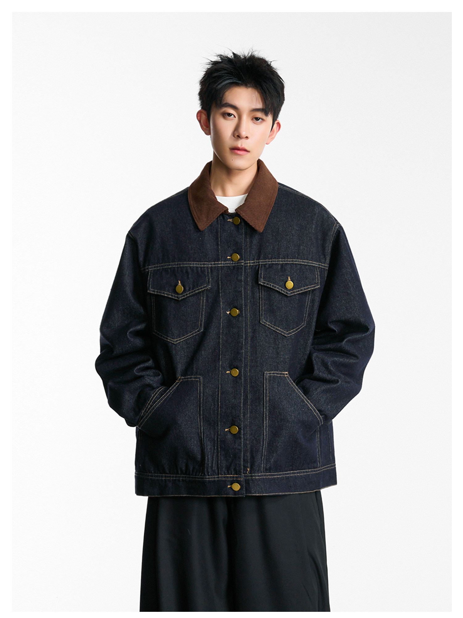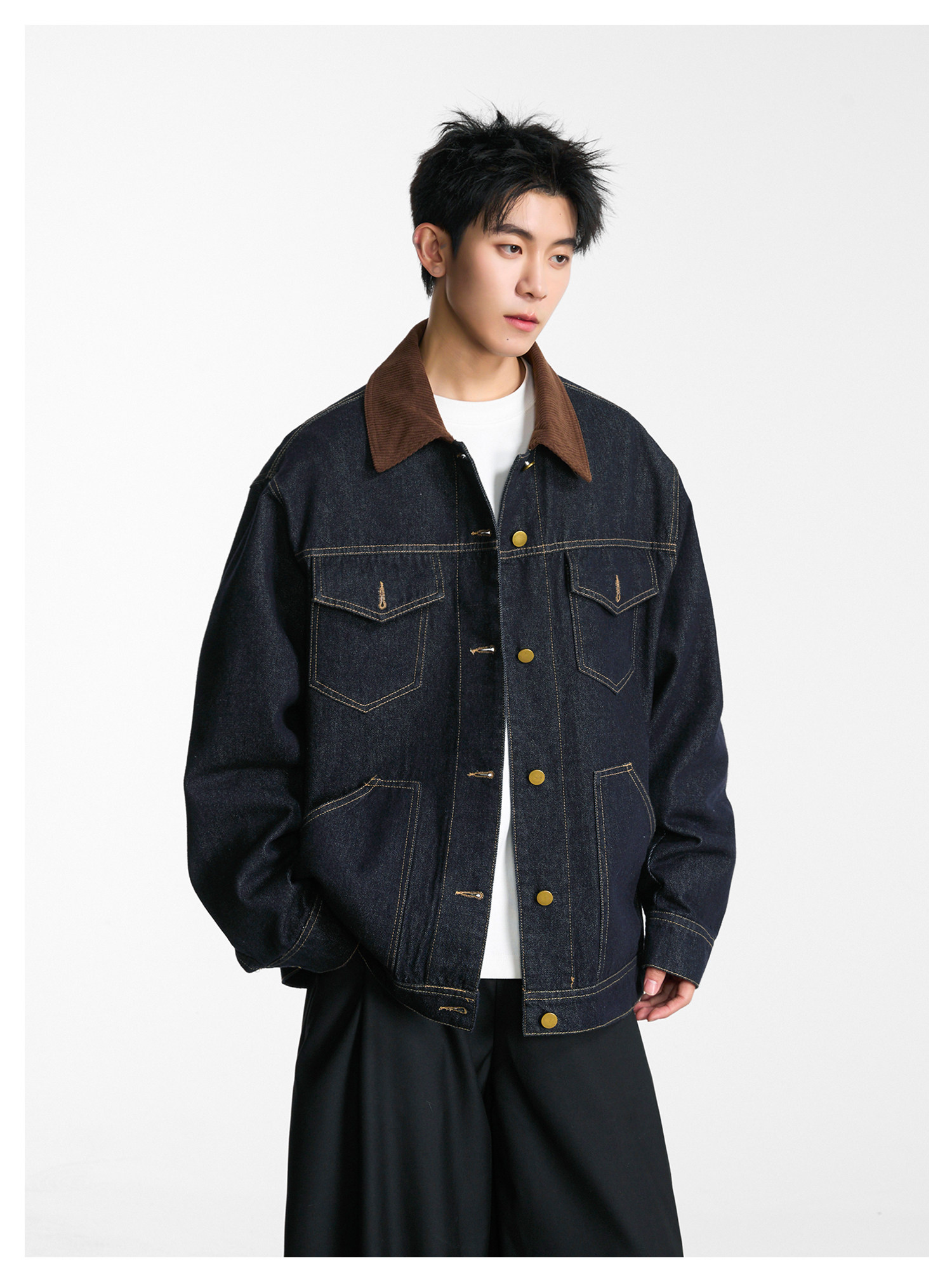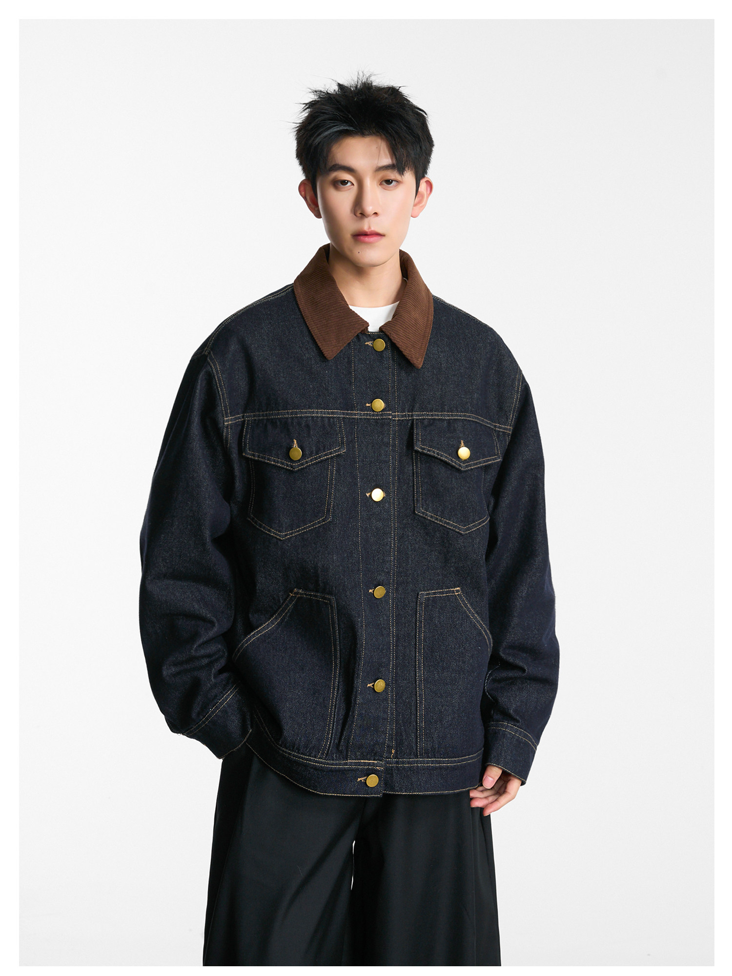 拼接燈芯絨·翻領牛仔夾克