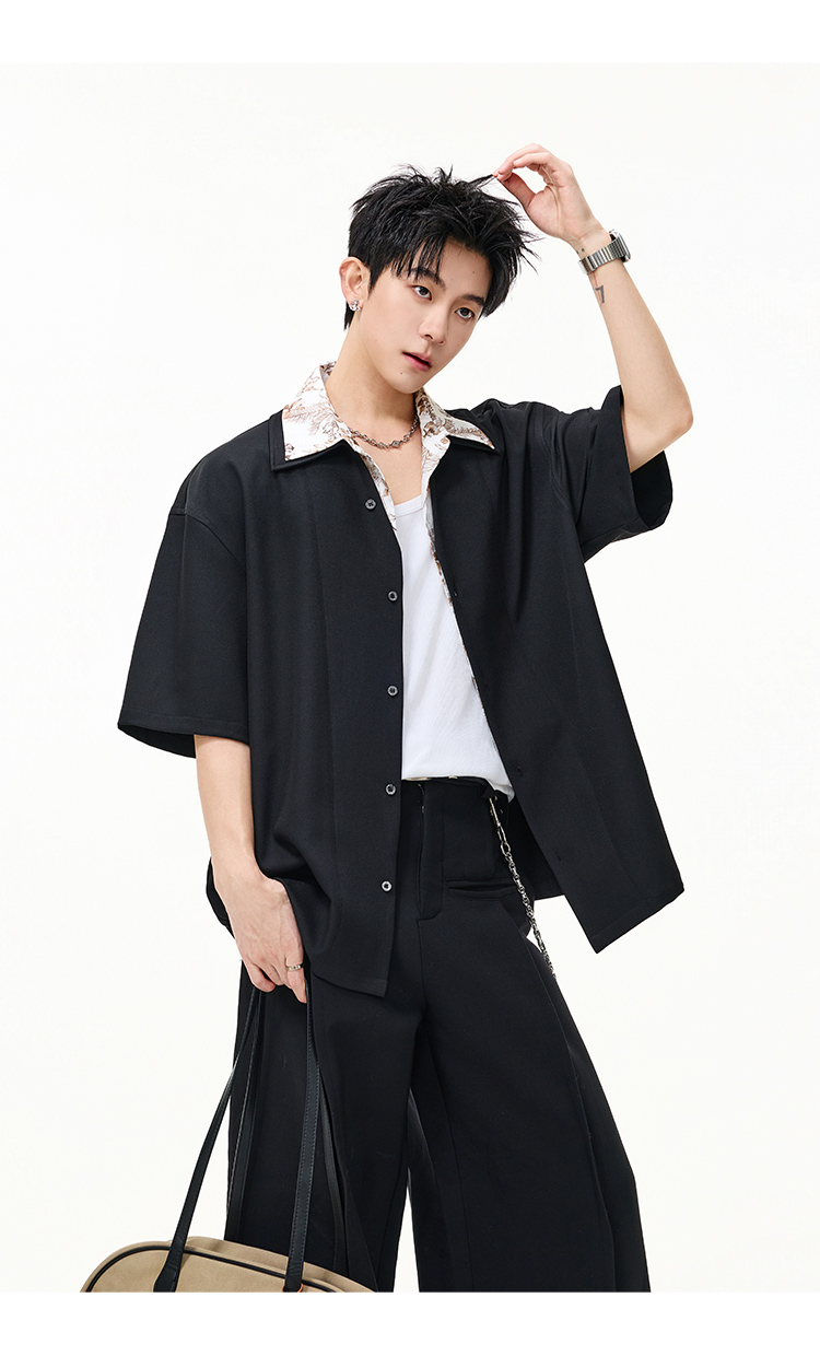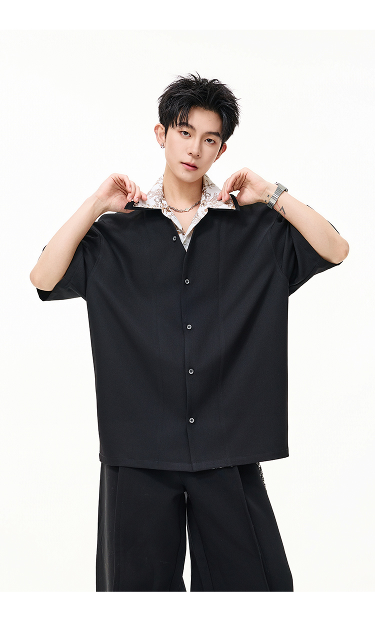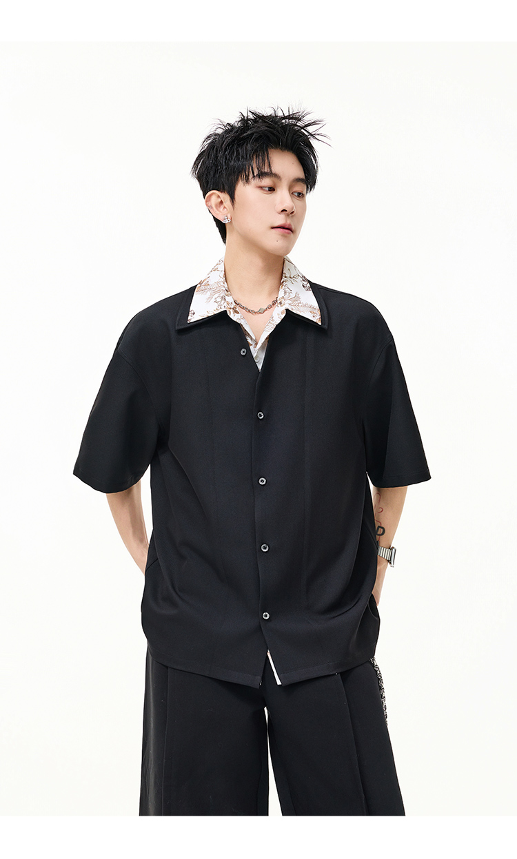 日系拼接·圓領短襯衫