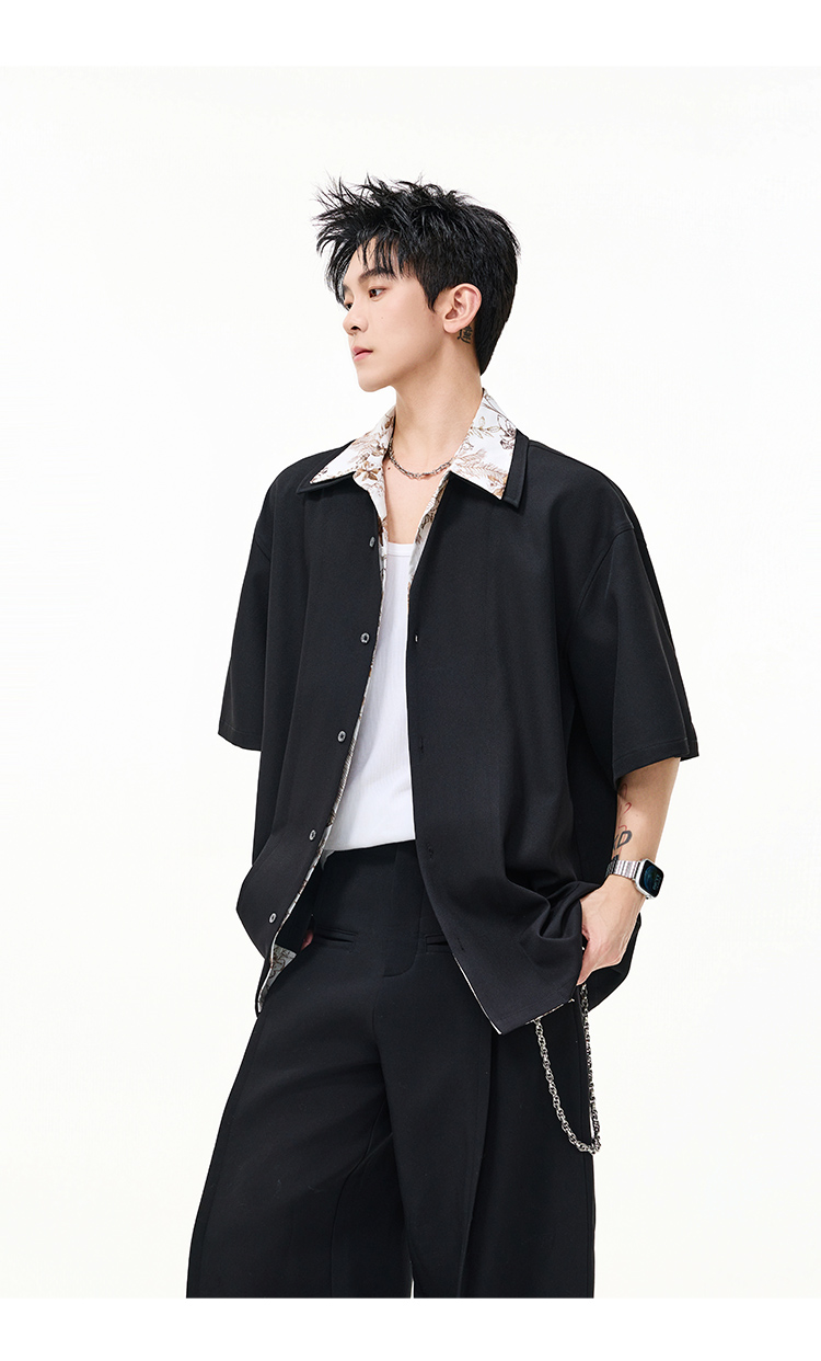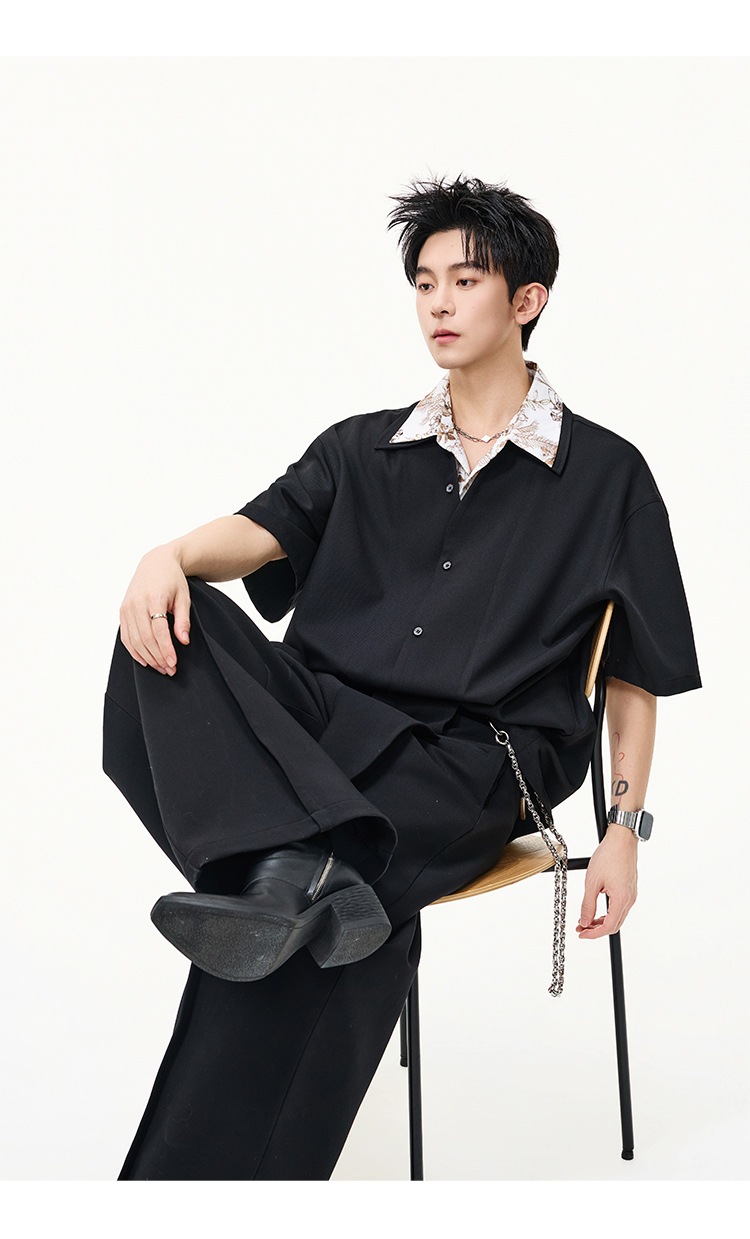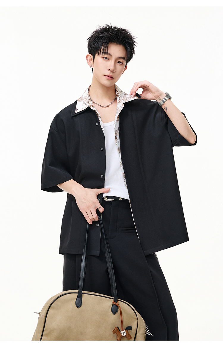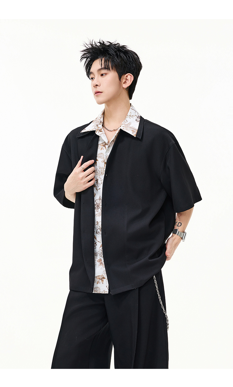 日系拼接·圓領短襯衫