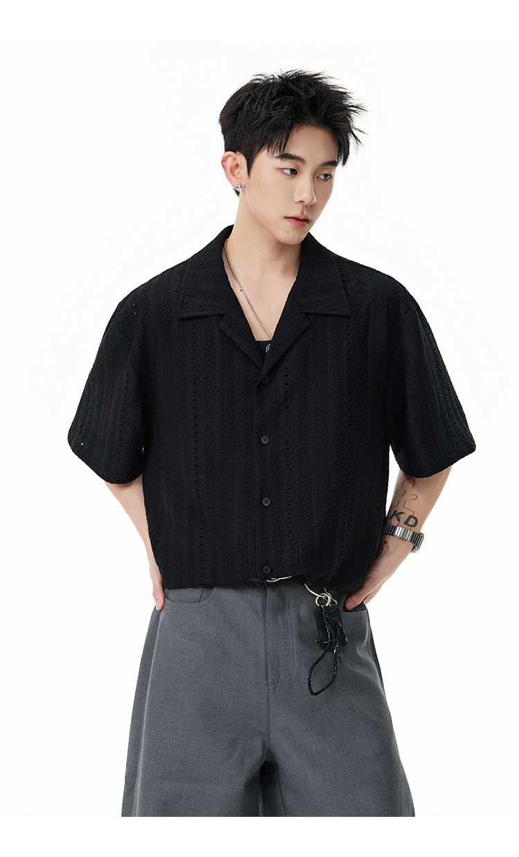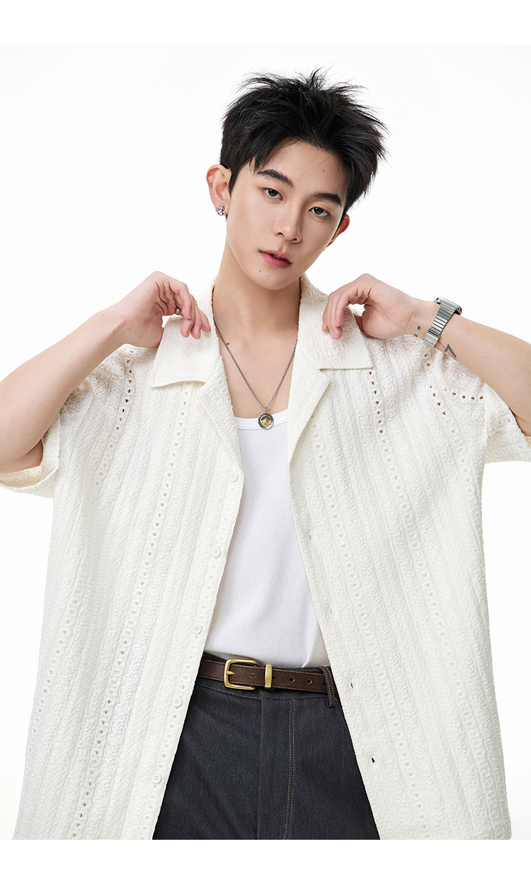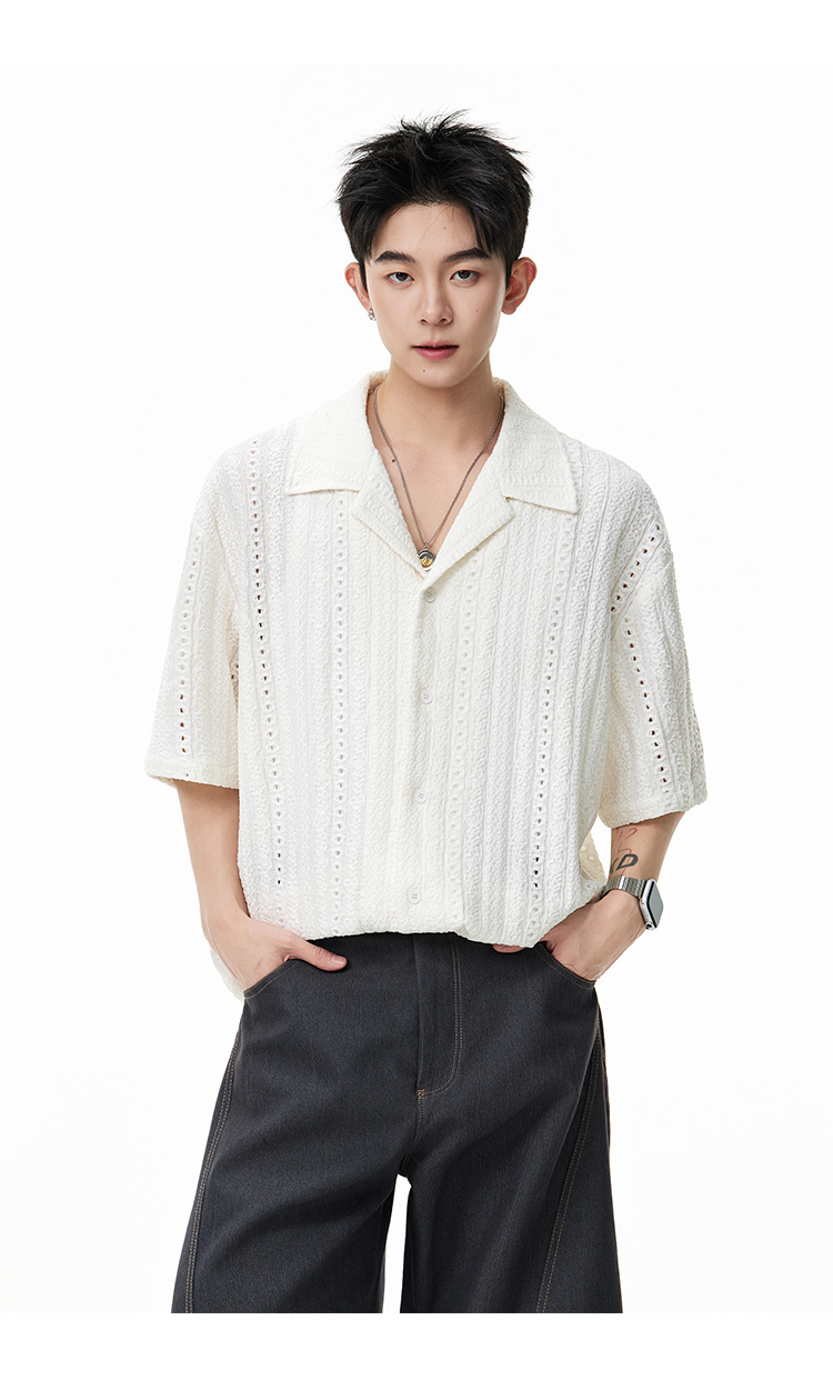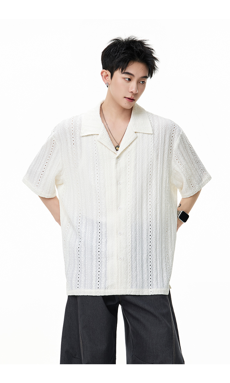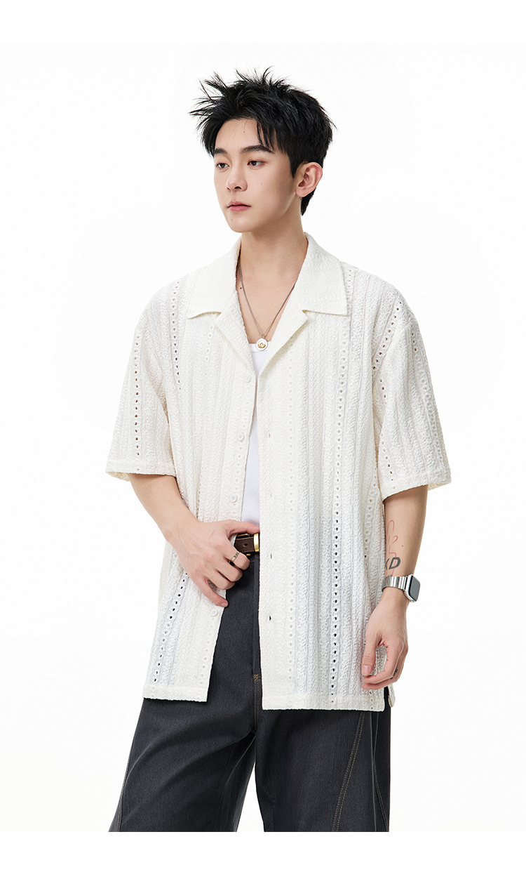 古巴領鏤空·慵懶短襯衫