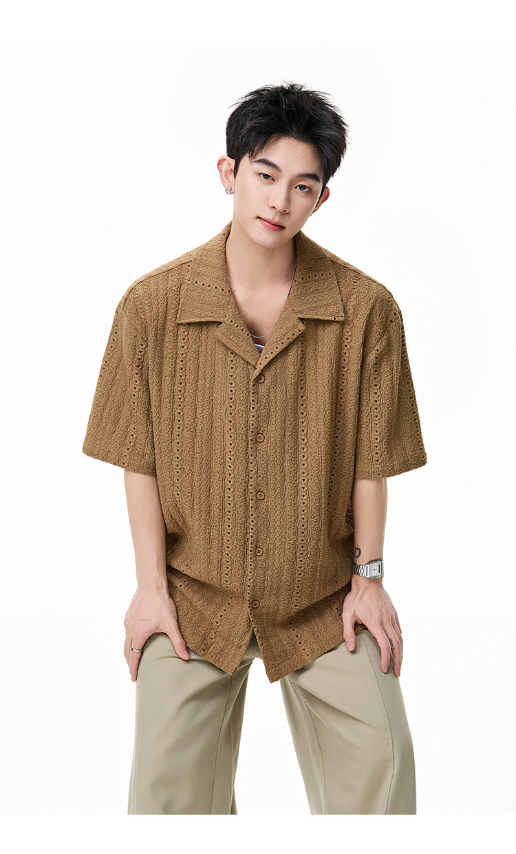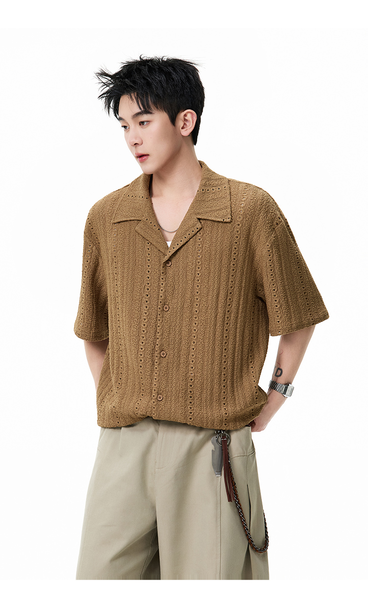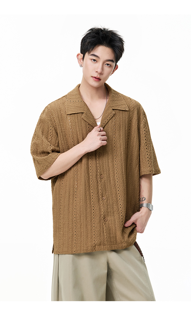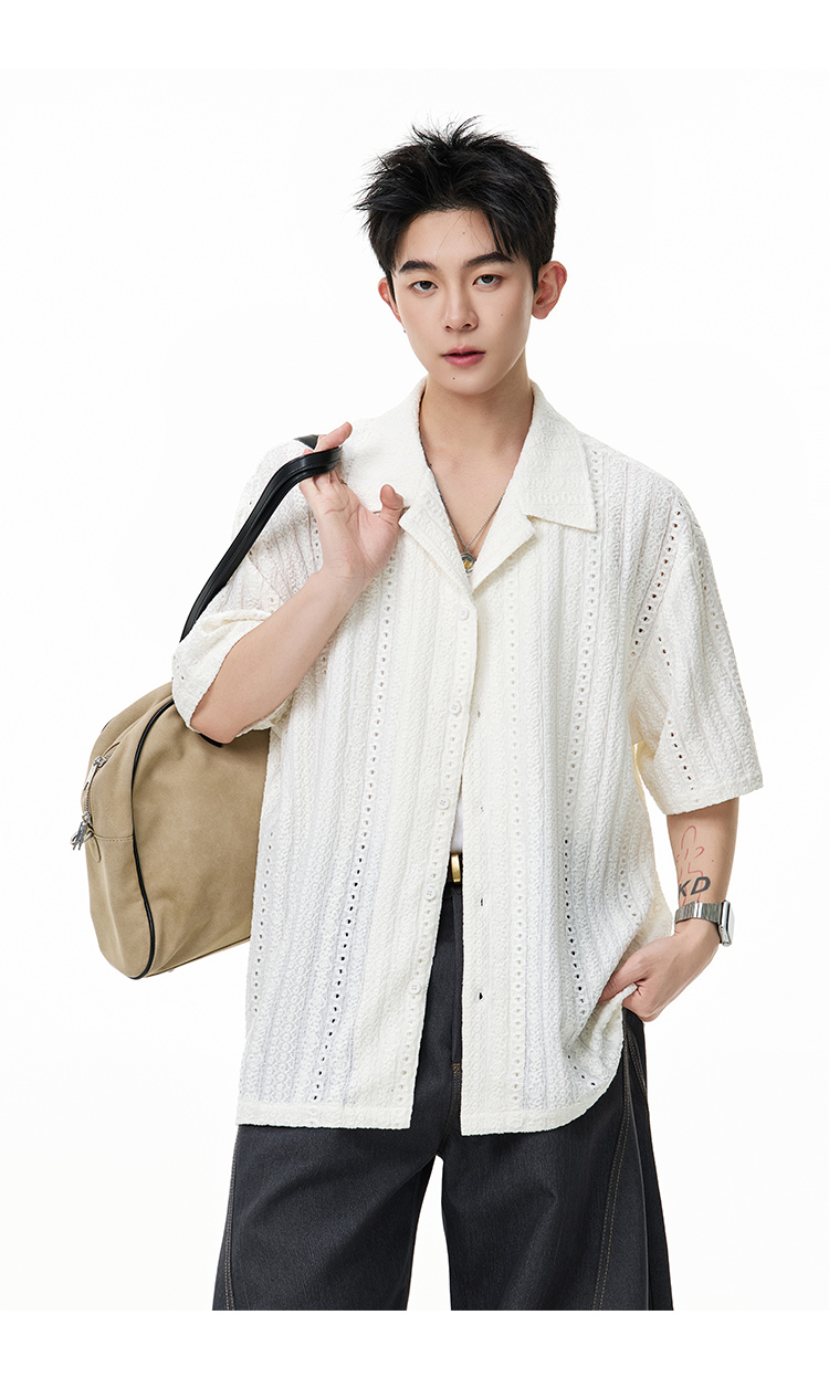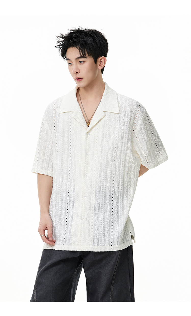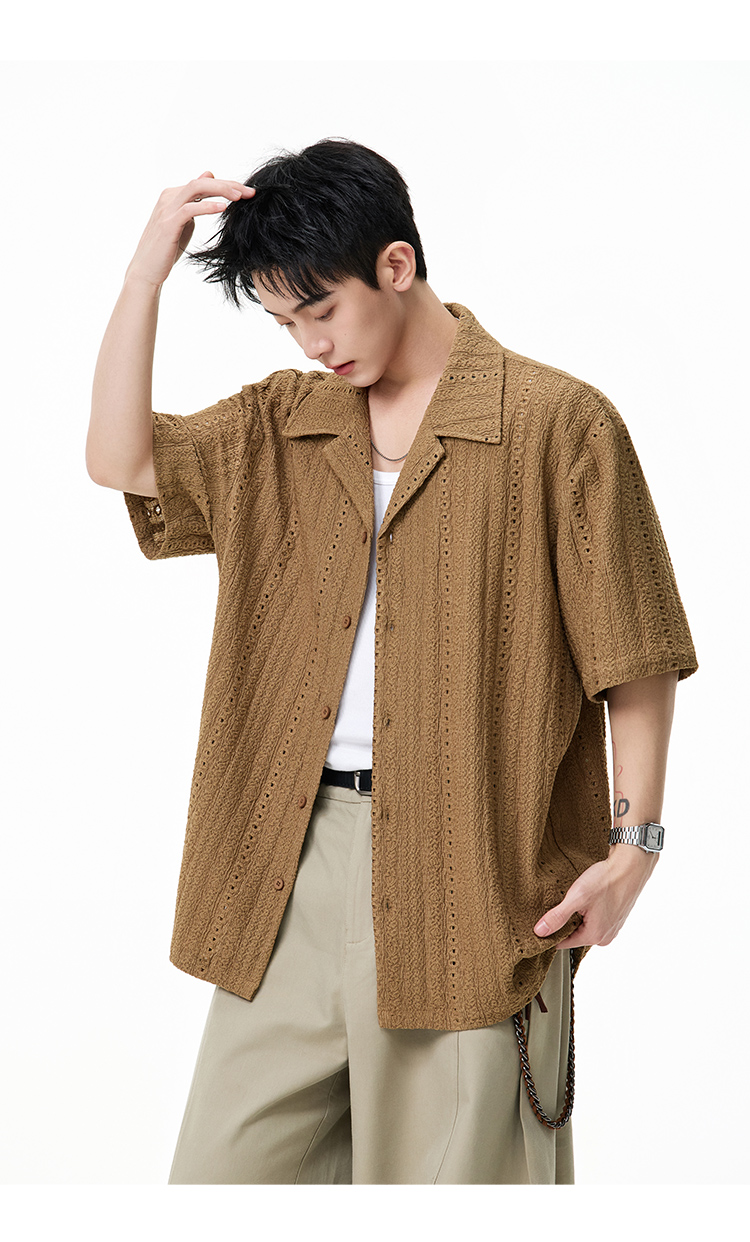 古巴領鏤空·慵懶短襯衫