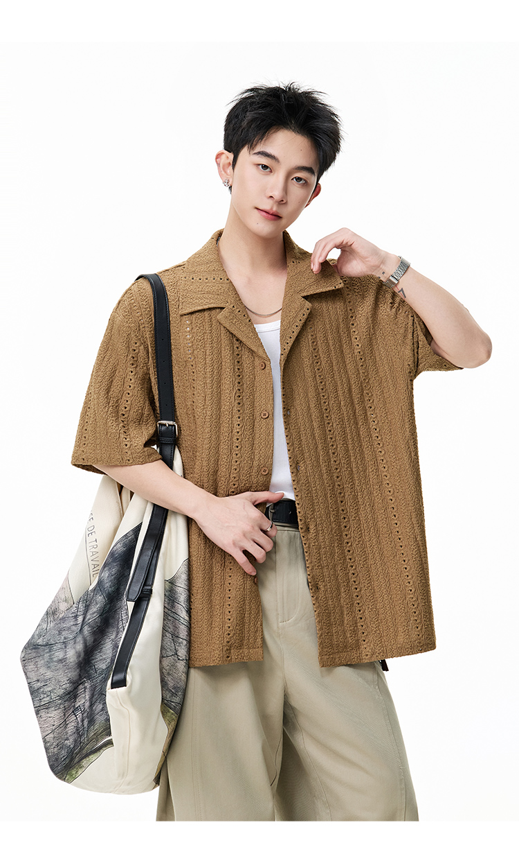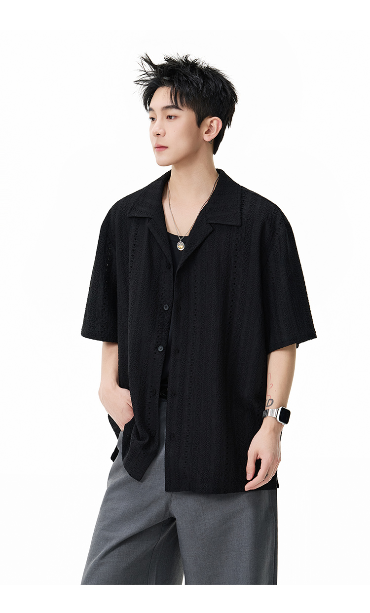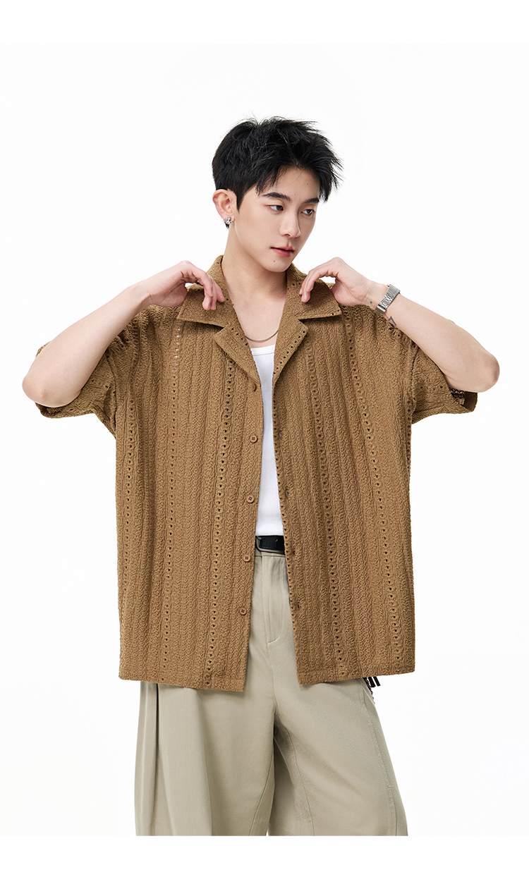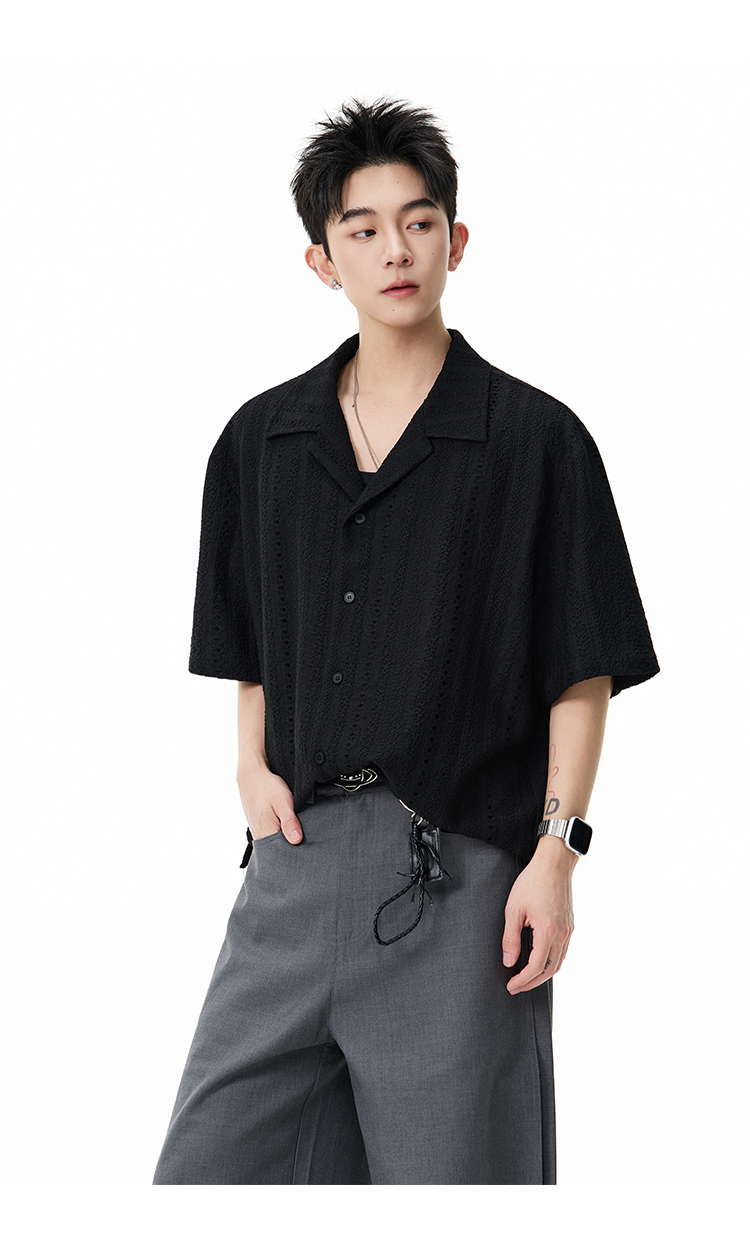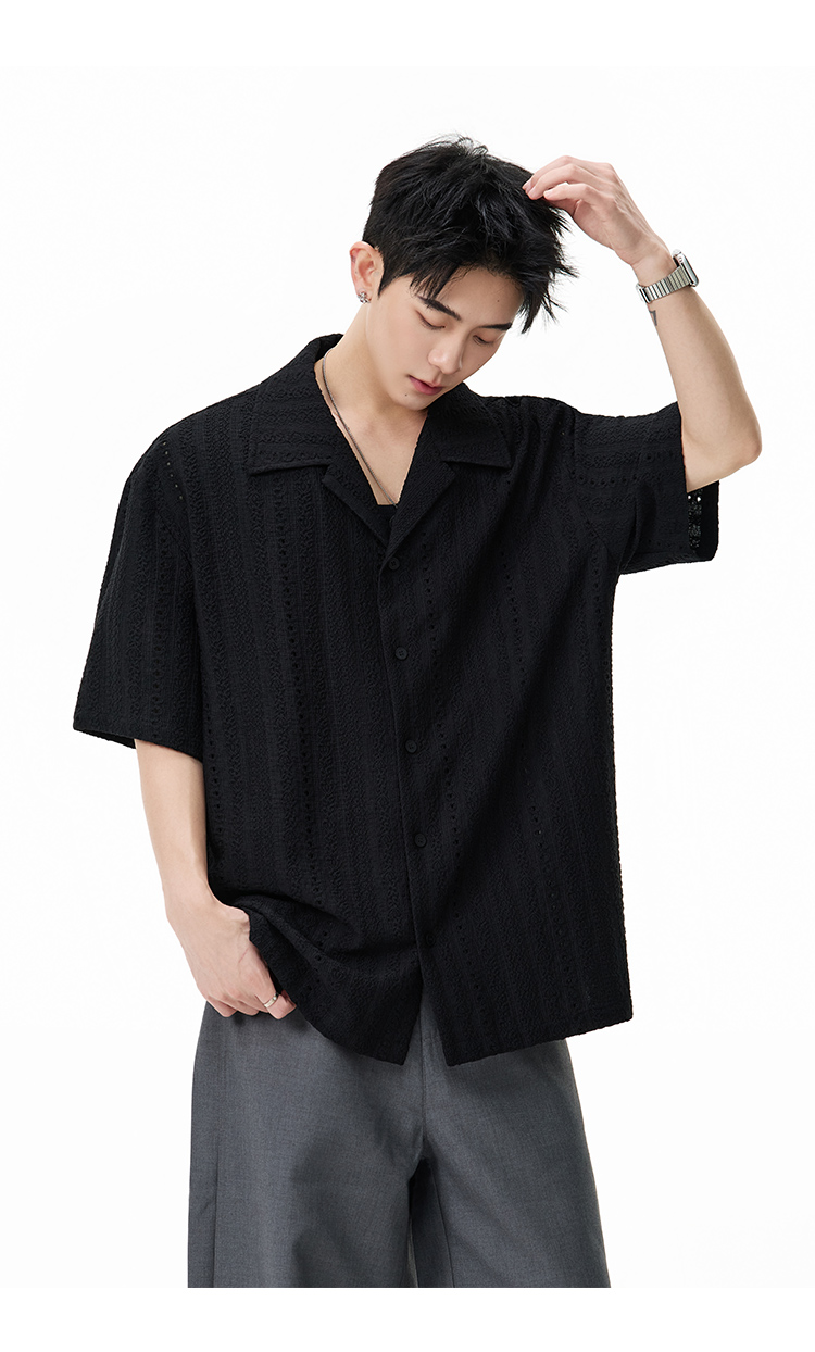 古巴領鏤空·慵懶短襯衫