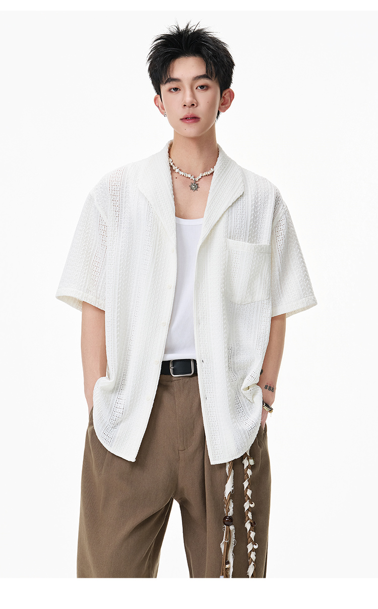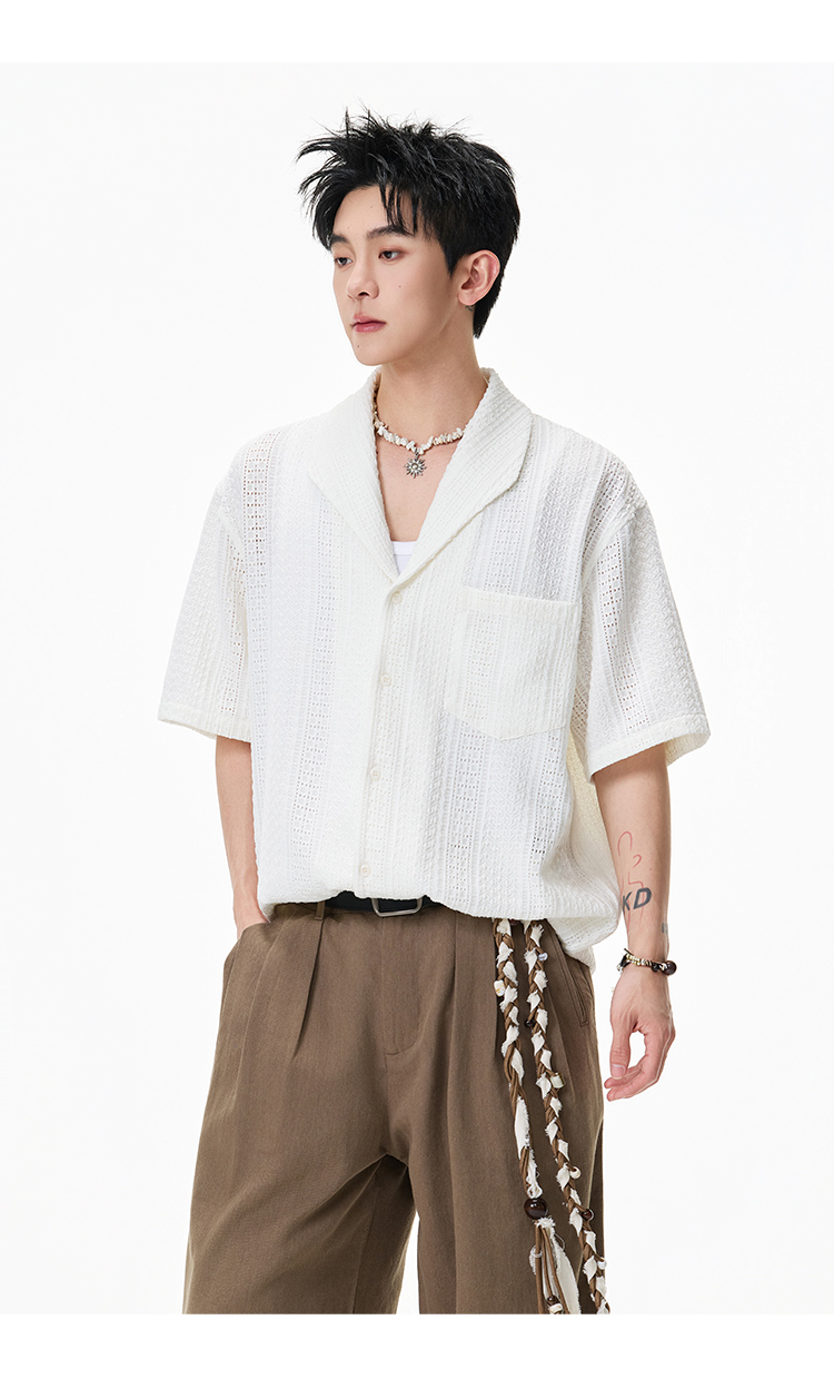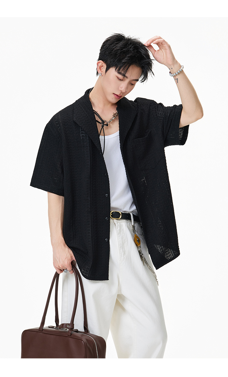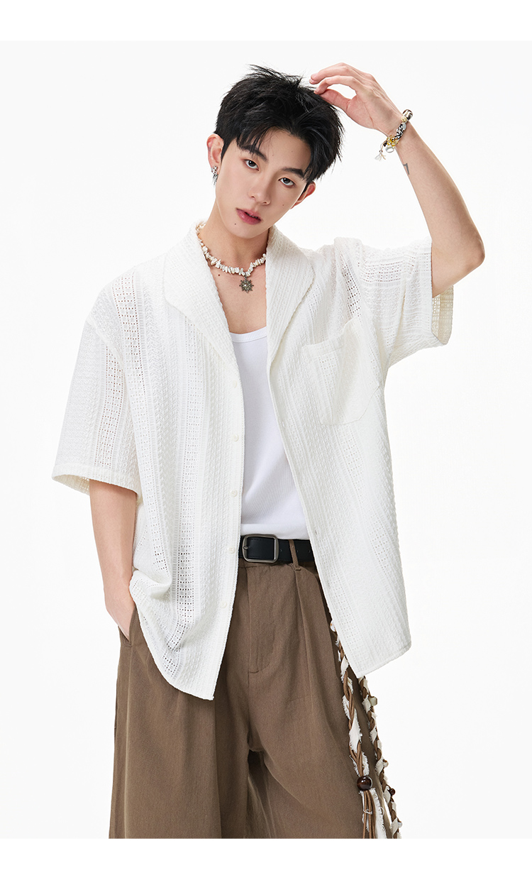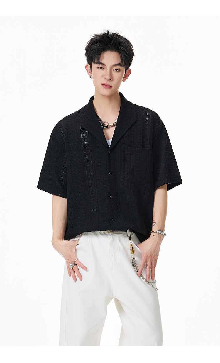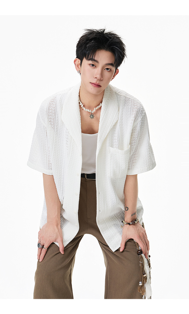 青果領鏤空·慵懶短襯衫