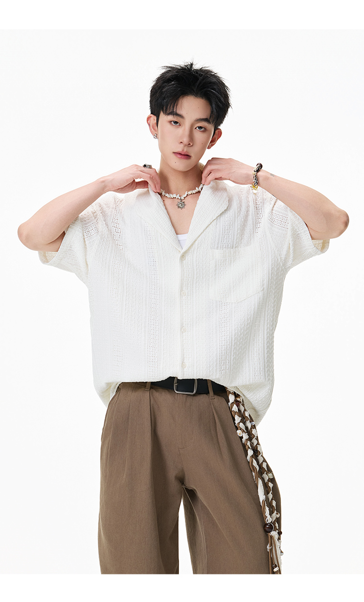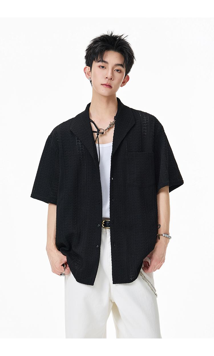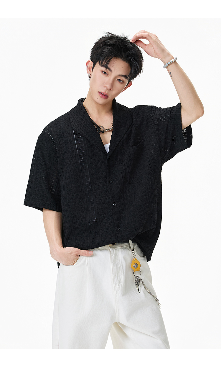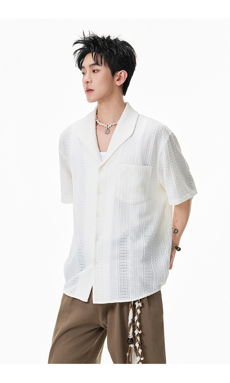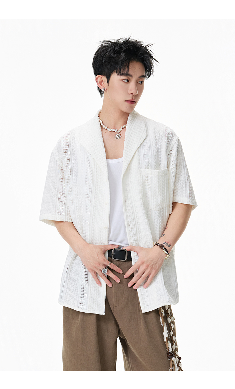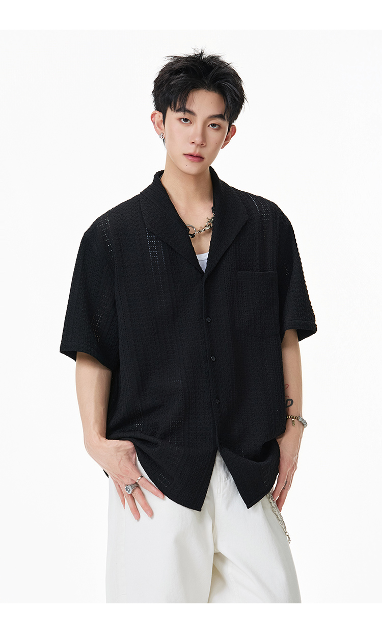 青果領鏤空·慵懶短襯衫
