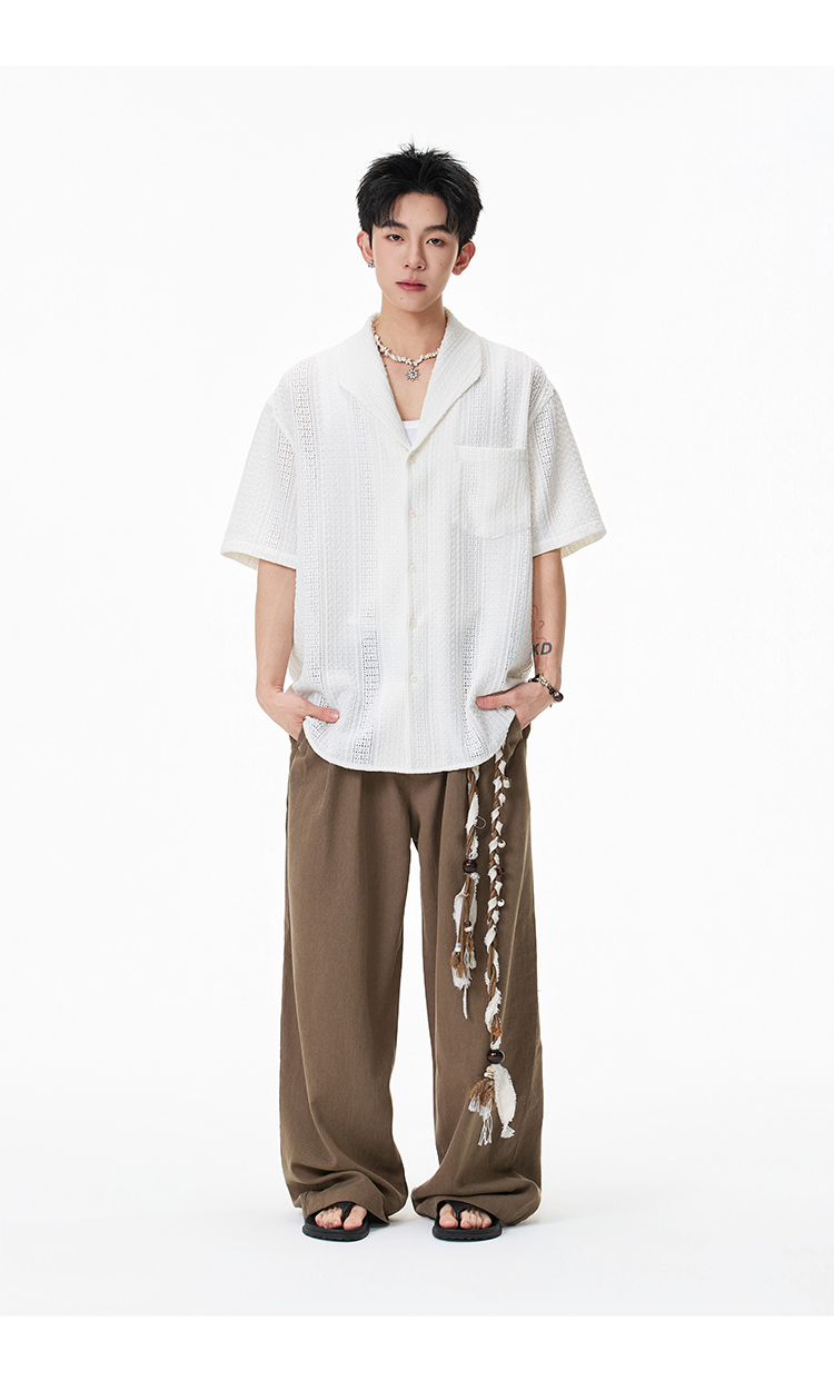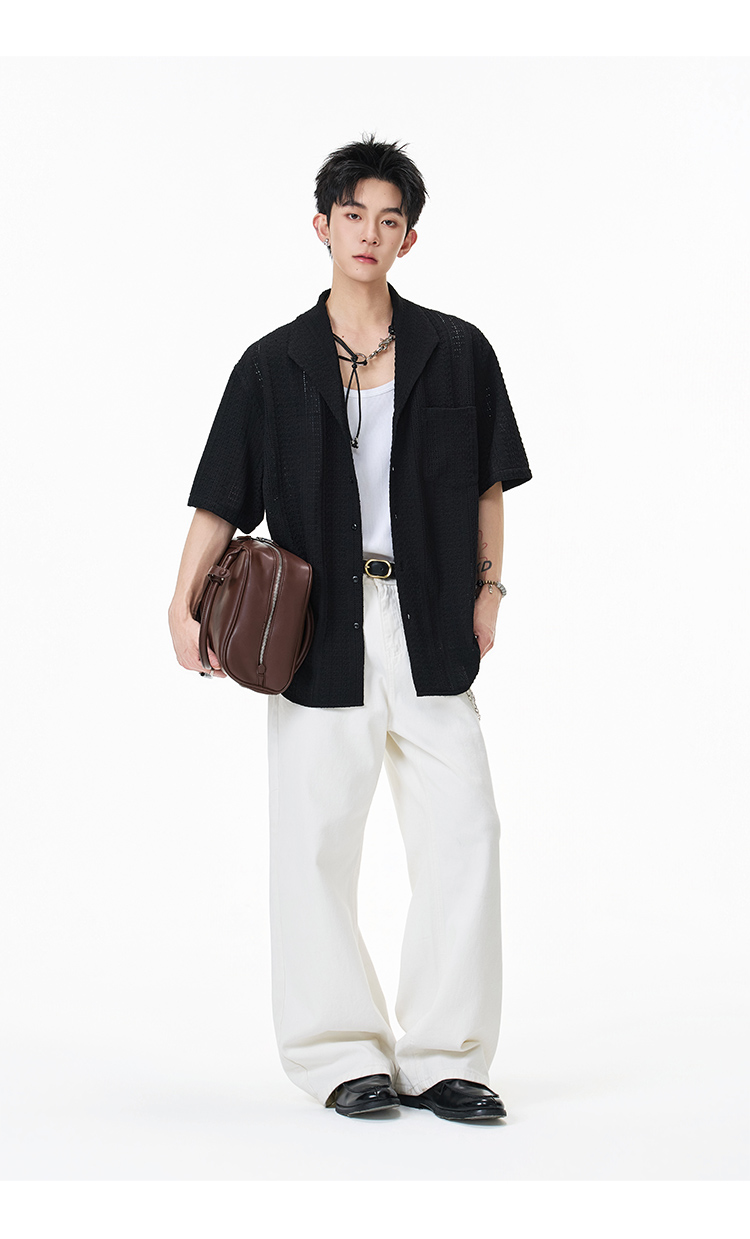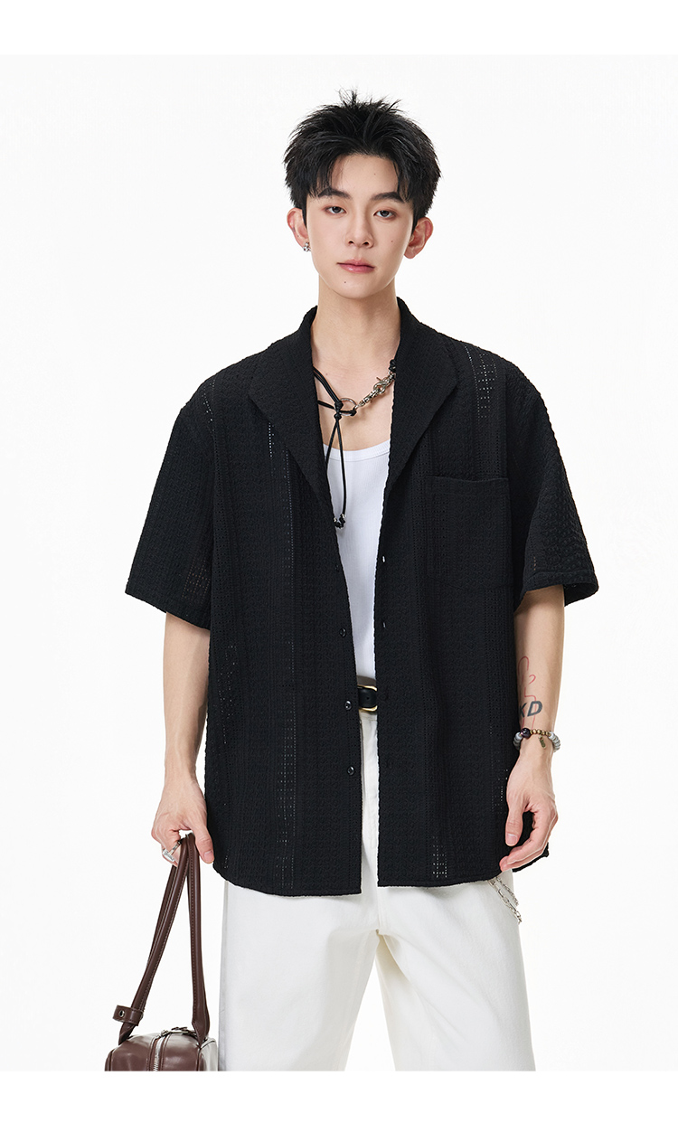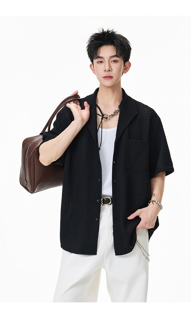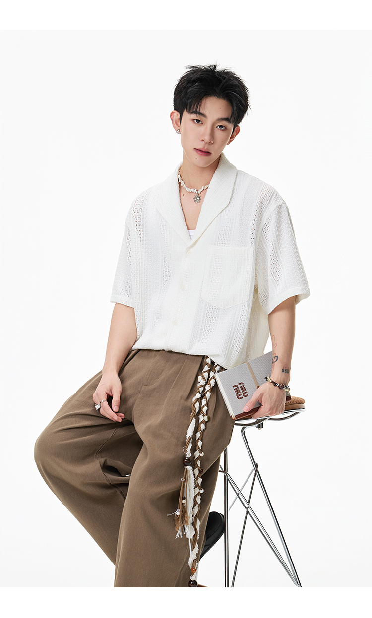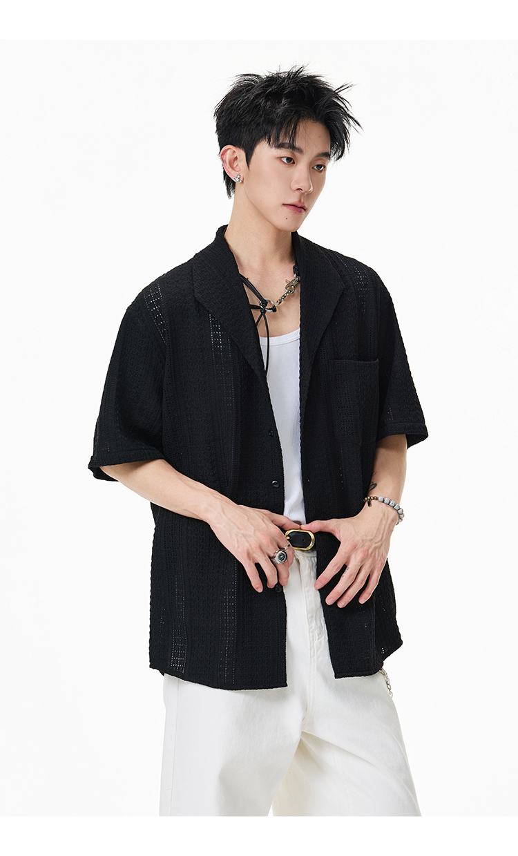 青果領鏤空·慵懶短襯衫