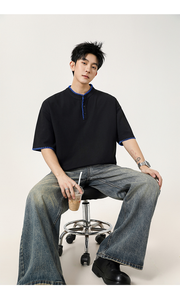 民族風明線·亨利領短Polo衫