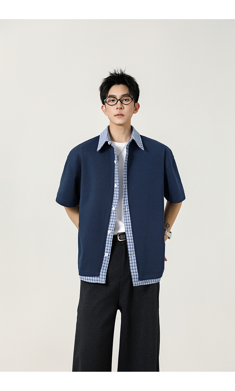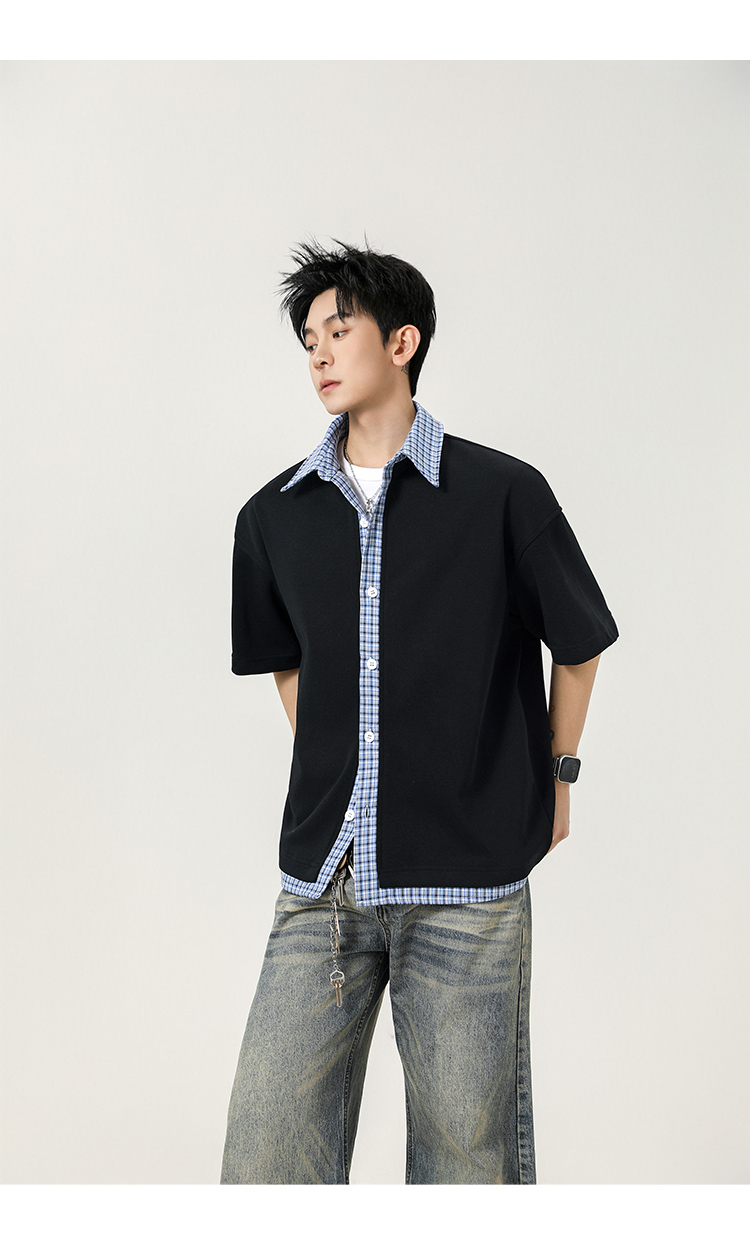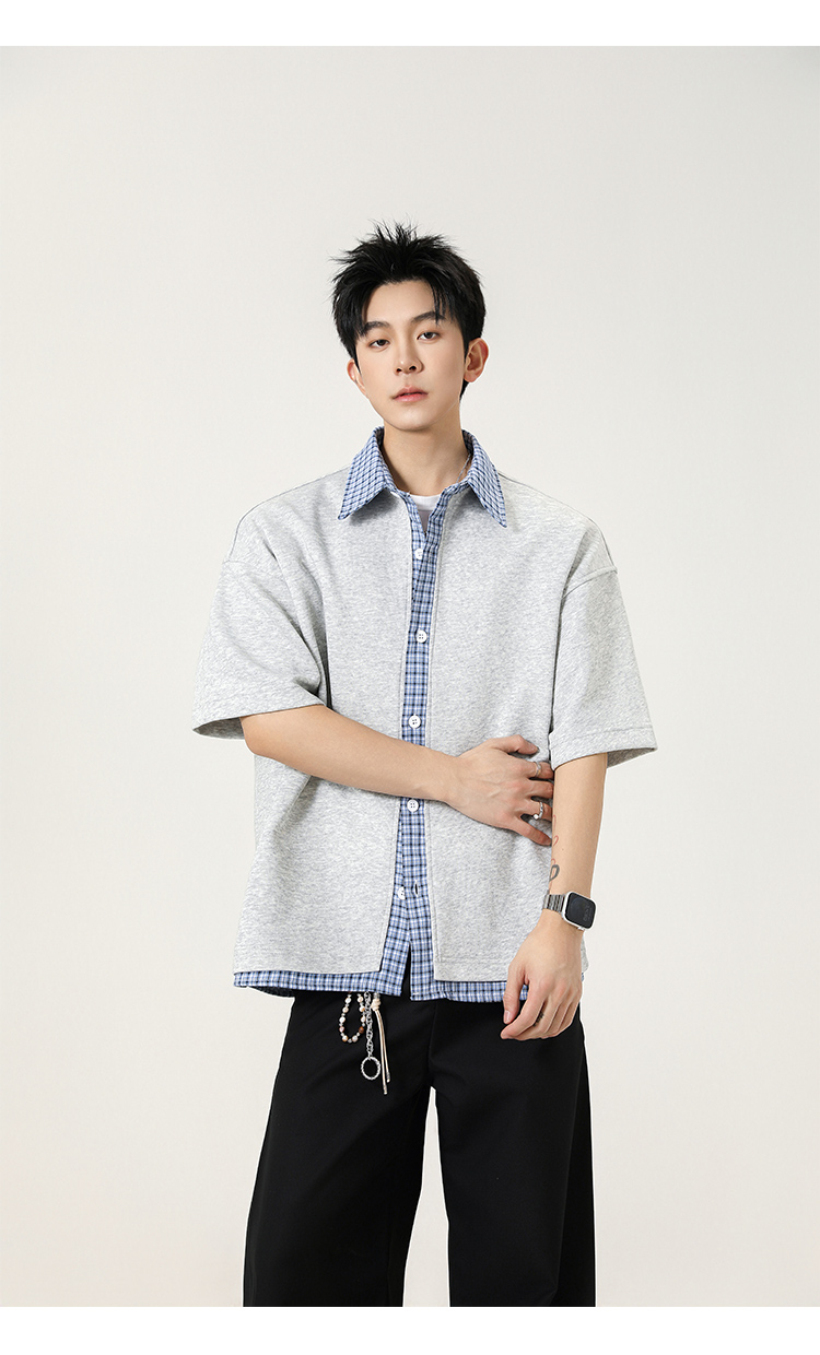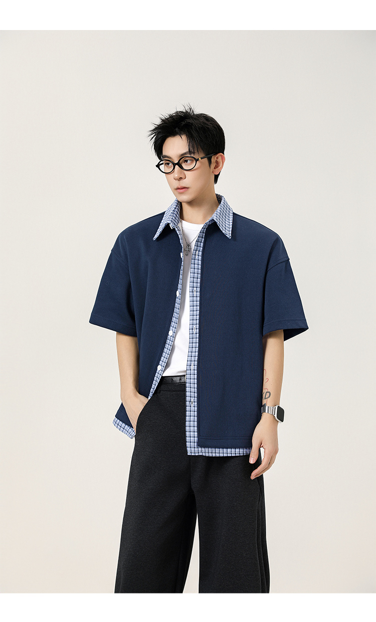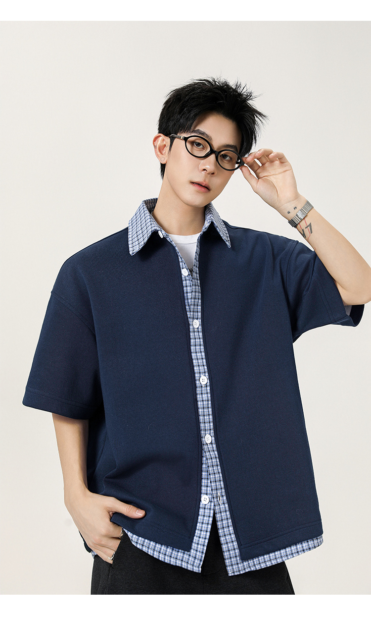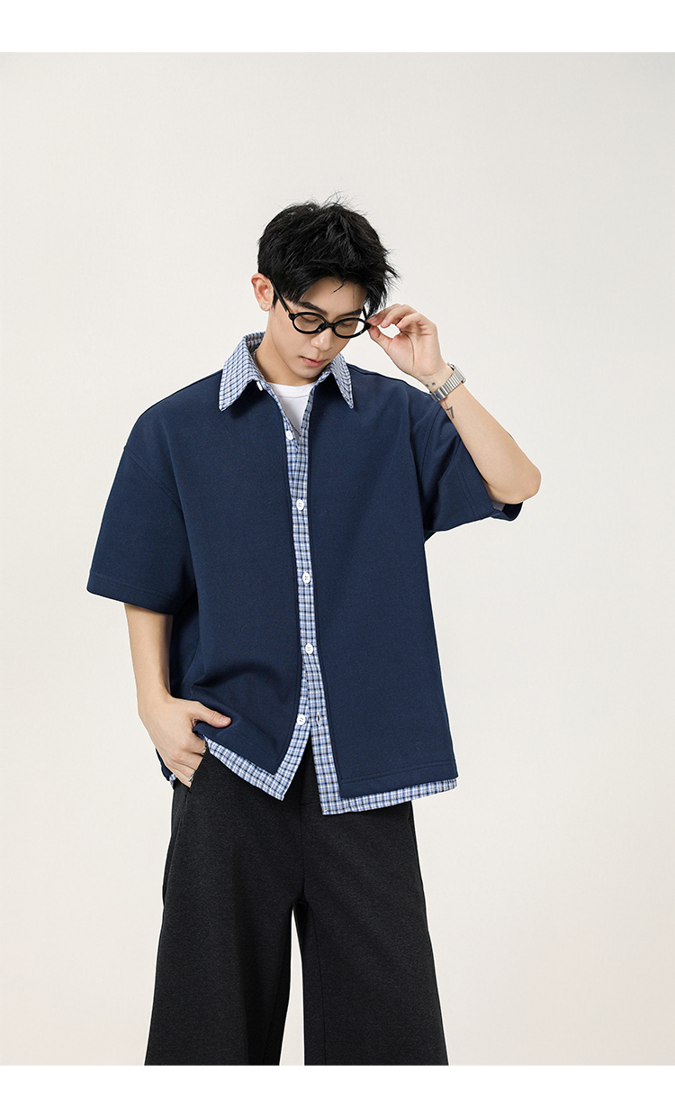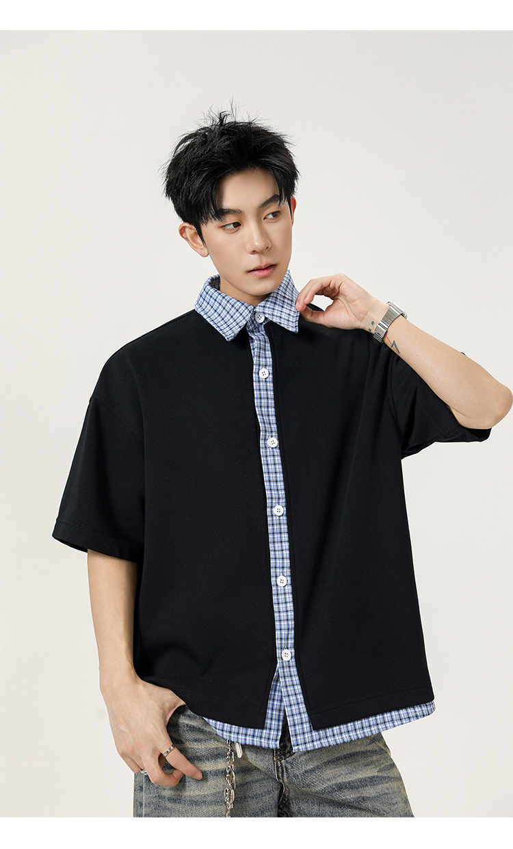日系拼接·圓領短襯衫