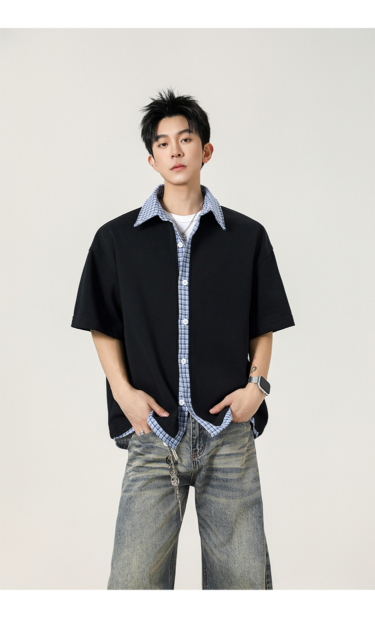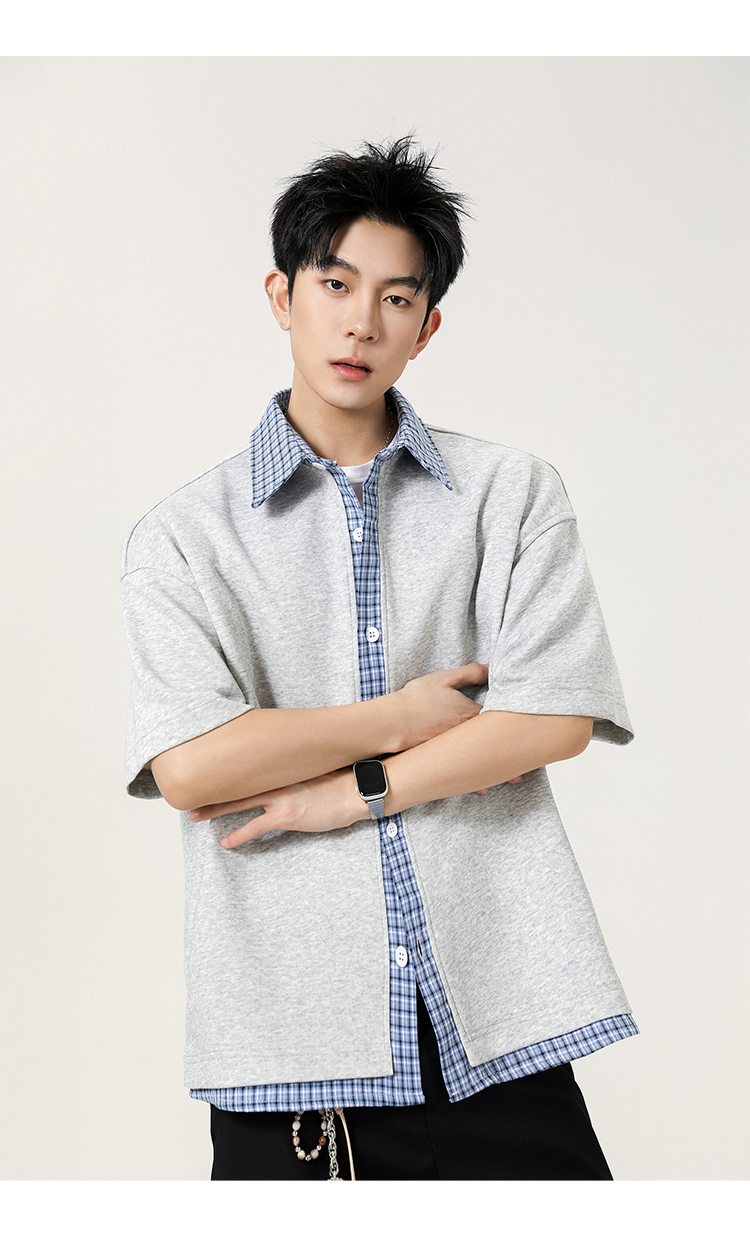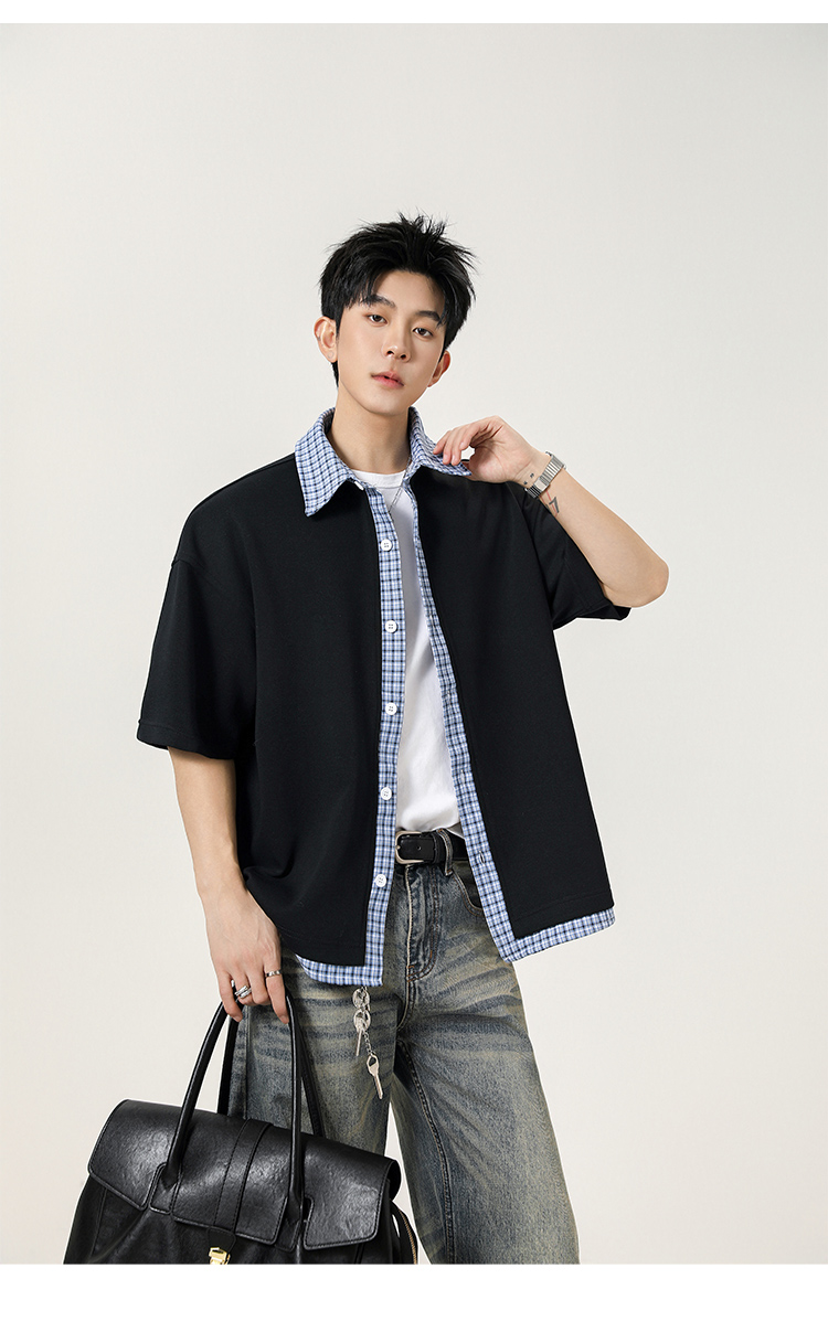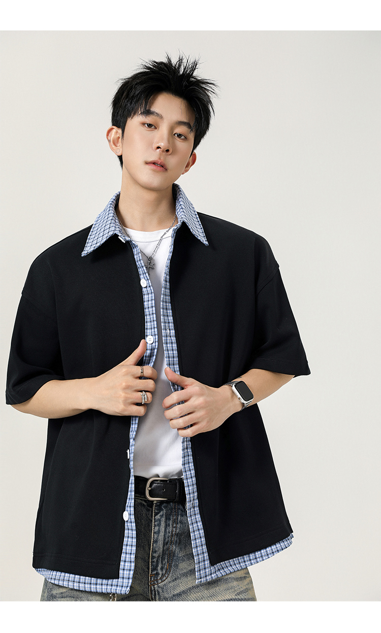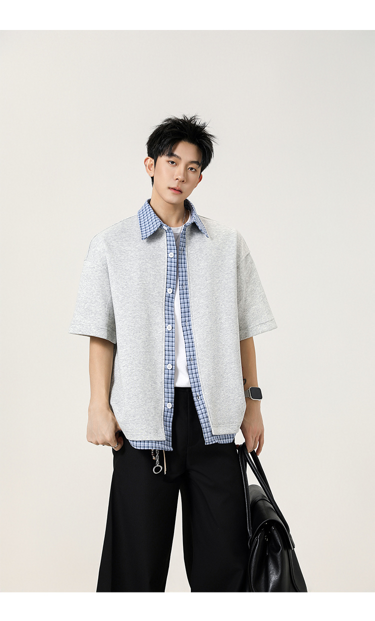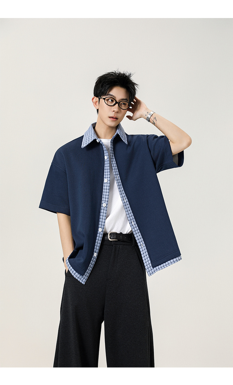日系拼接·圓領短襯衫