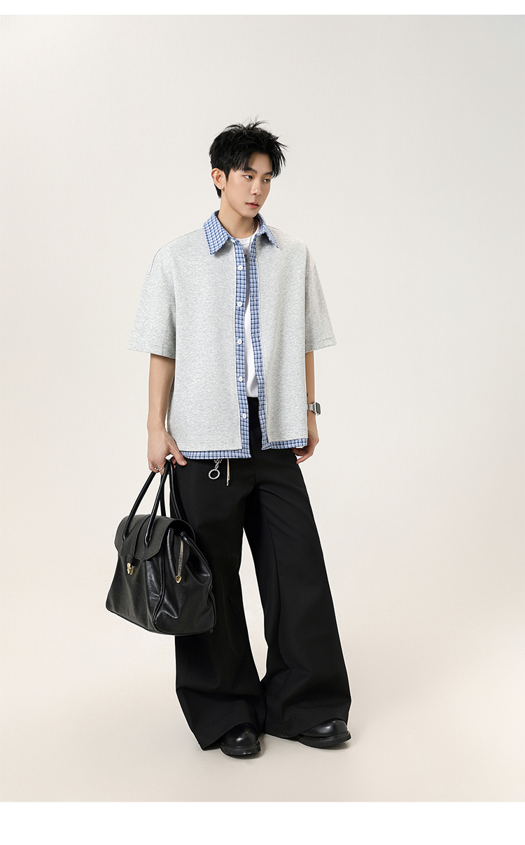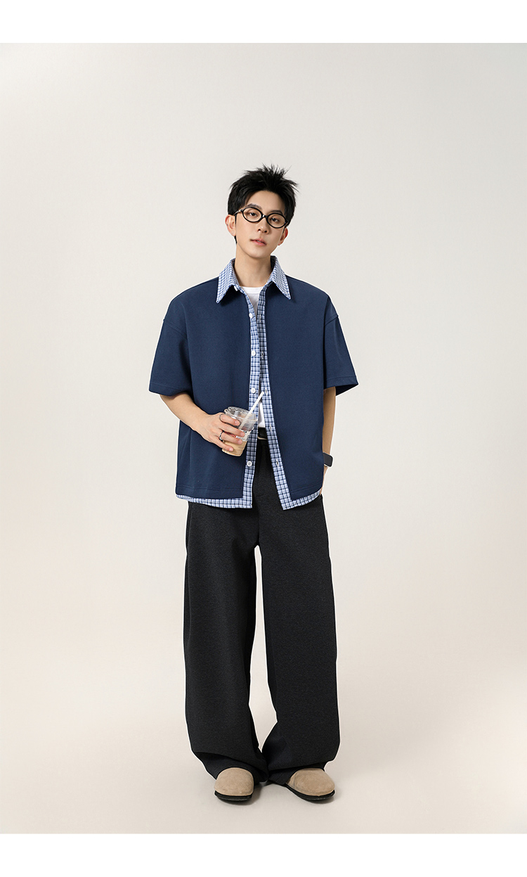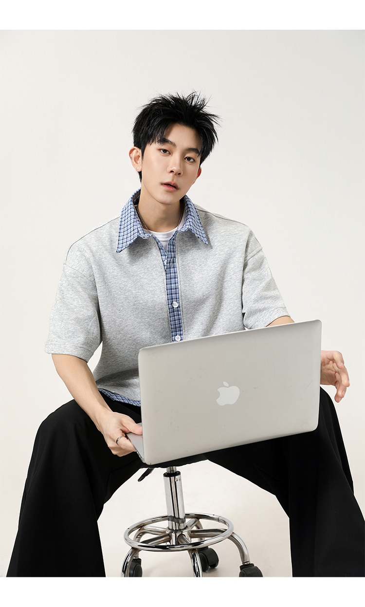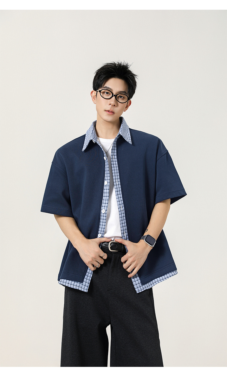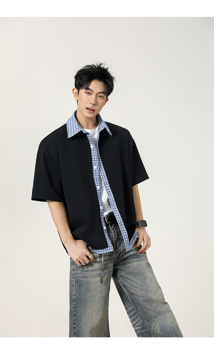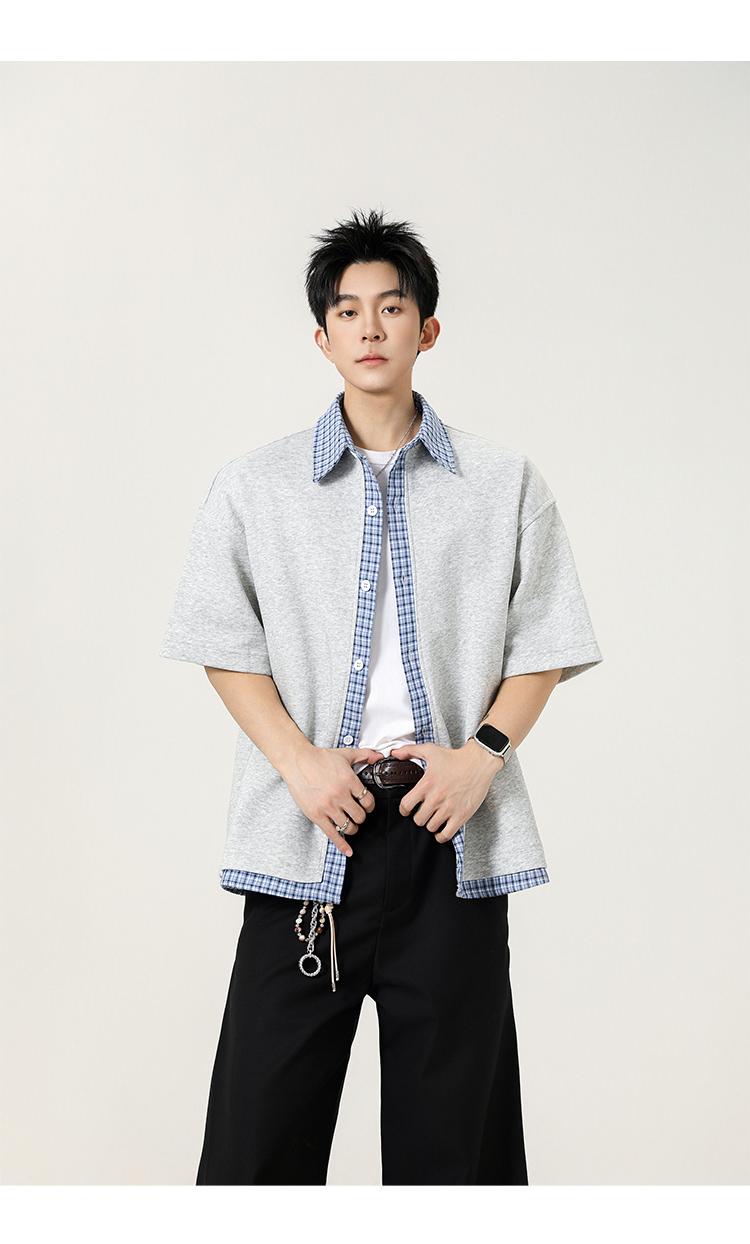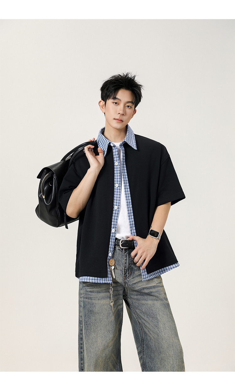 日系拼接·圓領短襯衫