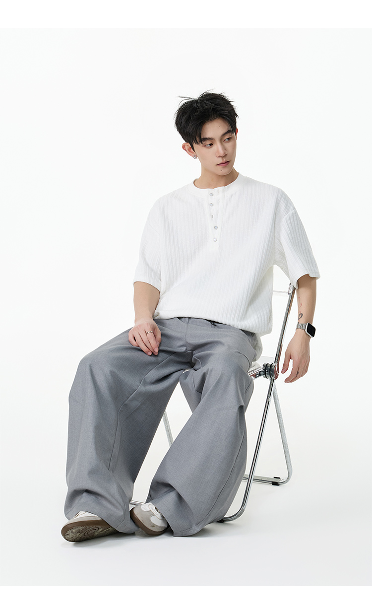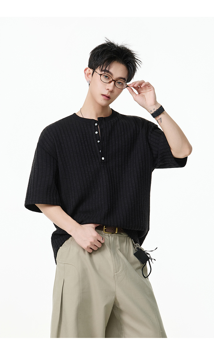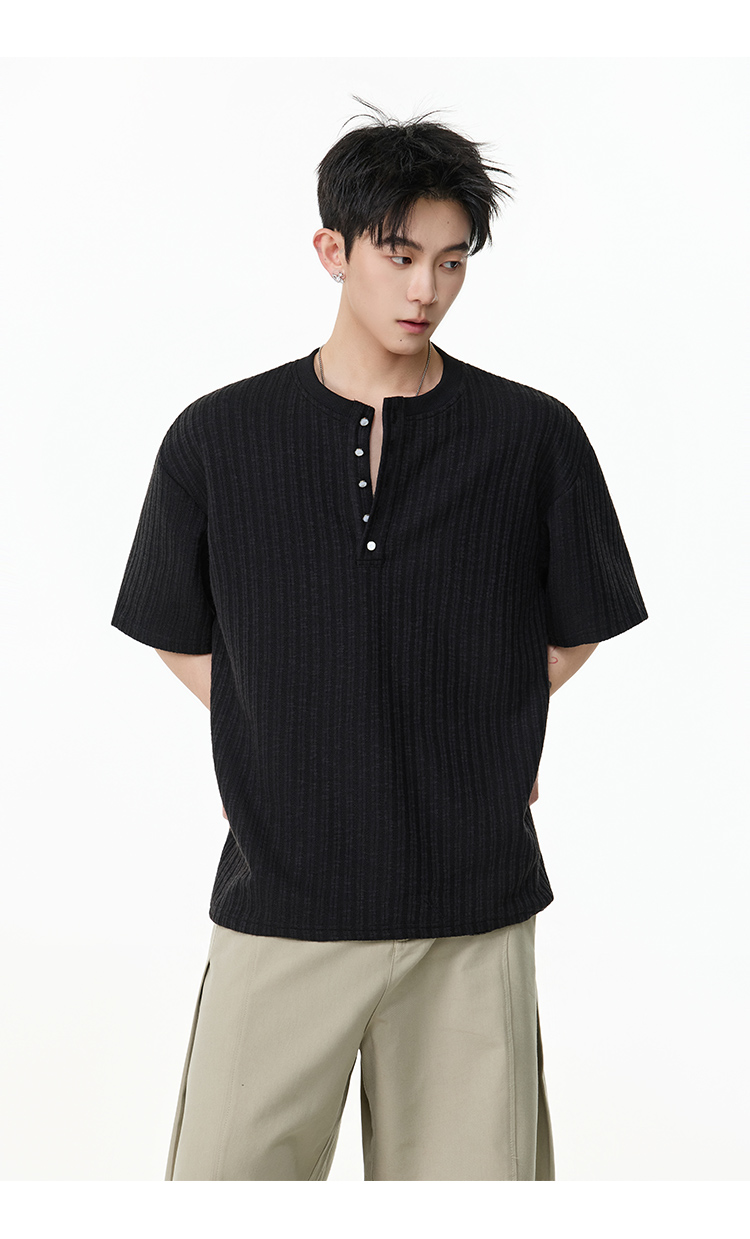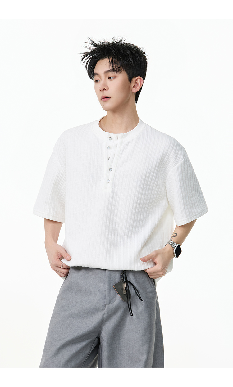 強調布料的質感層次,連排扣襟點綴細節,展現俐落氛圍,多層次領口造型,打造低調時尚魅力。