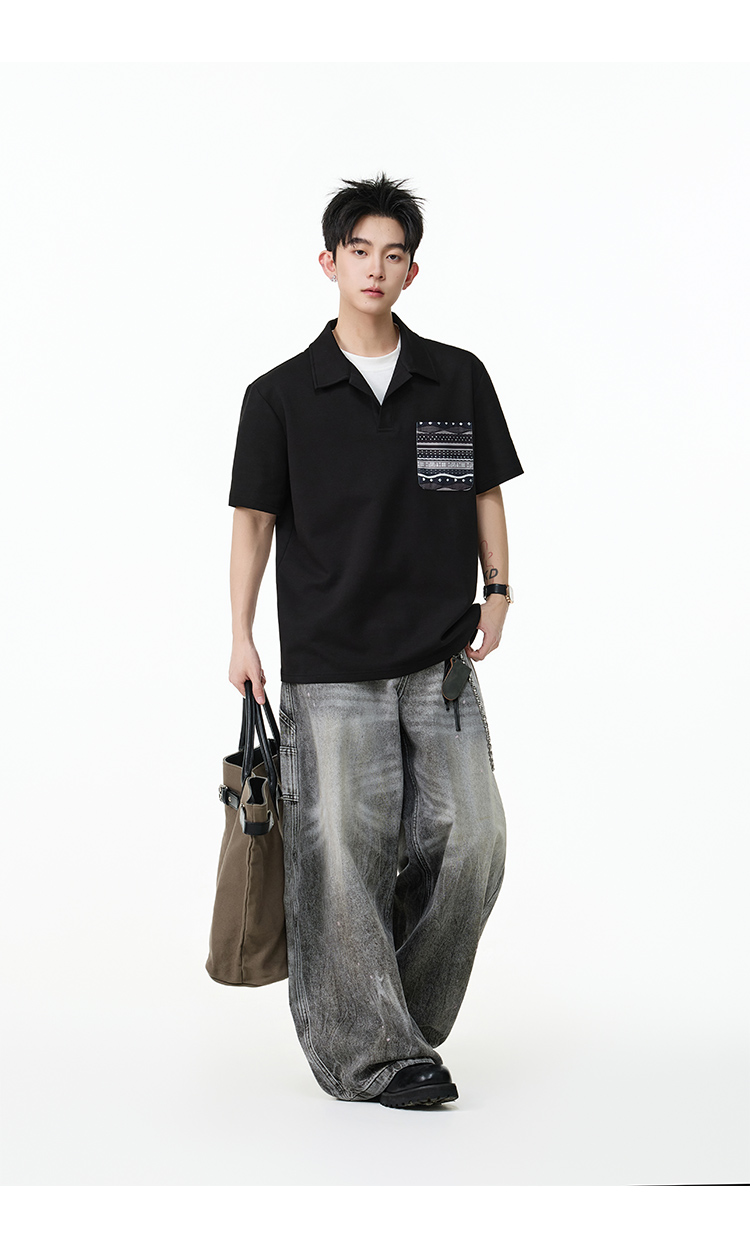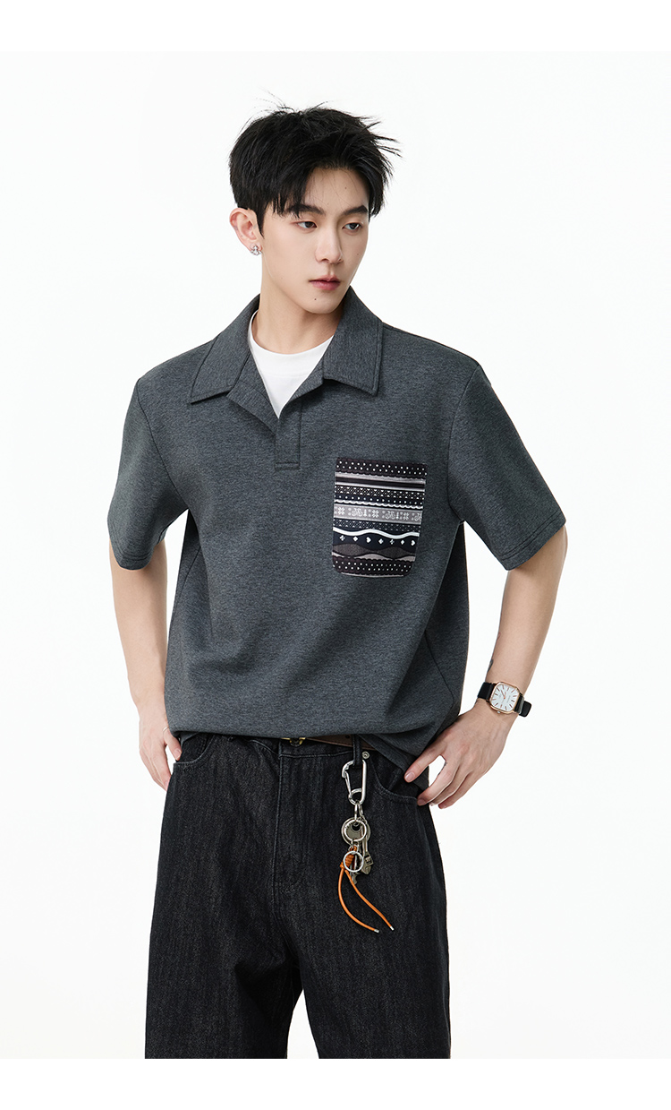 圖騰口袋·兩件式短Polo衫