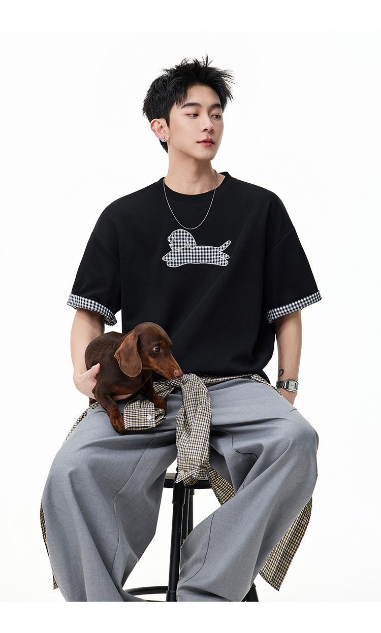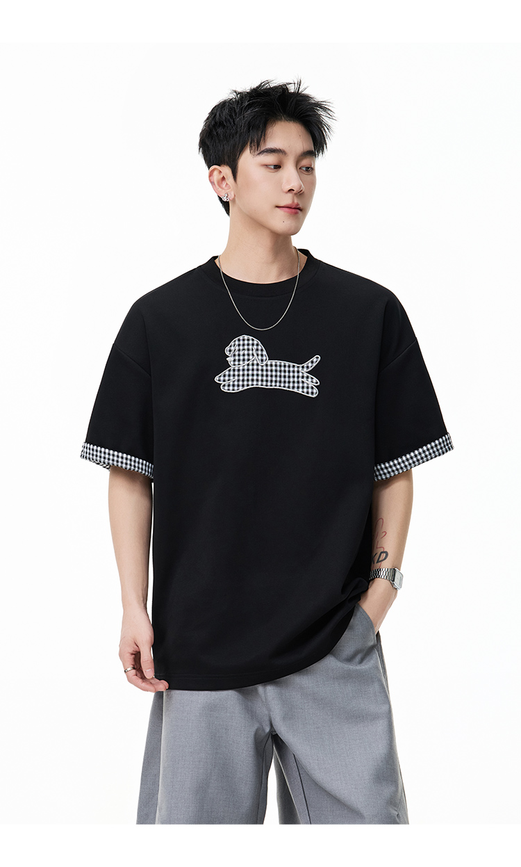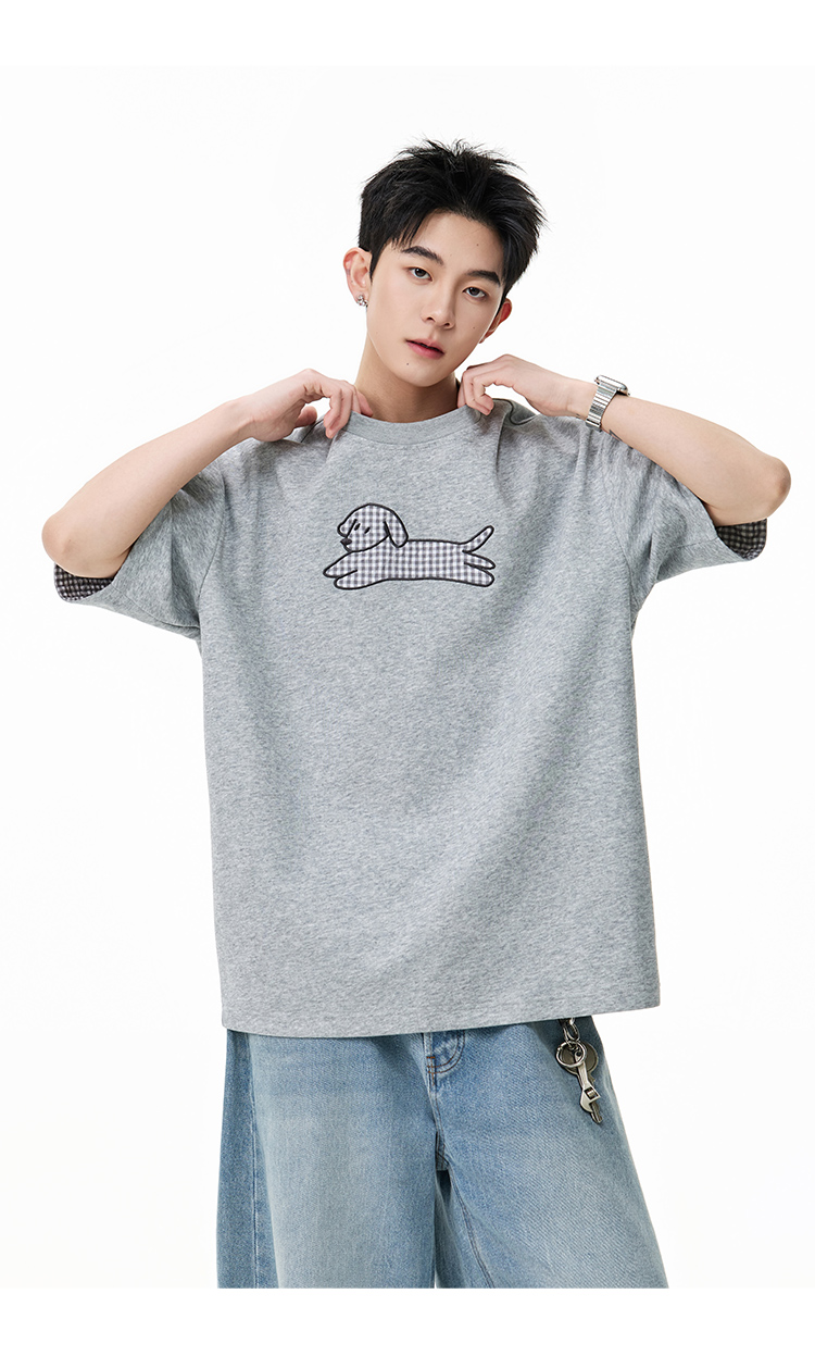 卡通拼接·繡圖短Tee