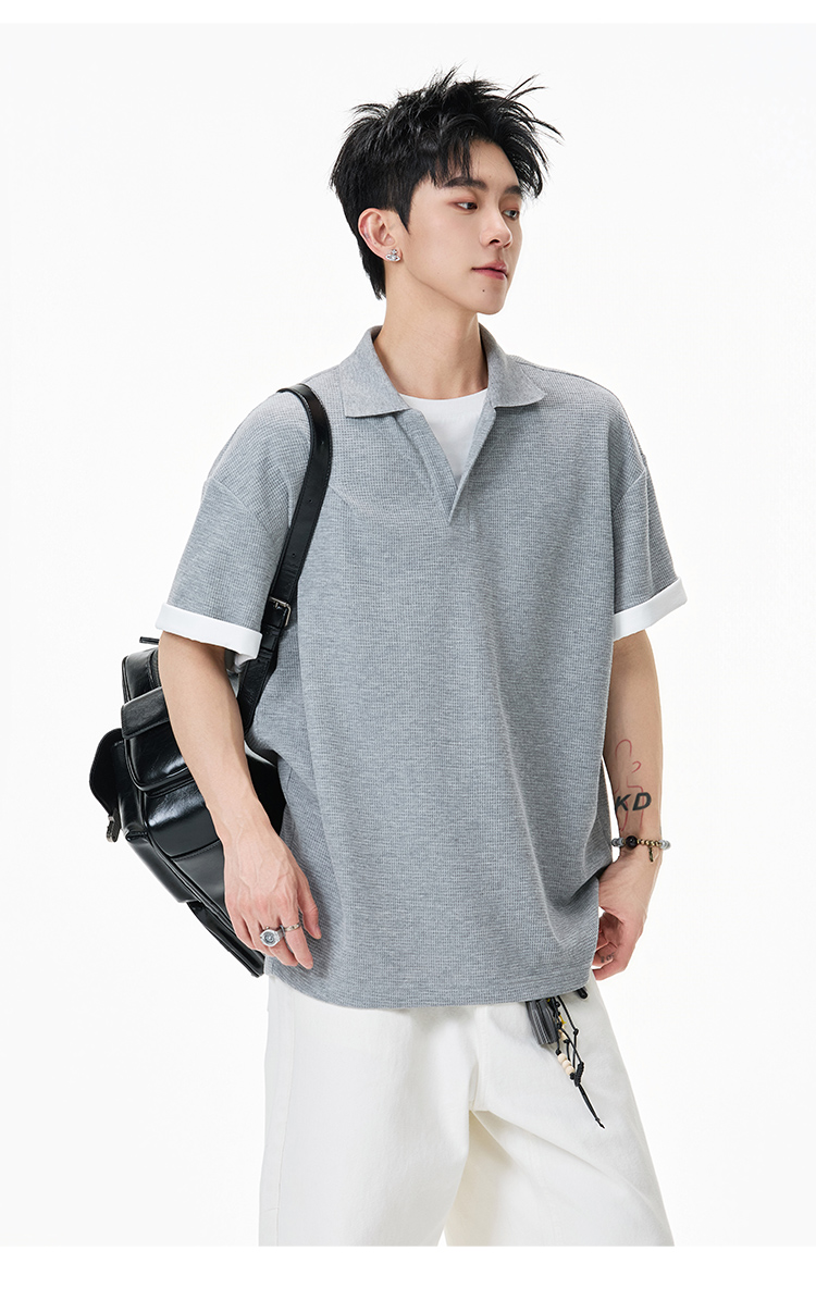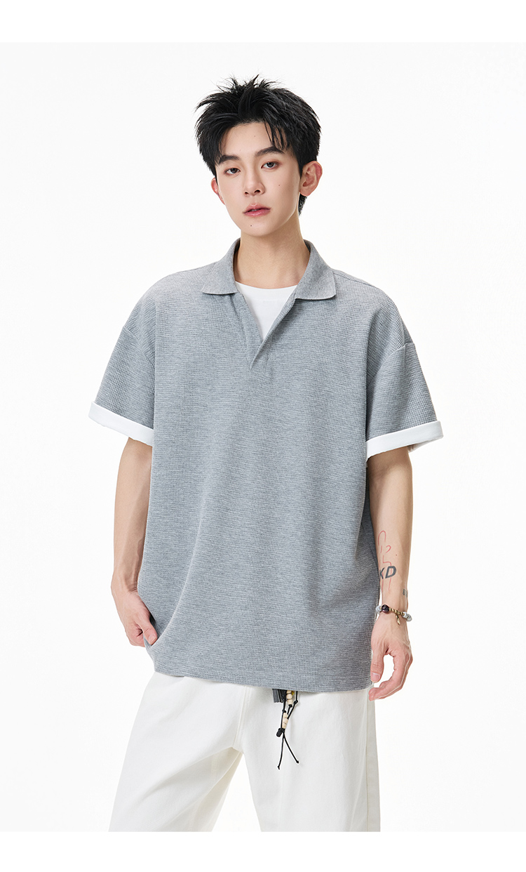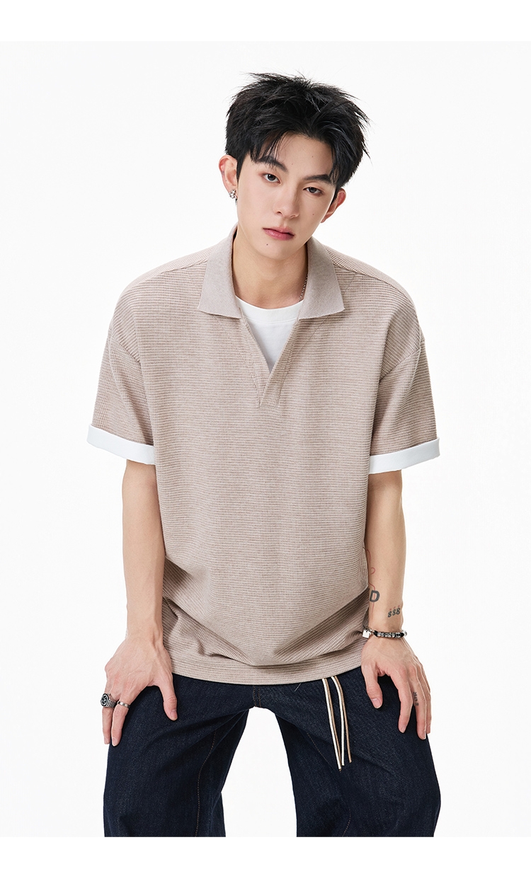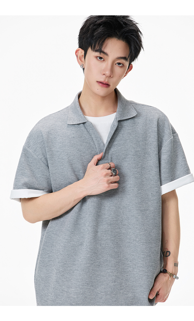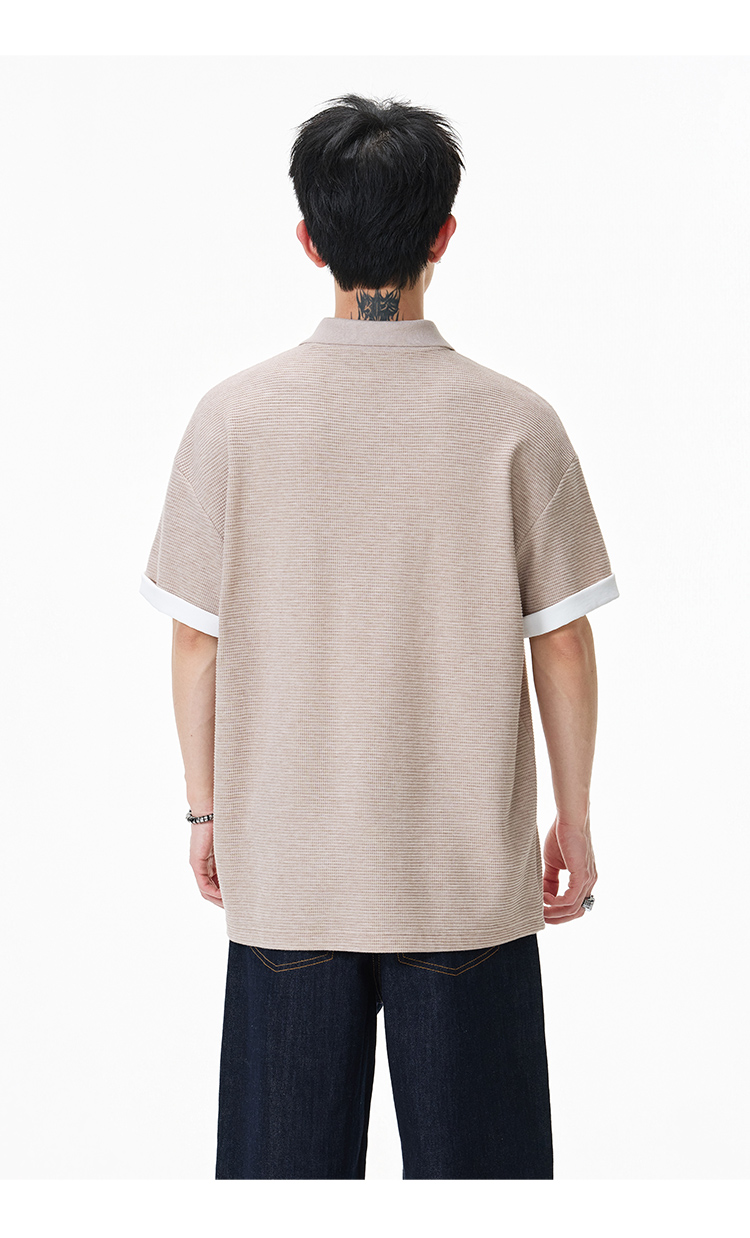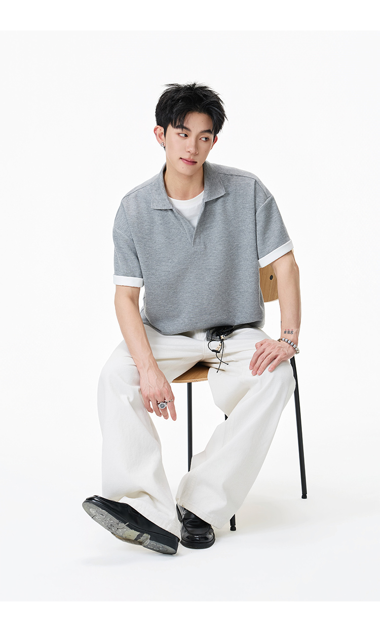 簡約華夫格·圓領短Polo衫