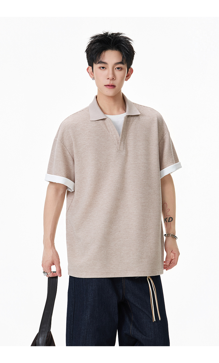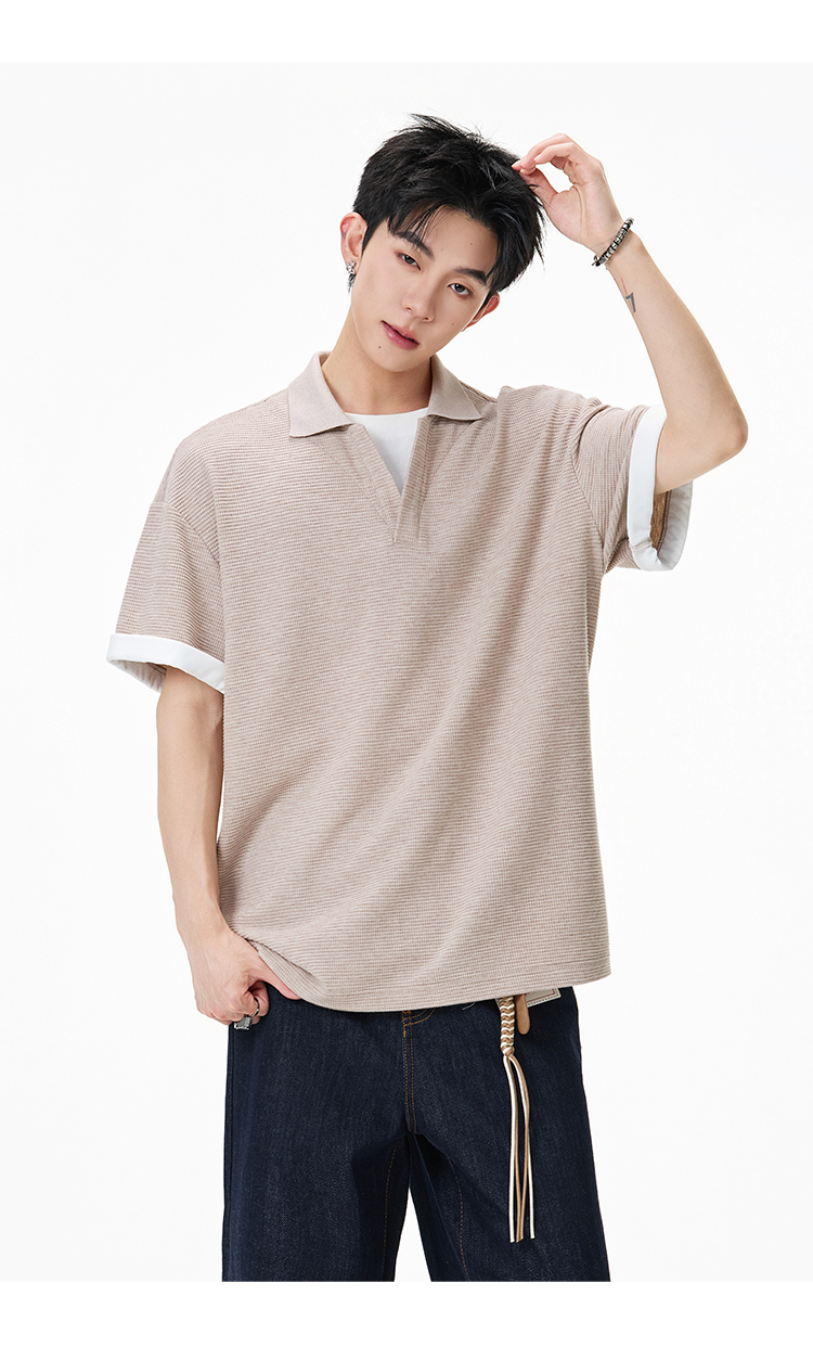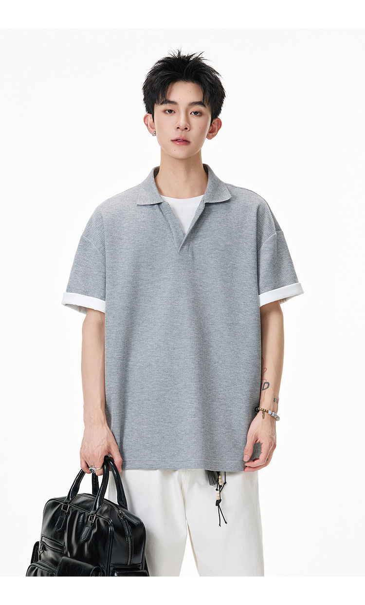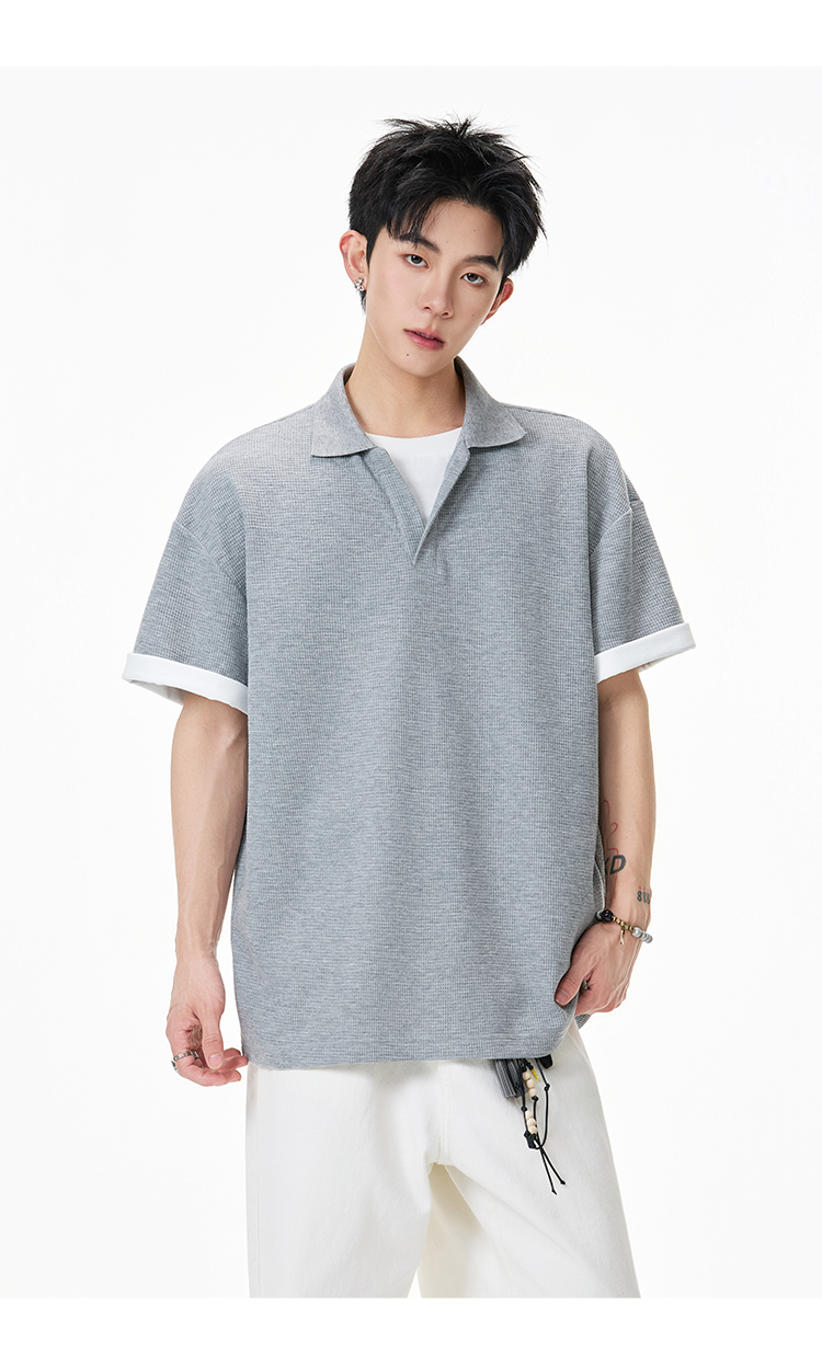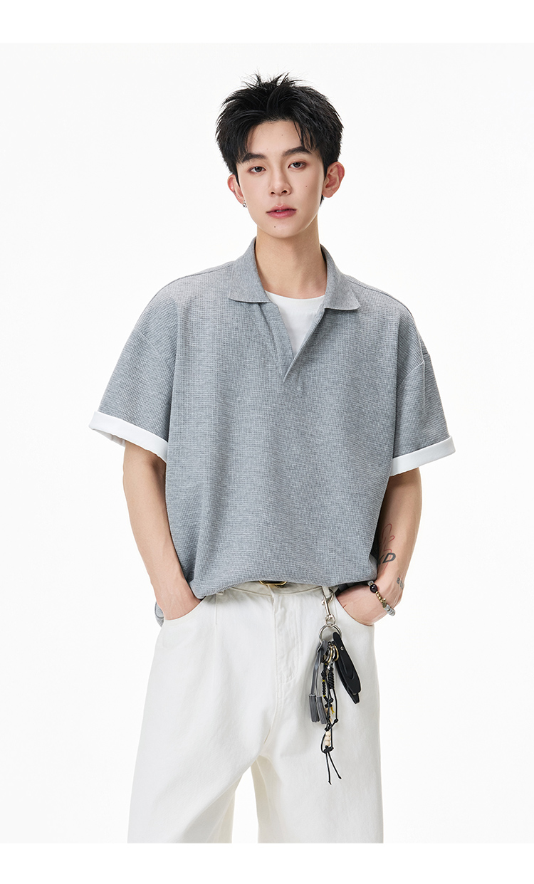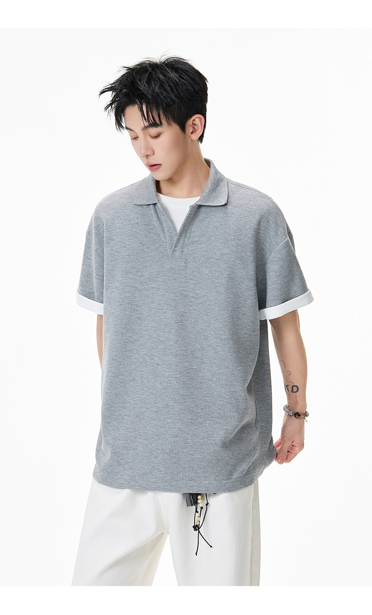 簡約華夫格·圓領短Polo衫