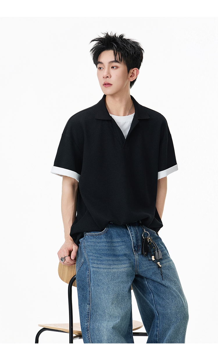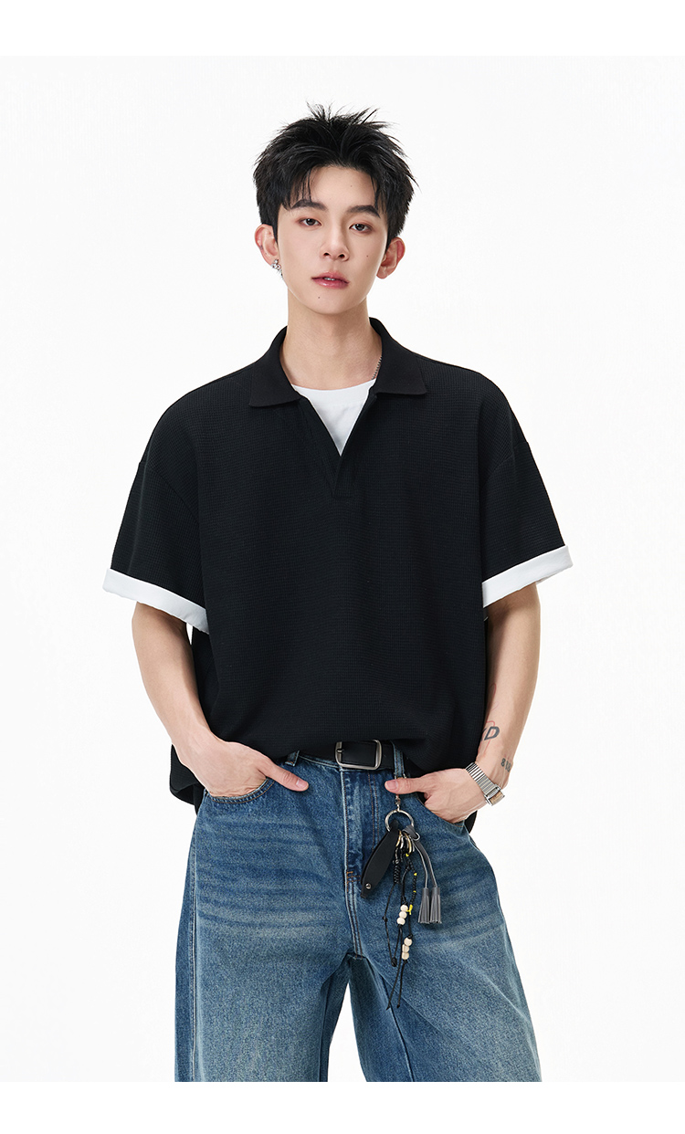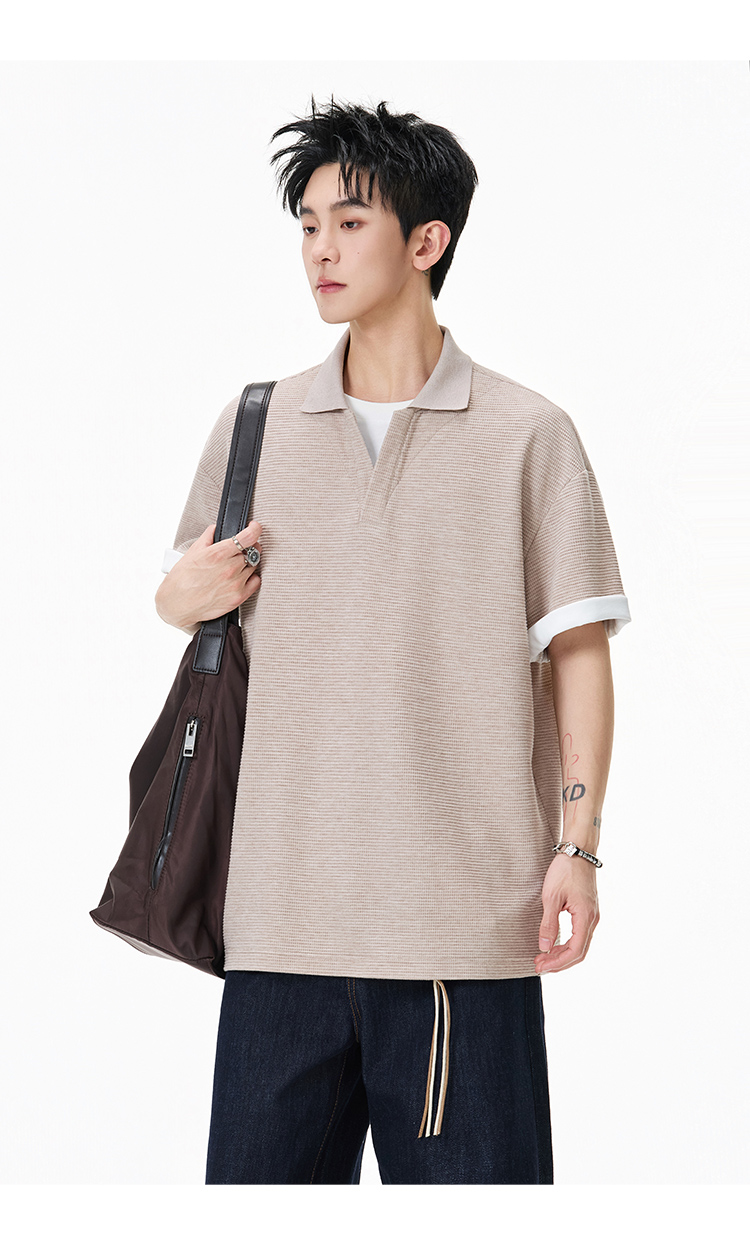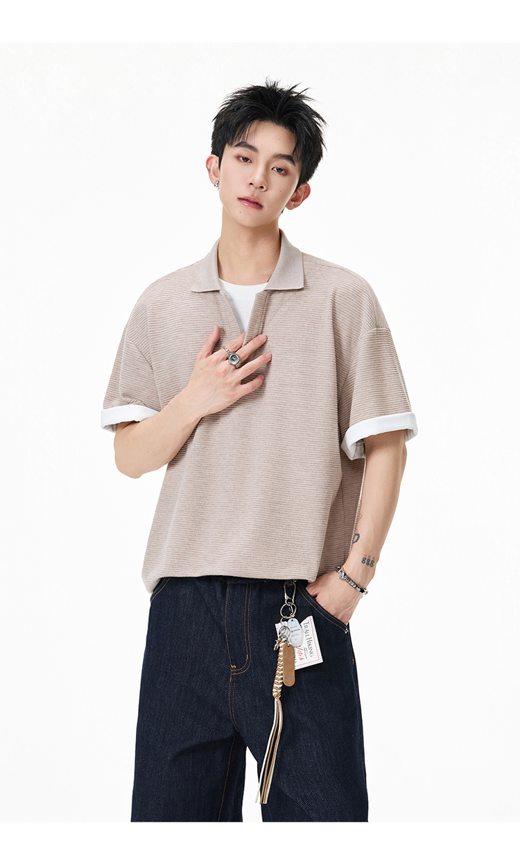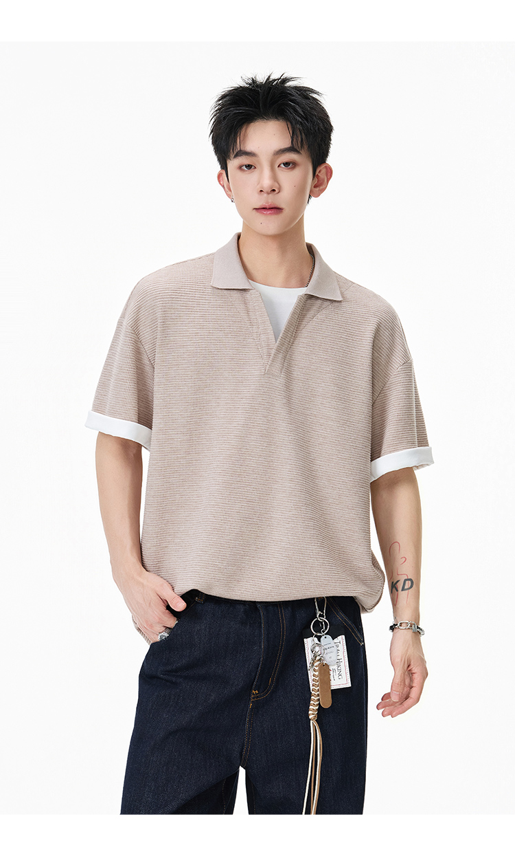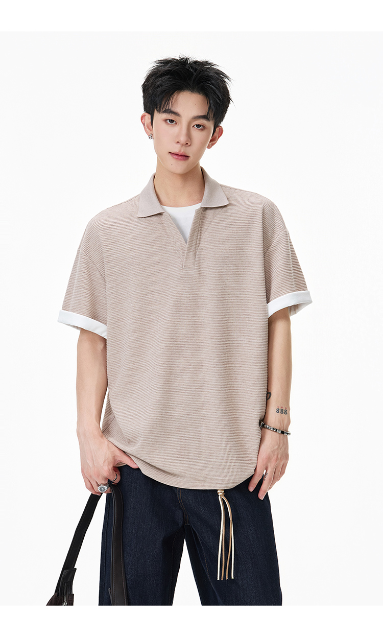 簡約華夫格·圓領短Polo衫