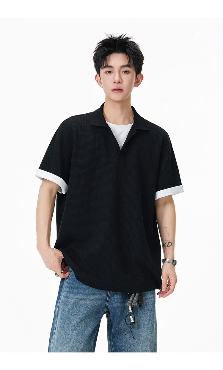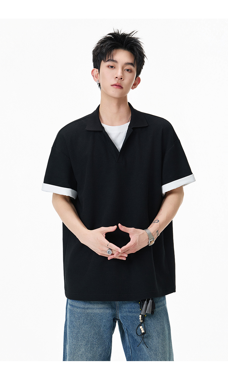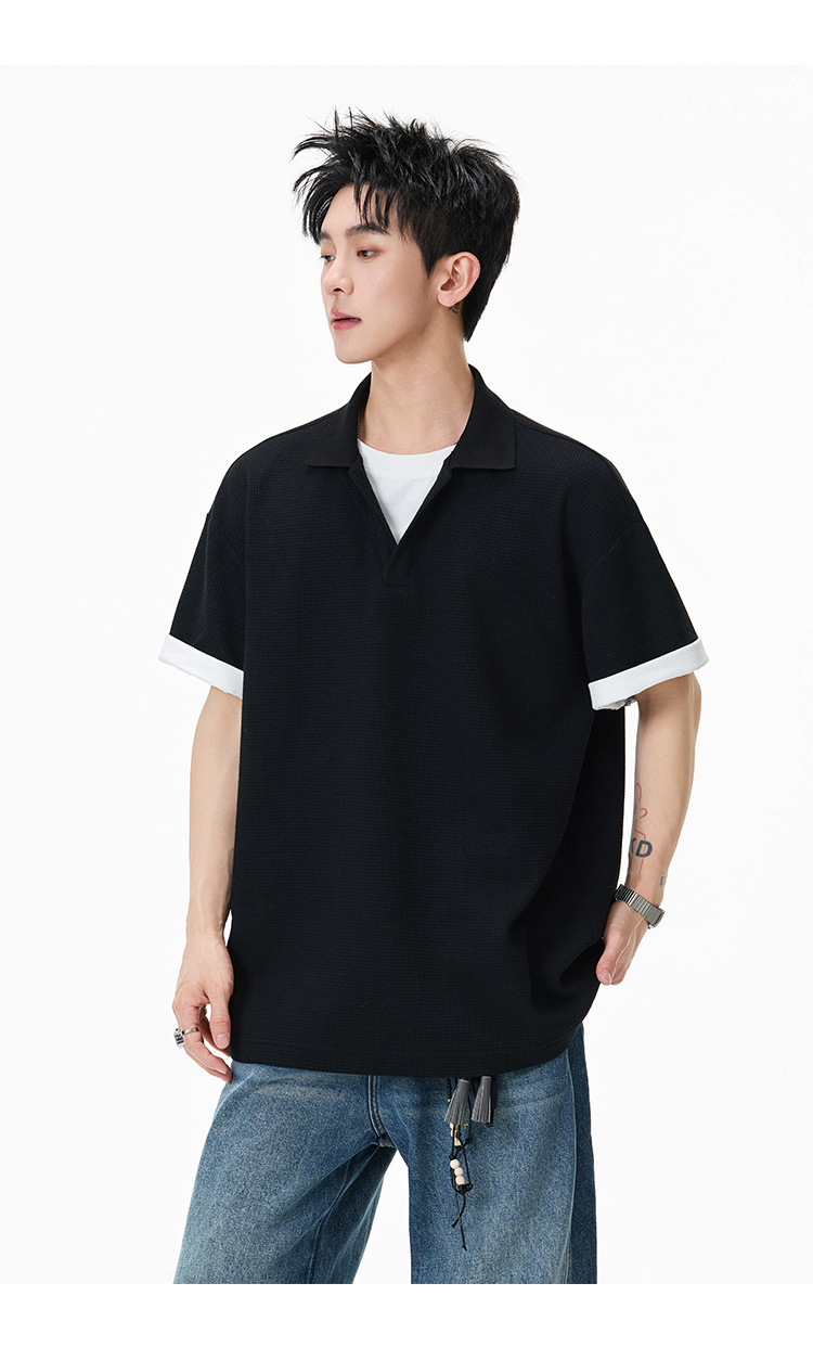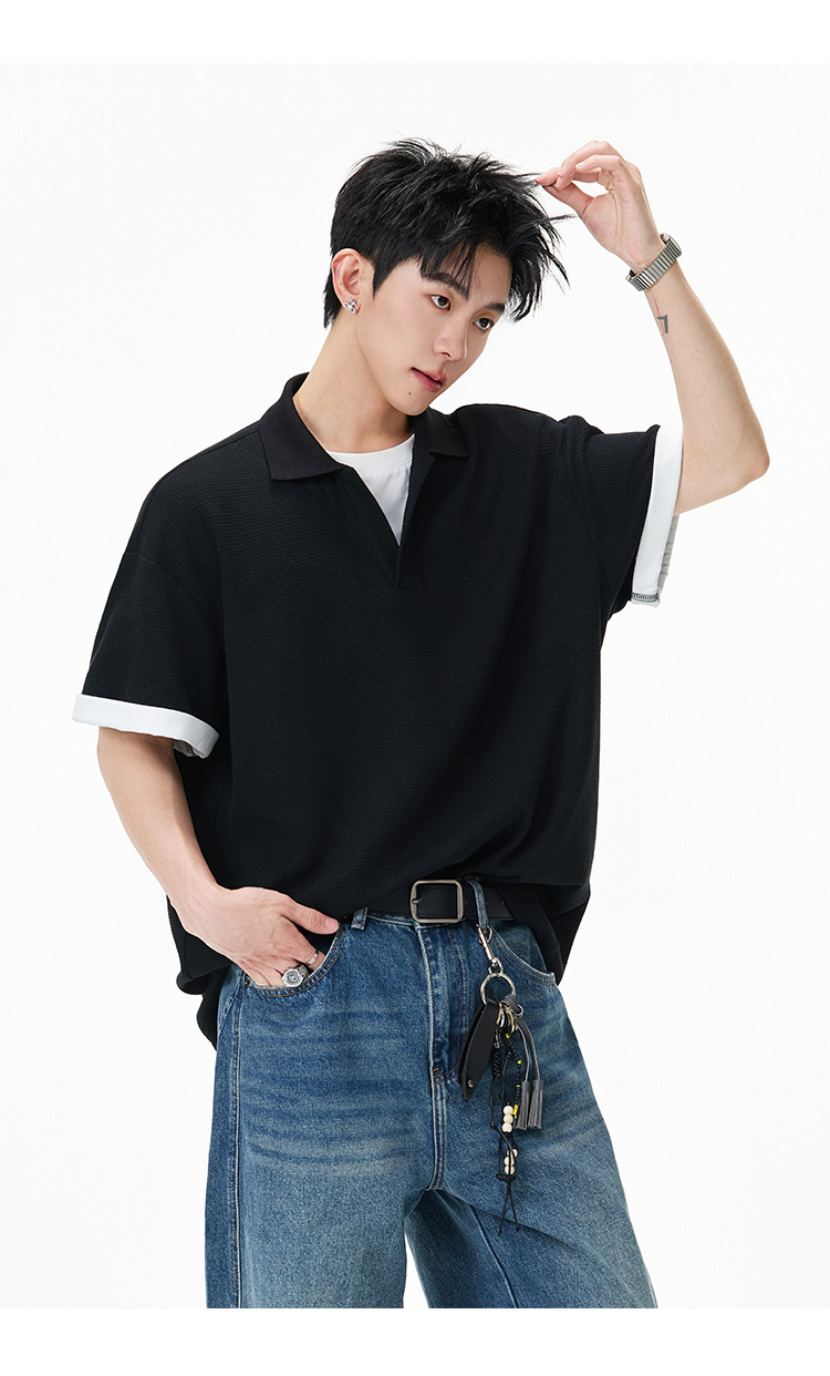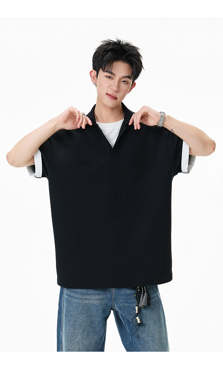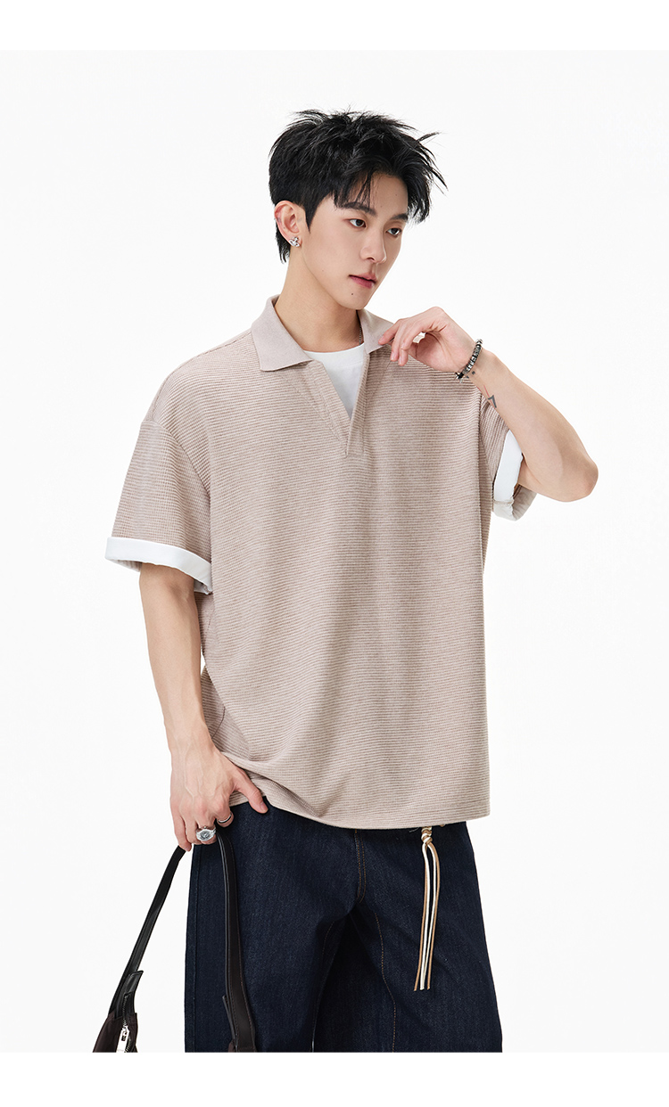 簡約華夫格·圓領短Polo衫