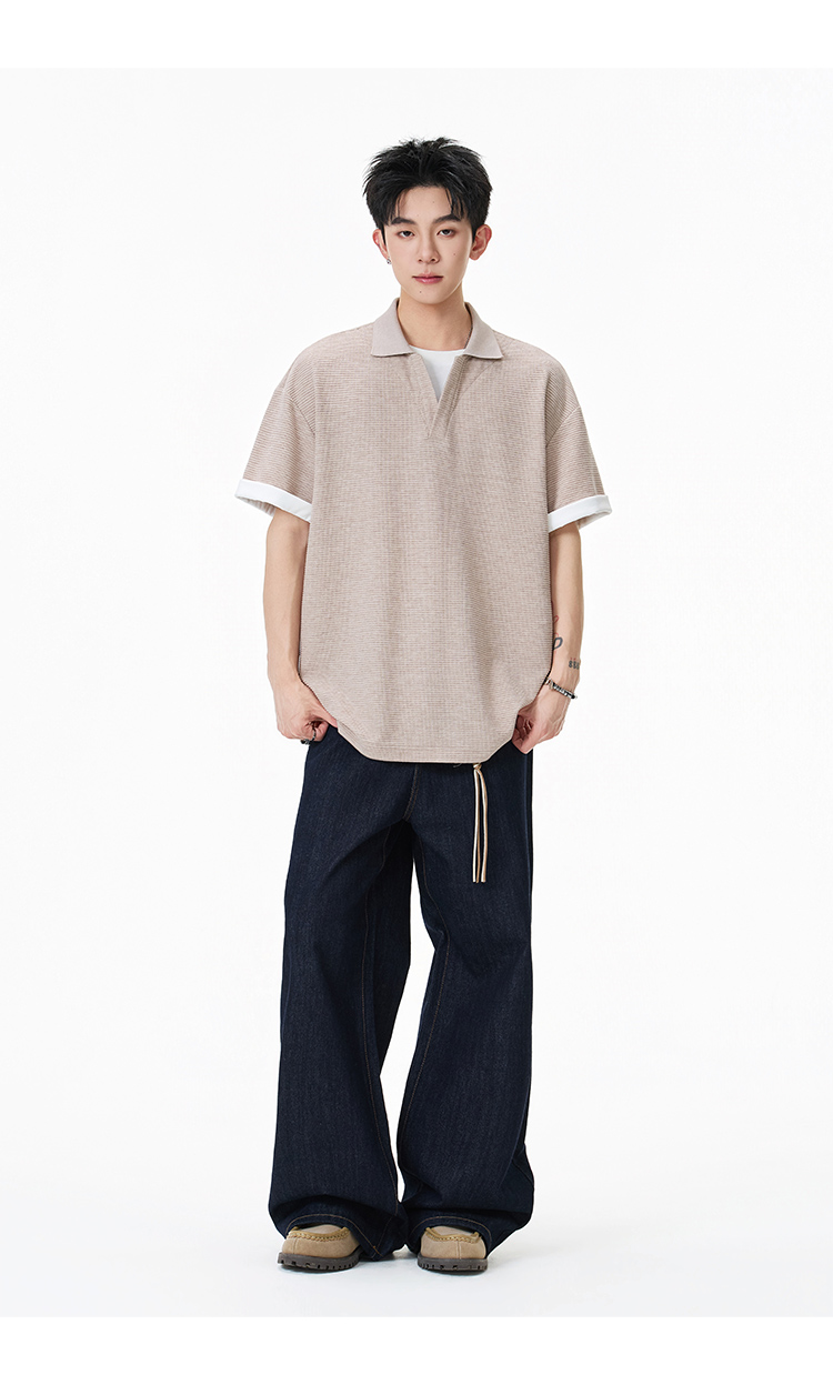 美式寬版·V領長Polo衫