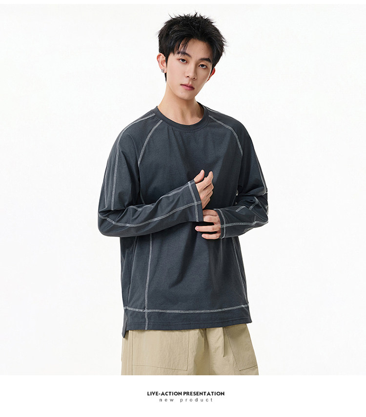 簡約拼接·翻領長Tee