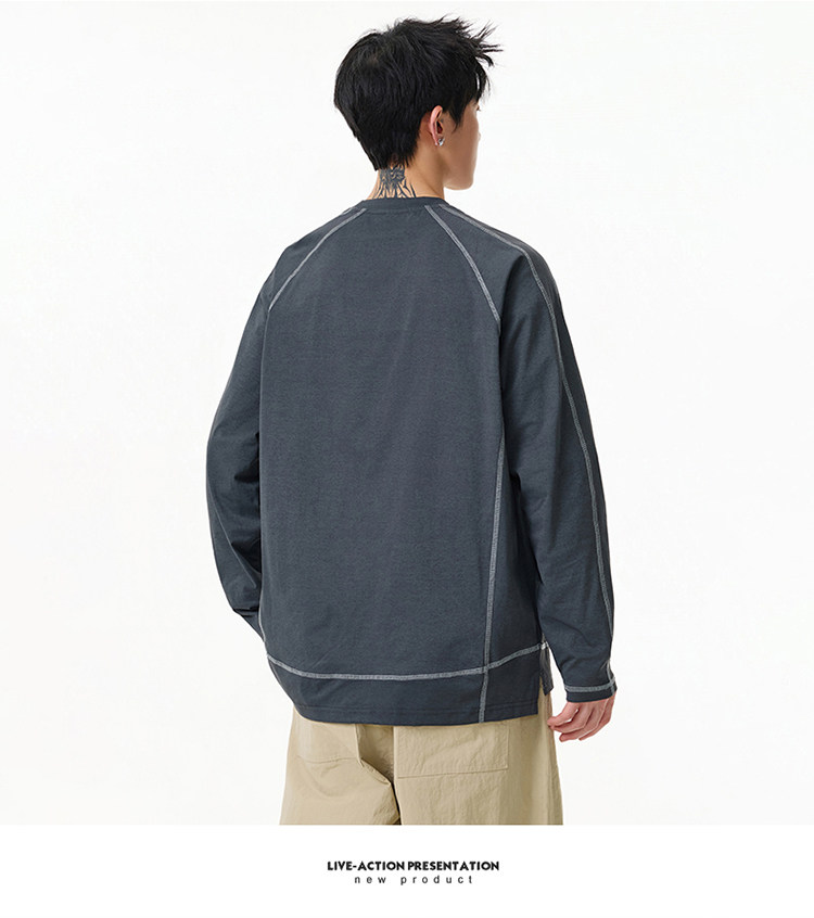 美式亨利領·針織長Tee