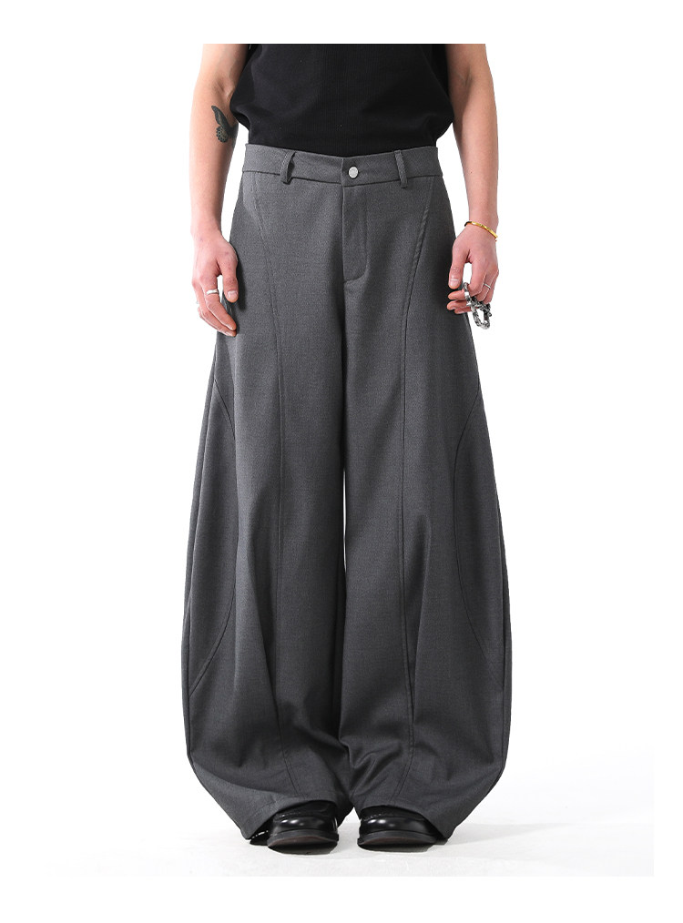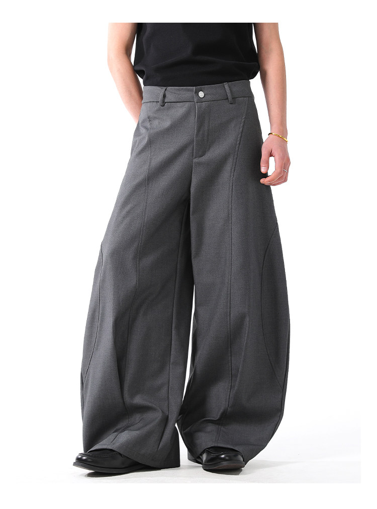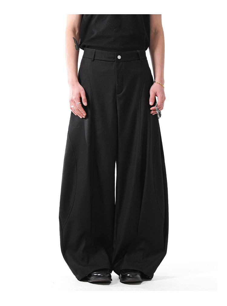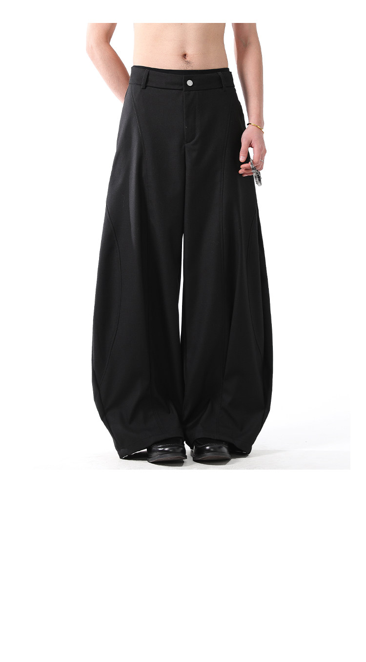 不對稱剪裁與層次堆疊常見,打造率性不拘束的態度,弧形褲管設計,打造立體時尚輪廓。