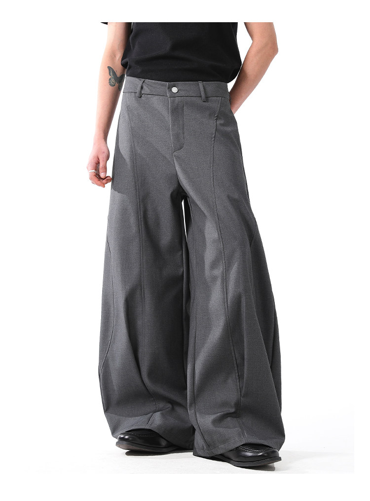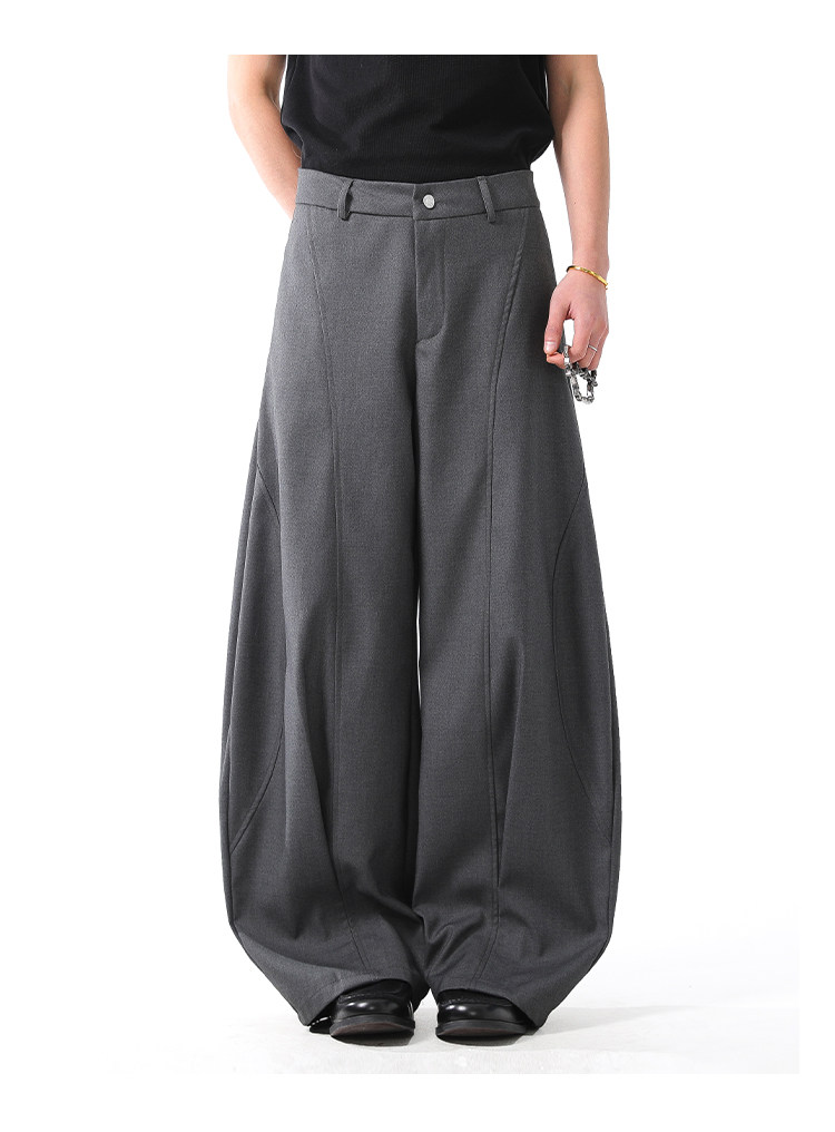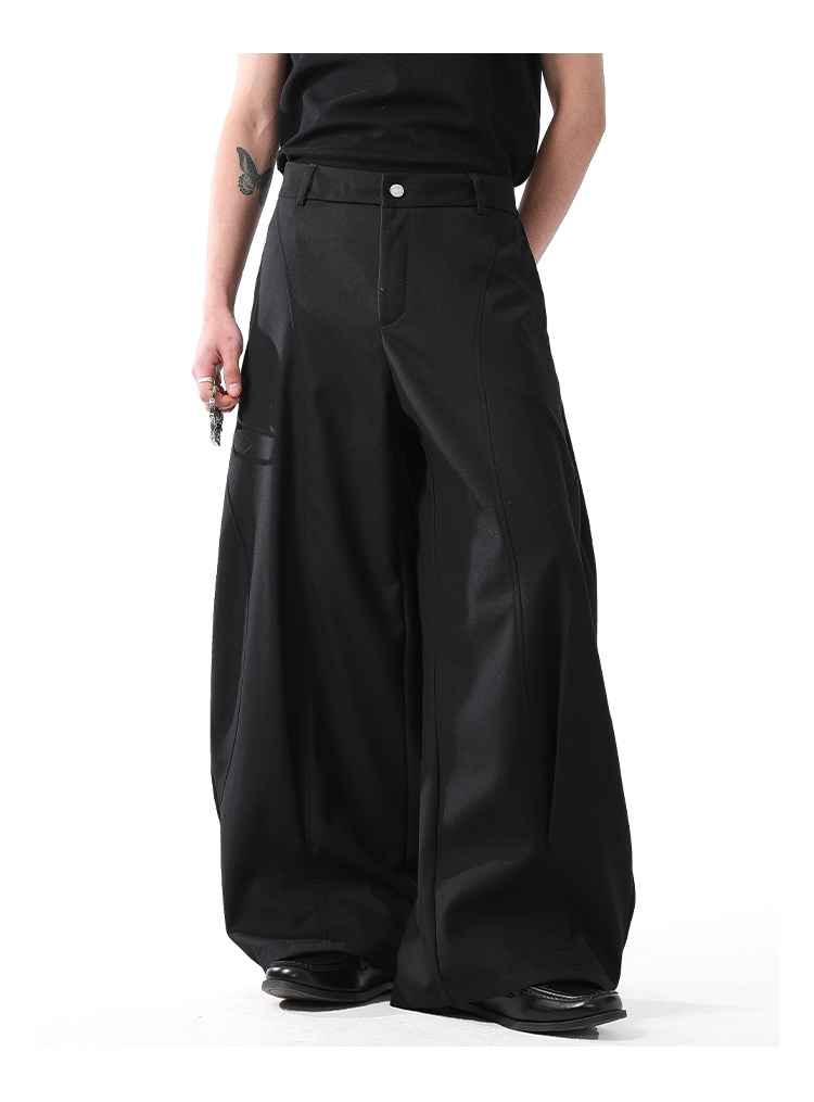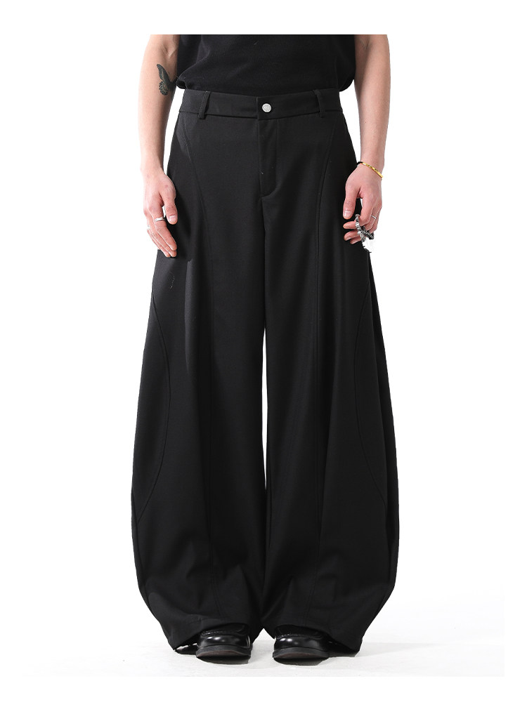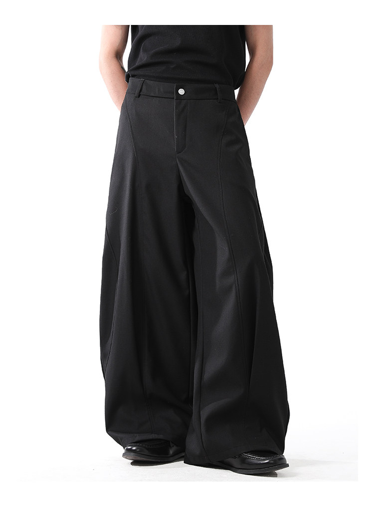 不對稱剪裁與層次堆疊常見,打造率性不拘束的態度,弧形褲管設計,打造立體時尚輪廓。