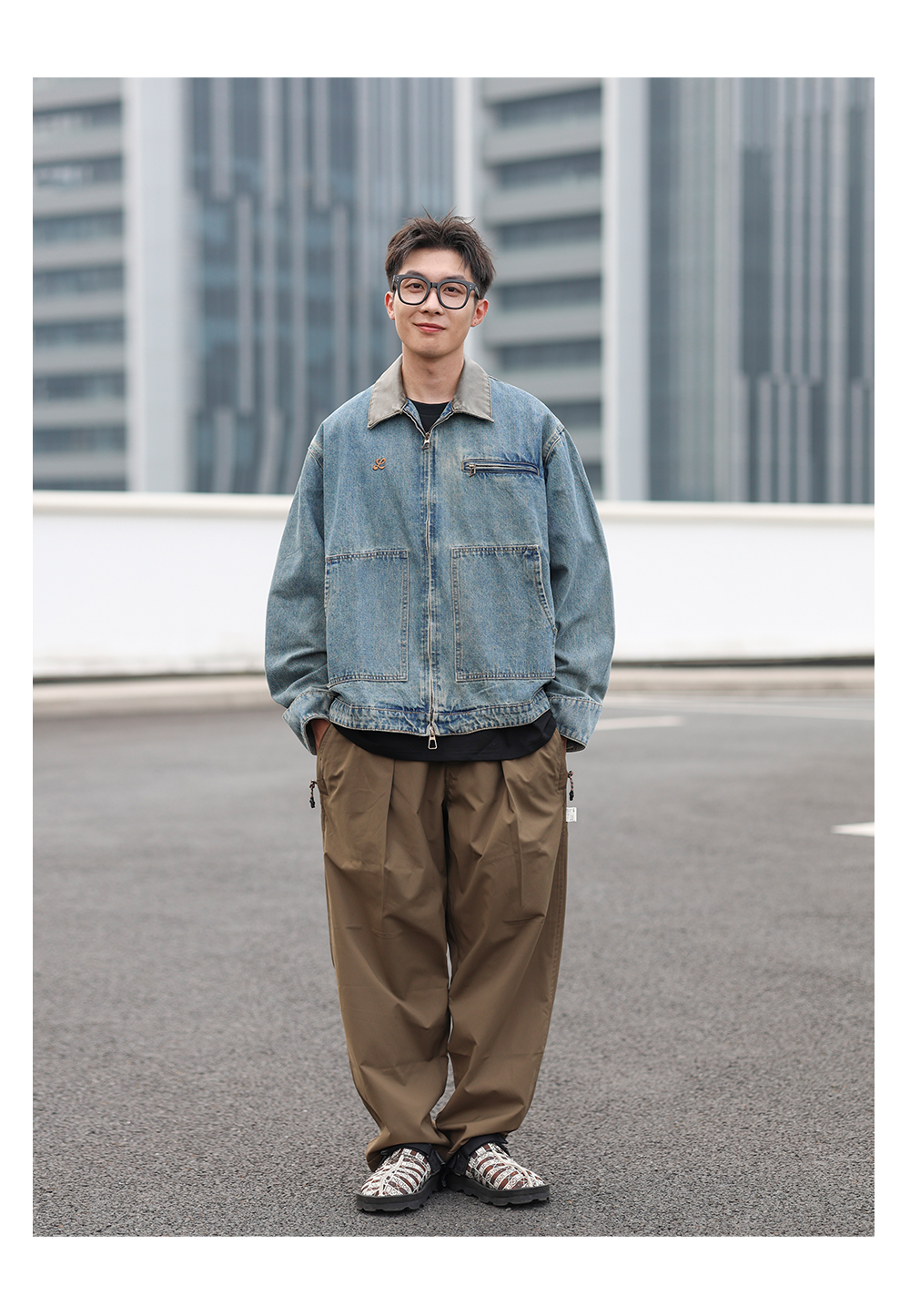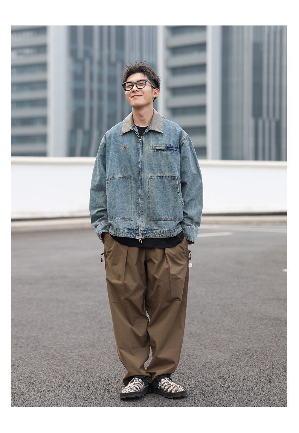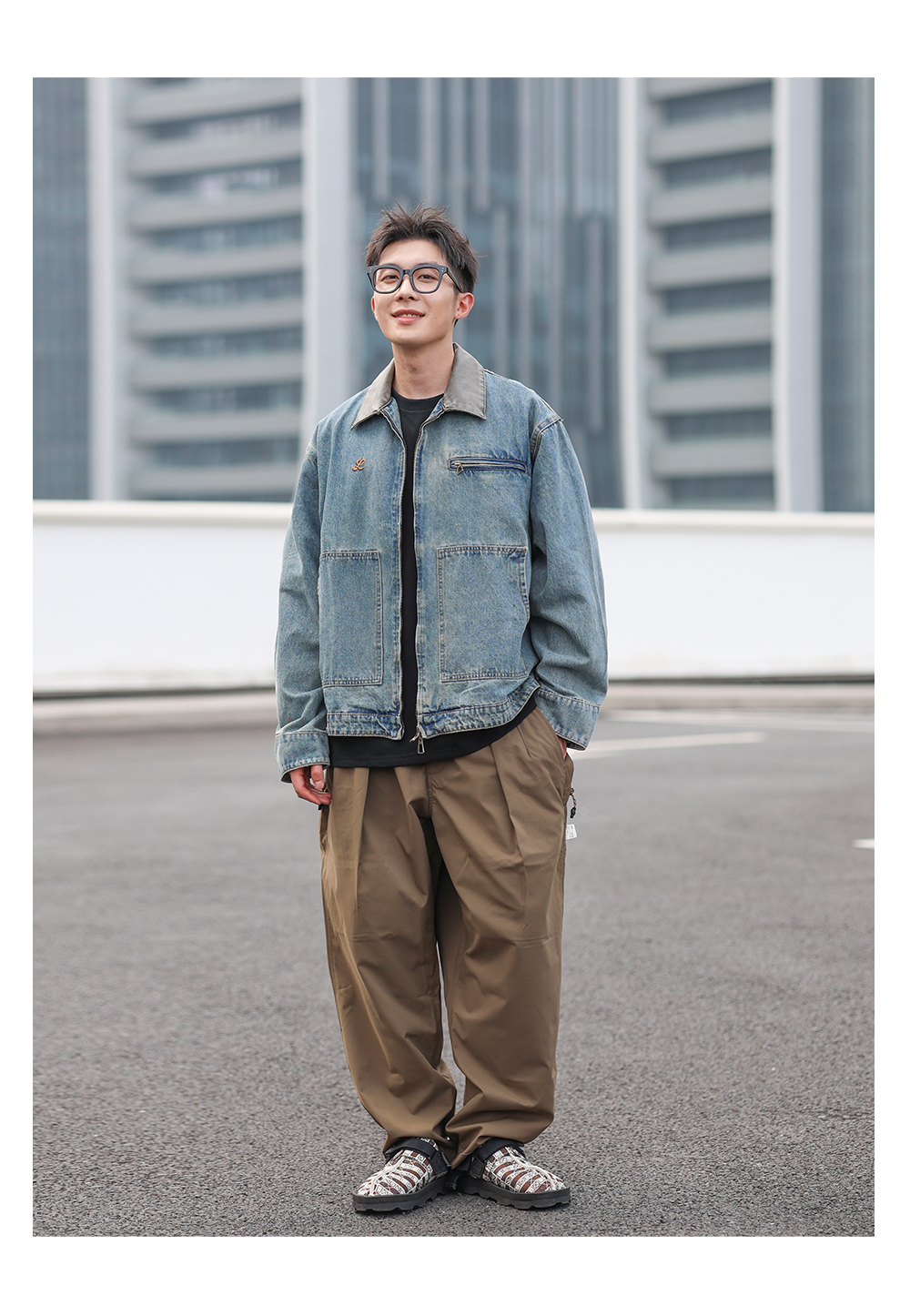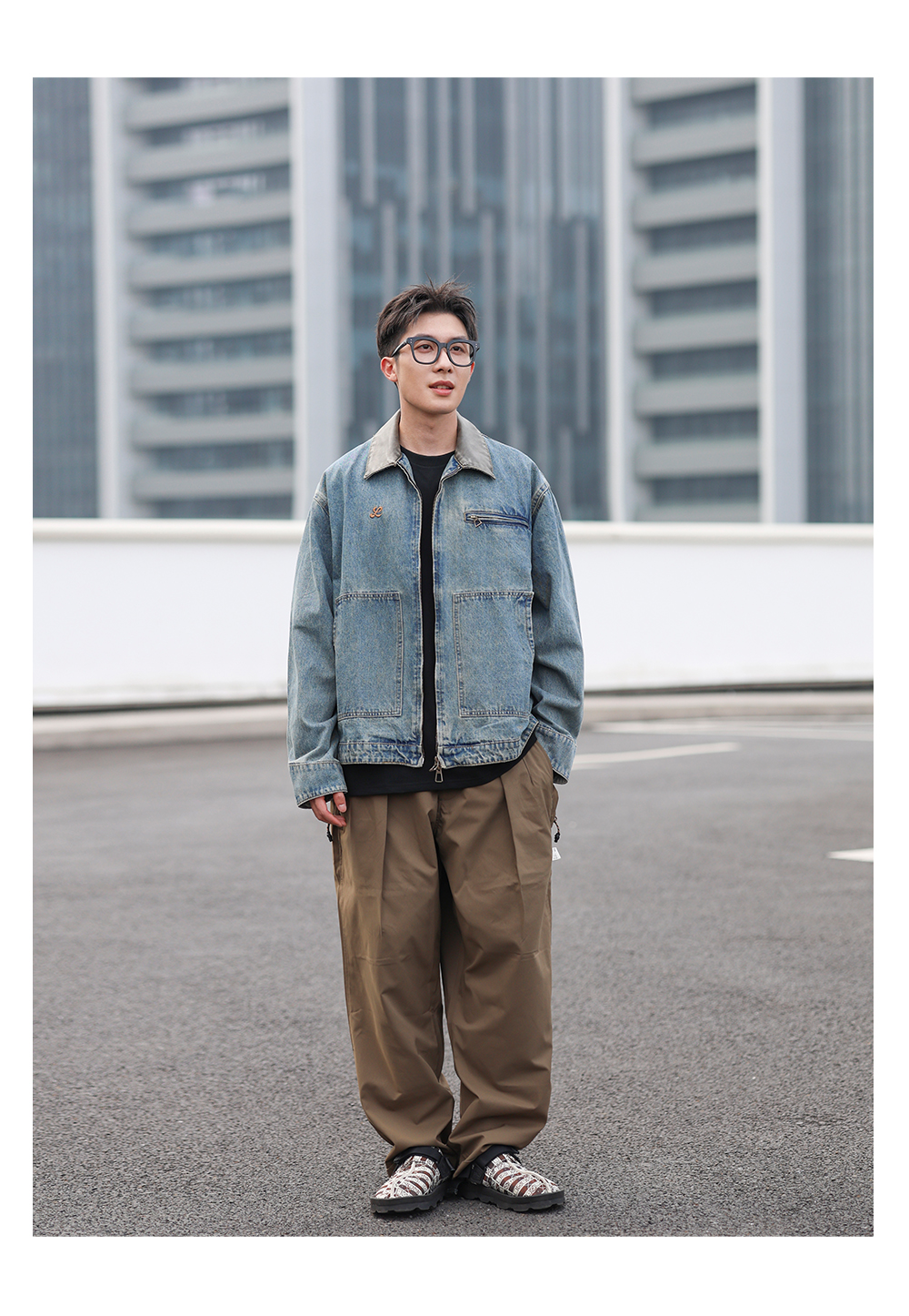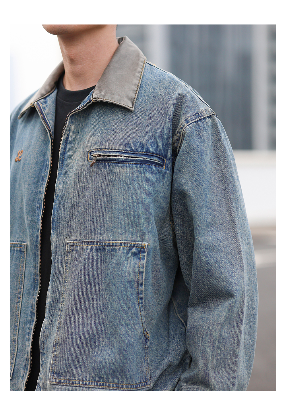 具有年代感的獨特質感;刺繡文字呈現的個人化細節,經典優雅的翻折領型。