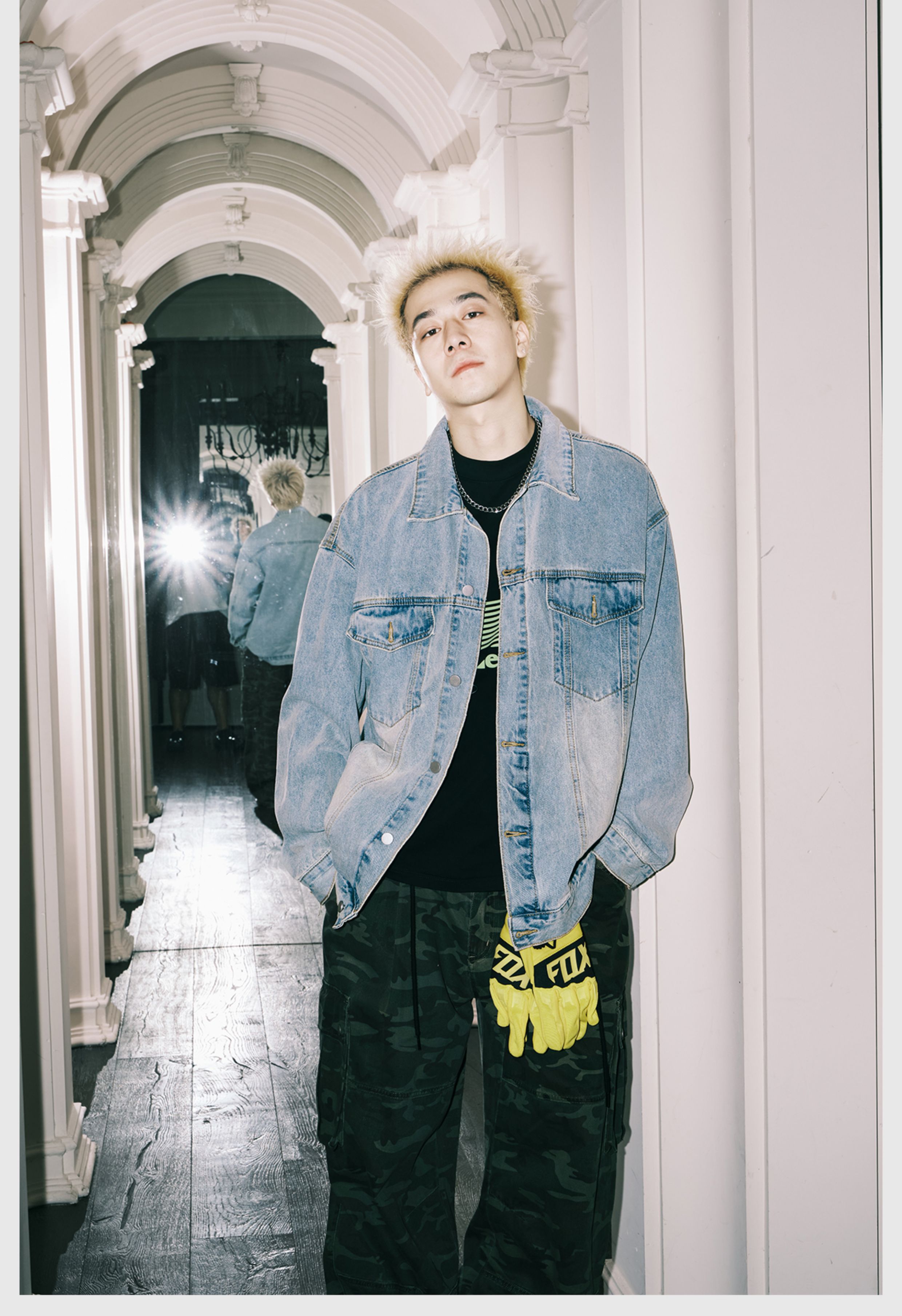 拼接水洗·翻領牛仔夾克