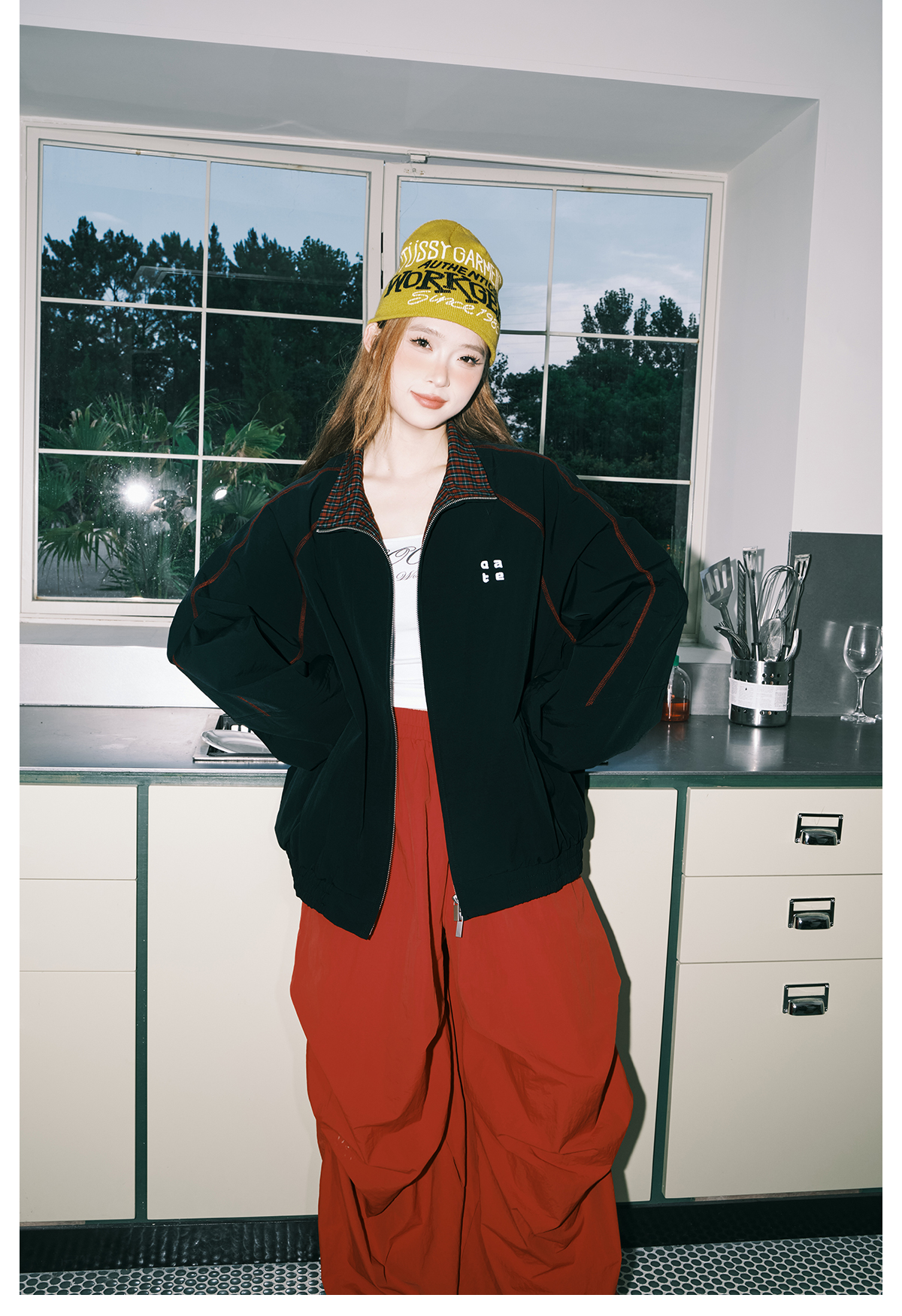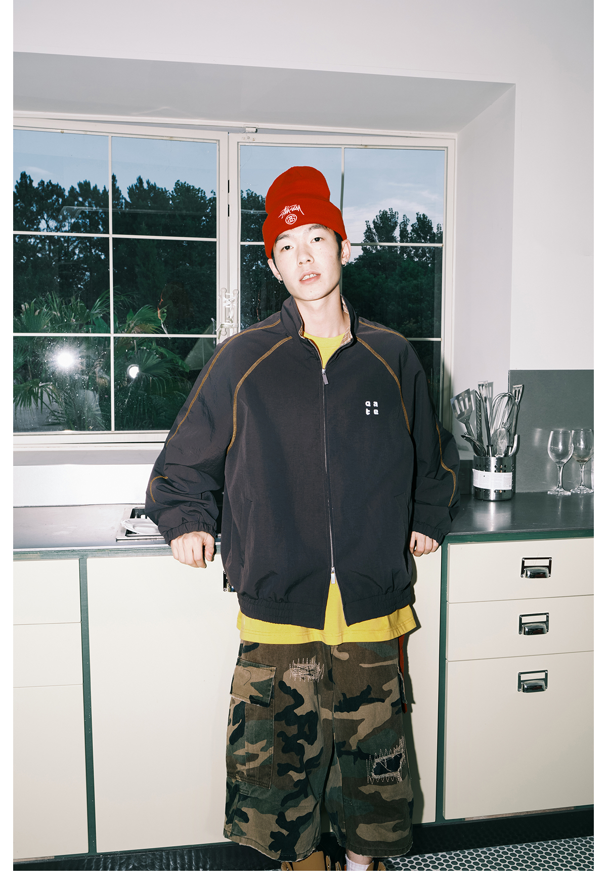 融合運動元素的休閒造型,明顯縫線成為裝飾亮點,為單品注入個性與態度。