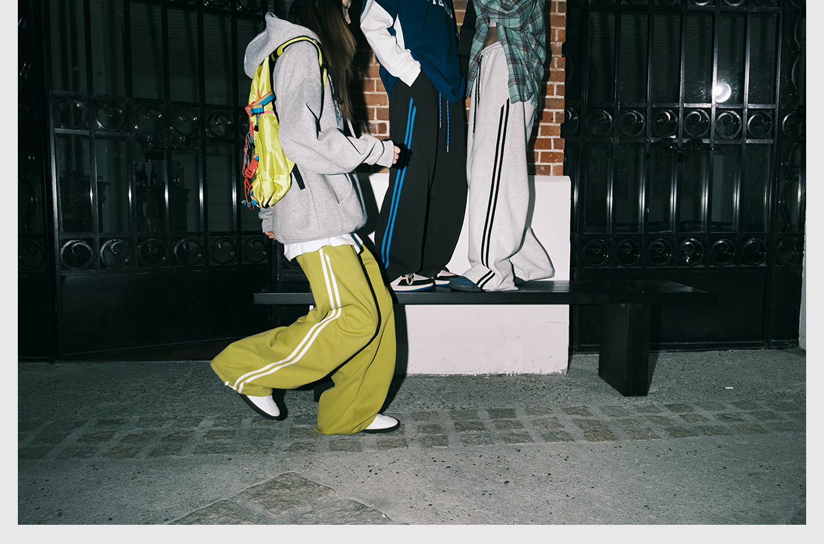 融合運動元素的休閒造型,輪廓寬鬆,展現隨性感,增添運動風與層次效果。