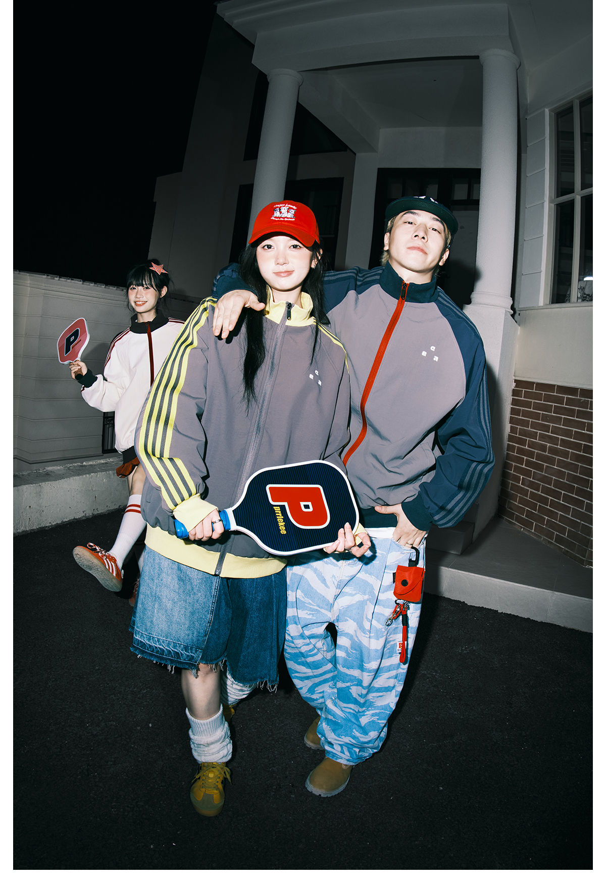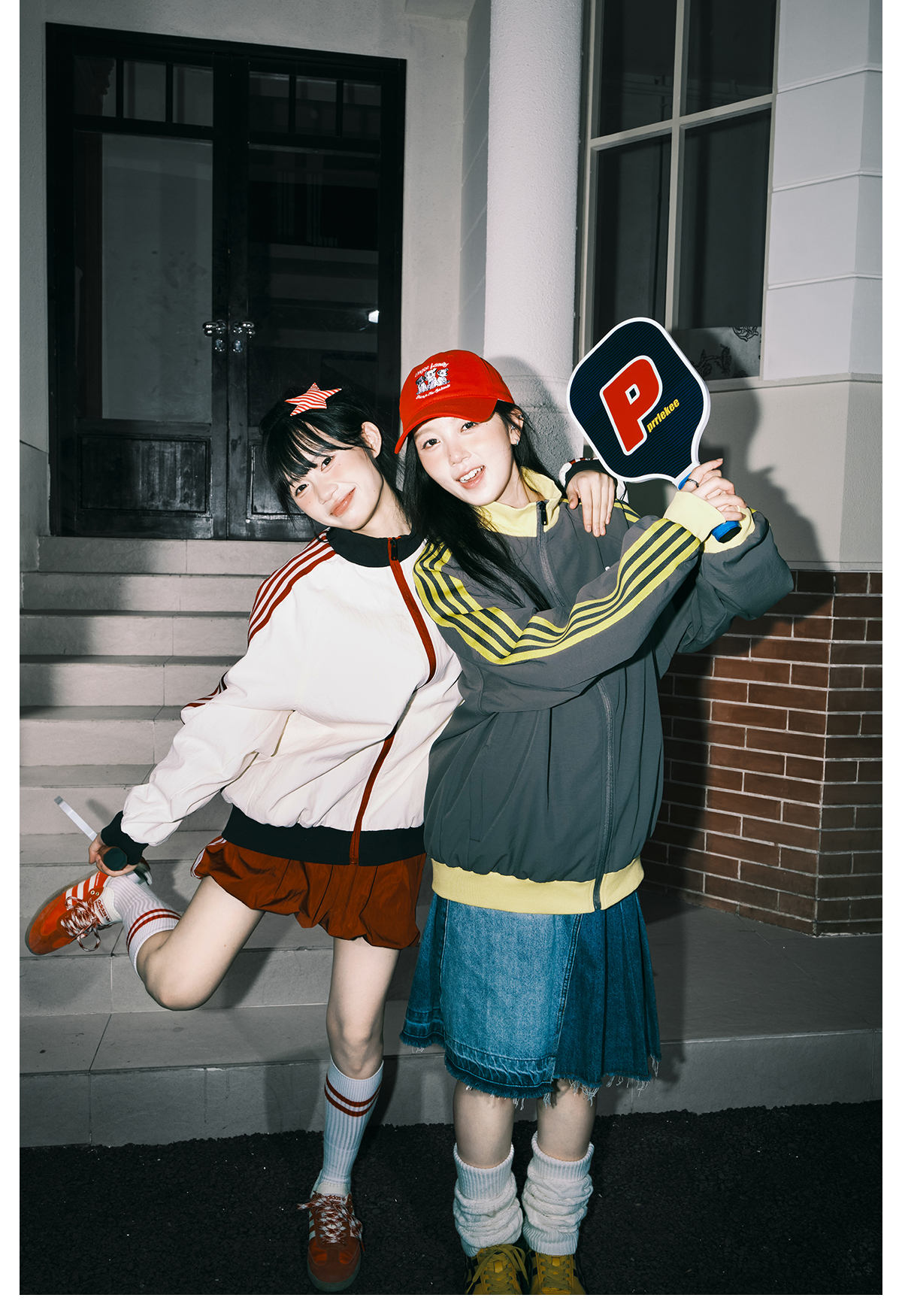營造活潑鮮明的穿搭氛圍,不同元素交錯結合,增添運動風與層次效果。