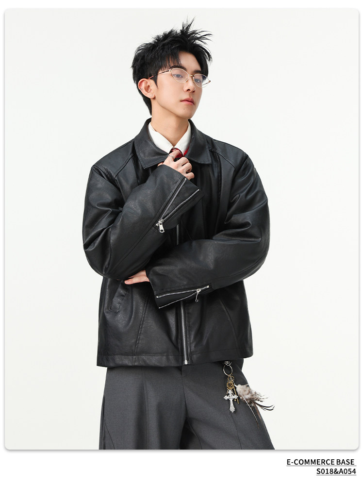 簡約皮質·寬版禦寒外套