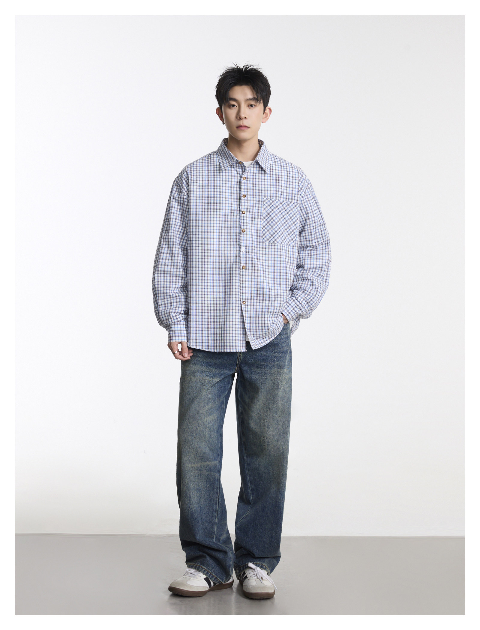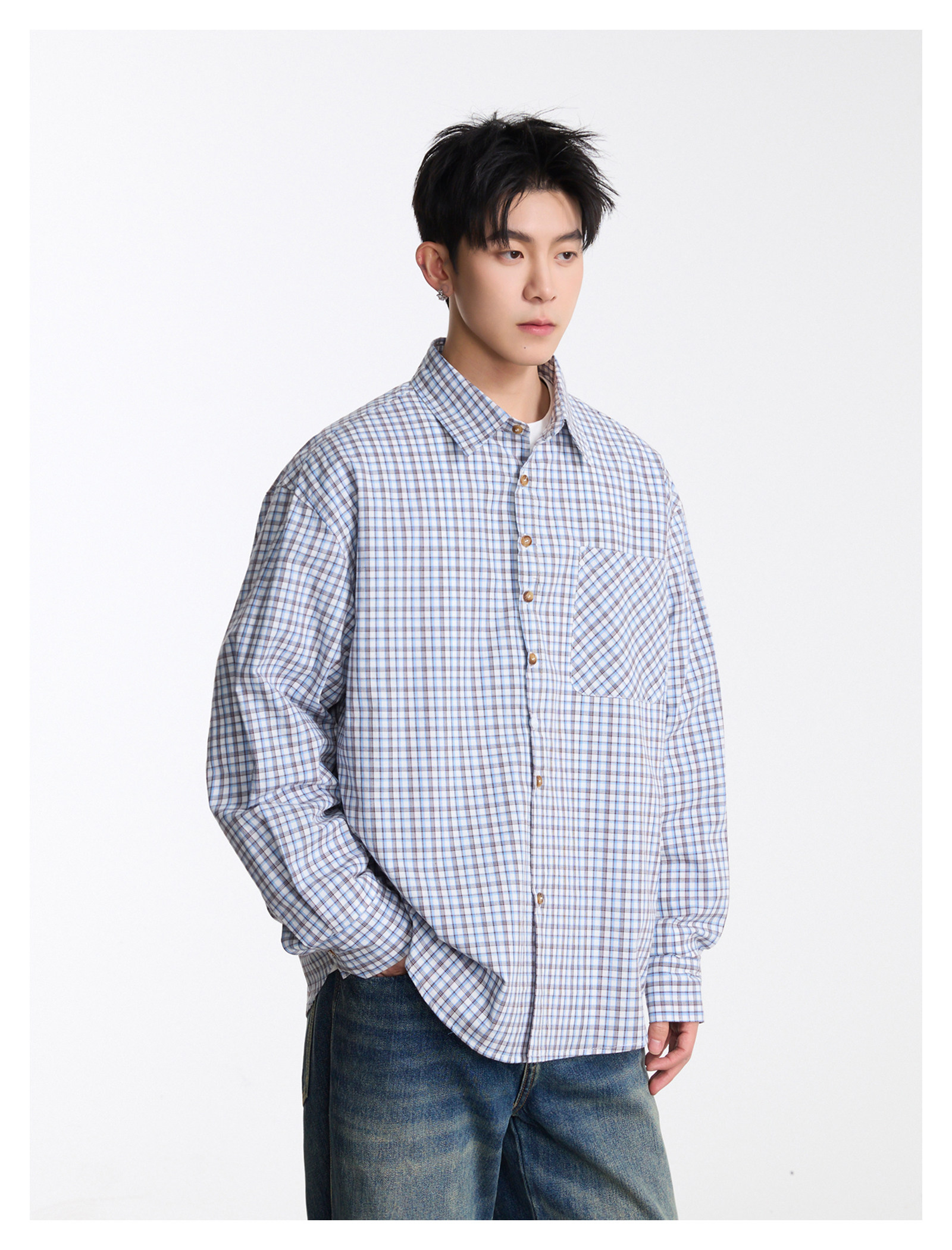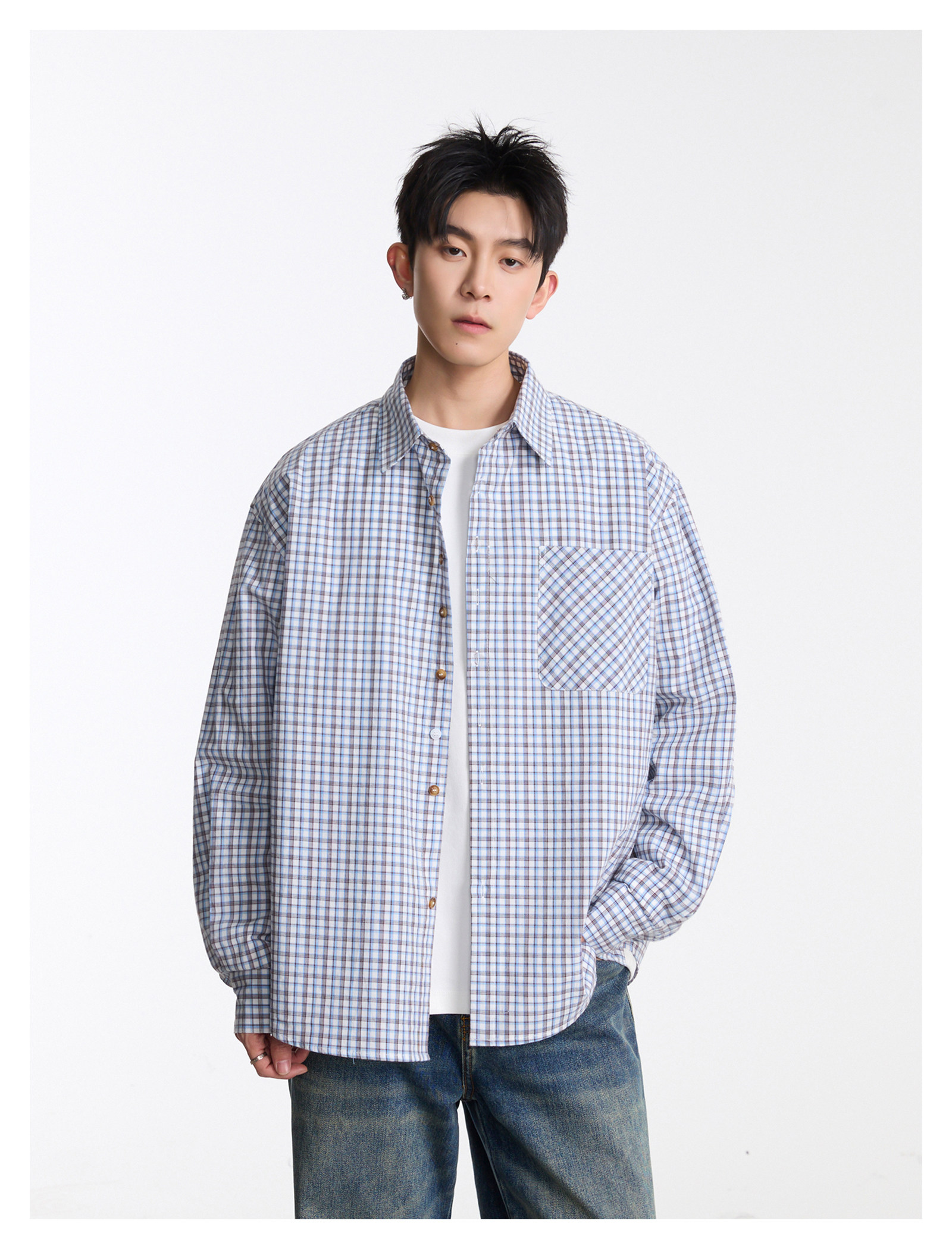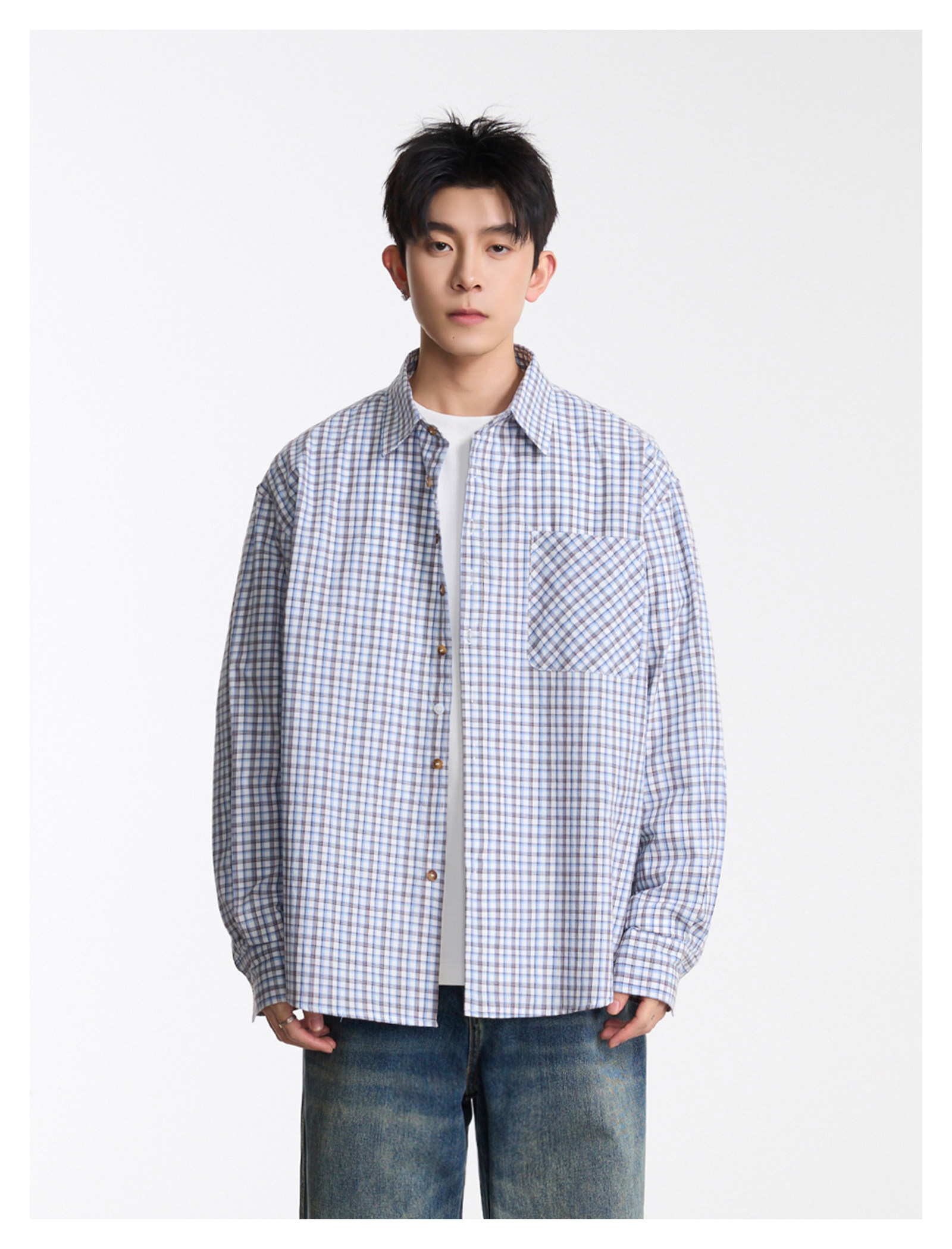 復古口袋·格紋長襯衫
