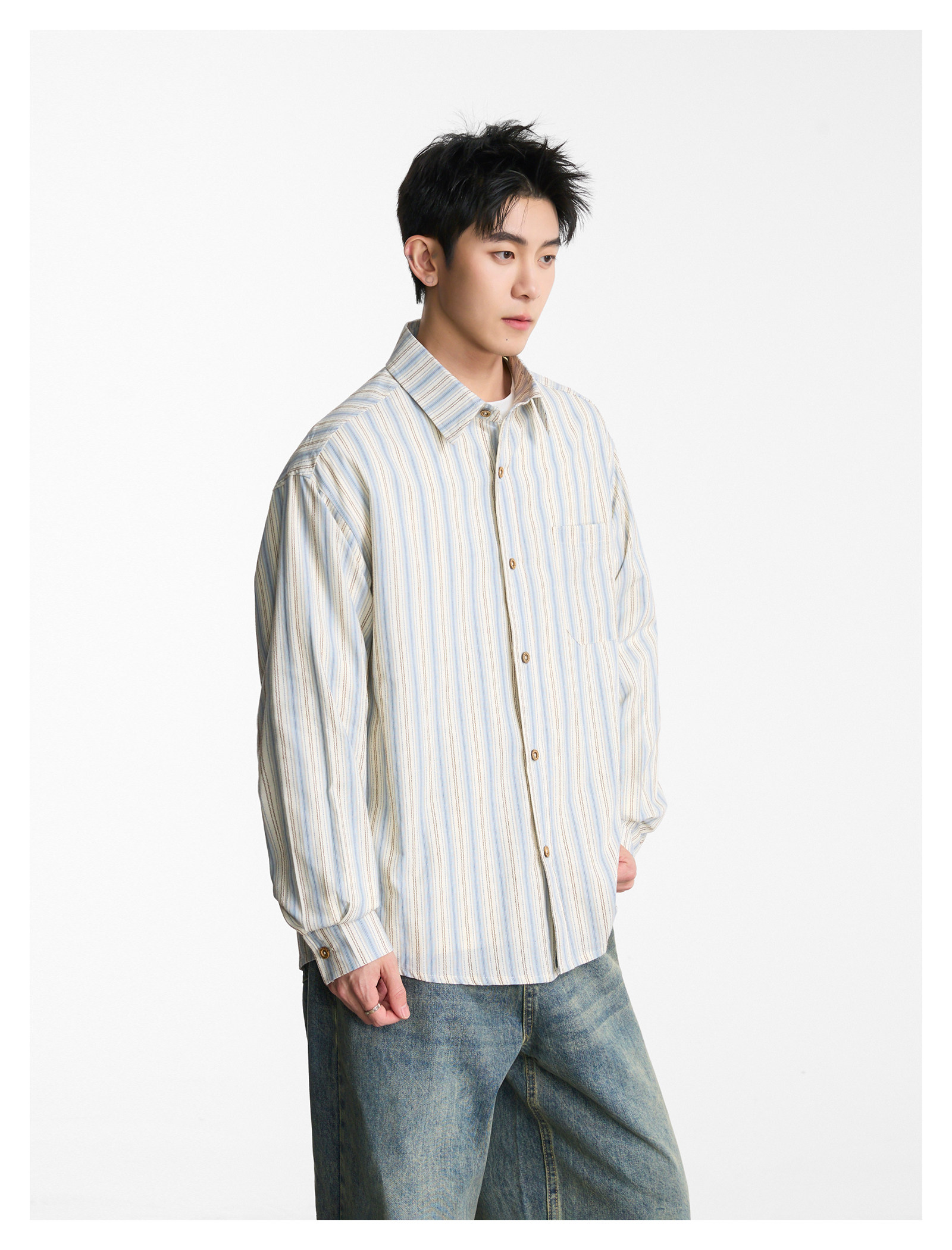 復古撞色·寬版短襯衫