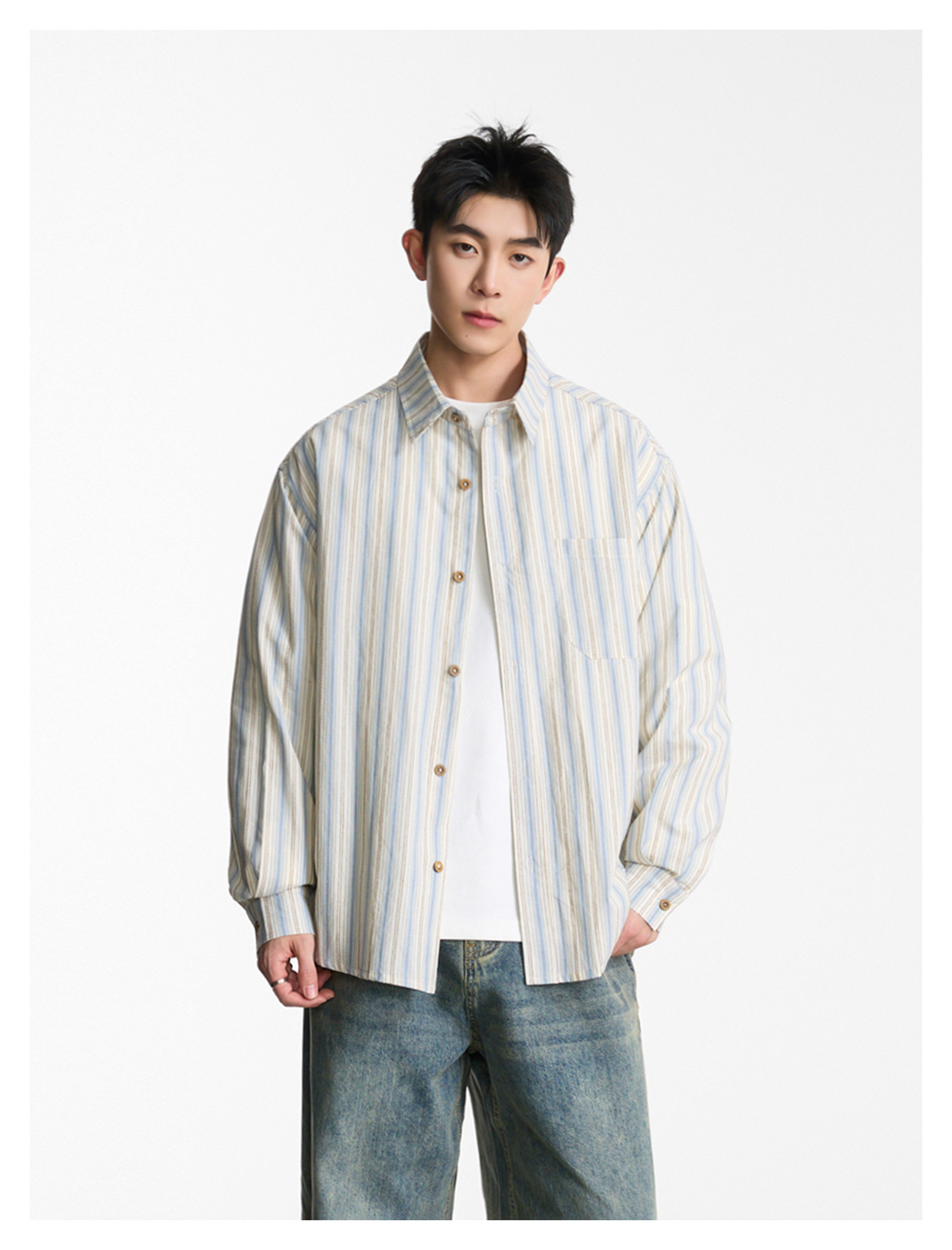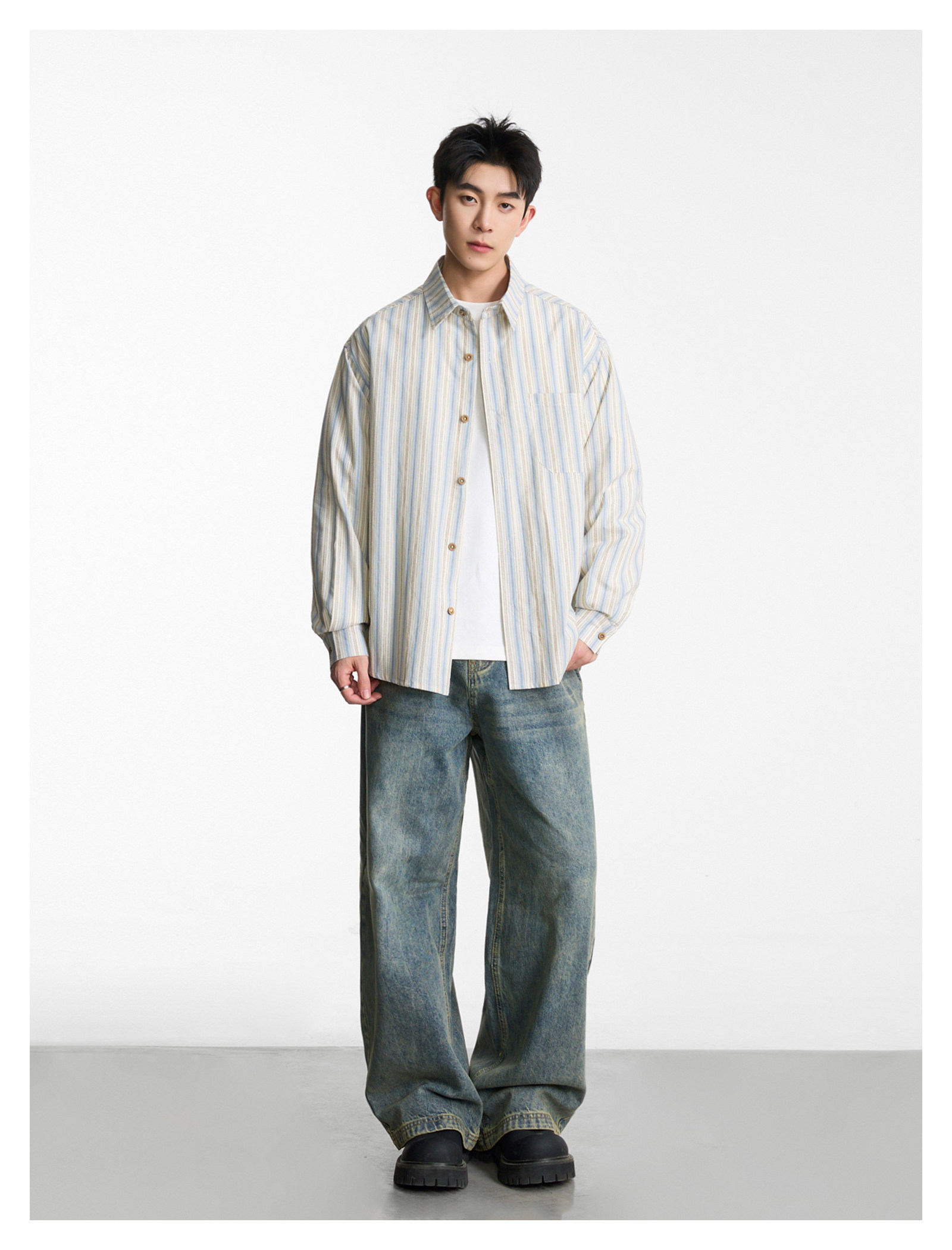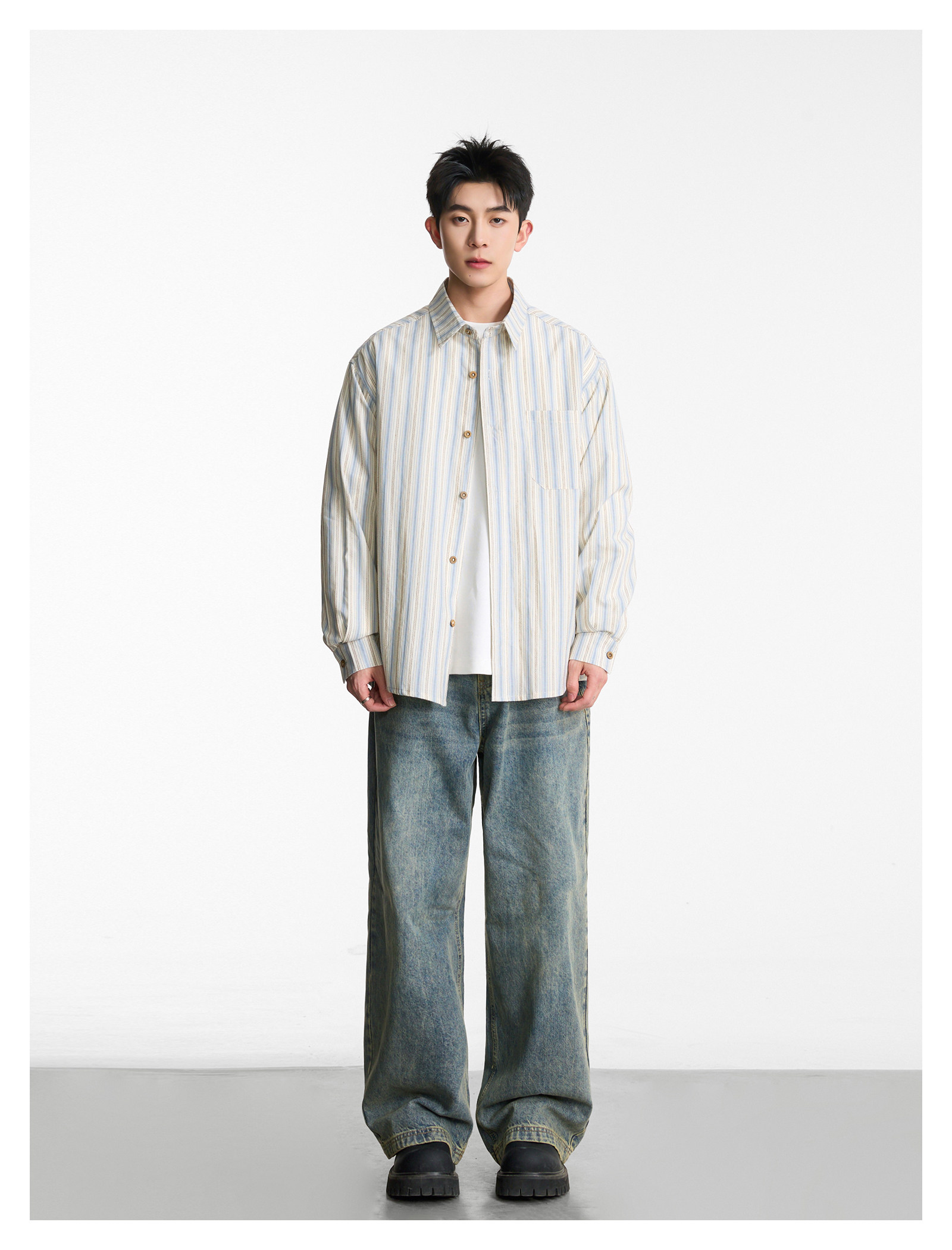 工裝素面·寬版短襯衫