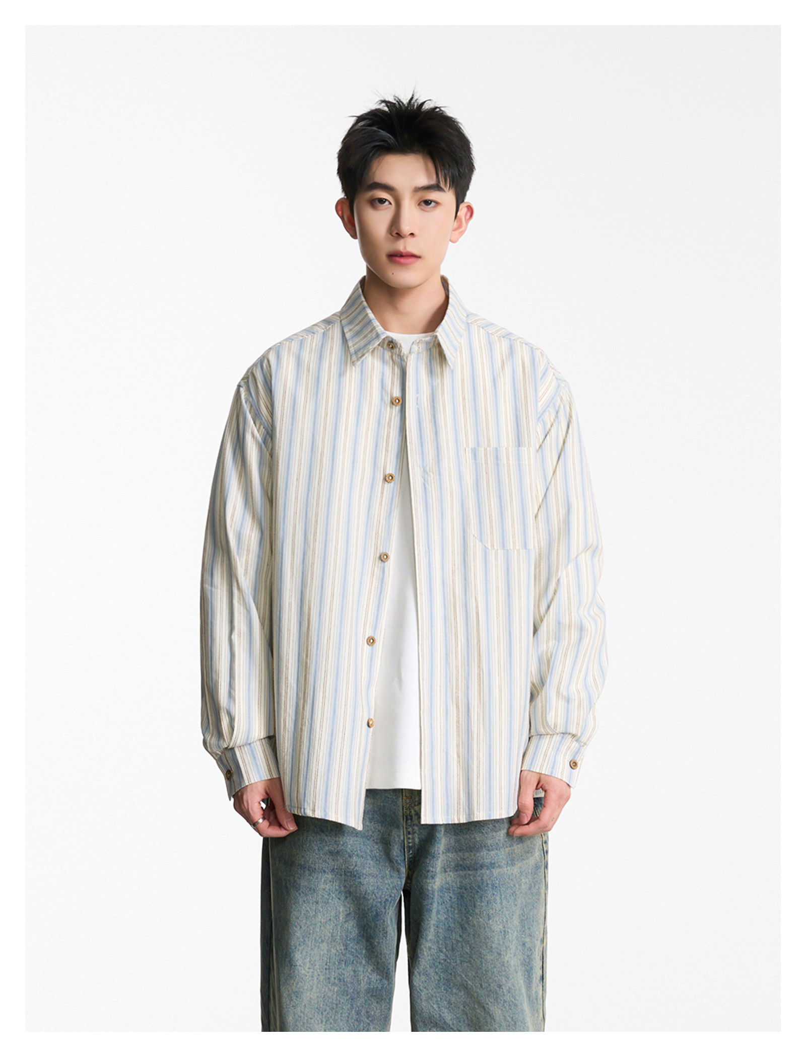 日系拼接·圓領短襯衫