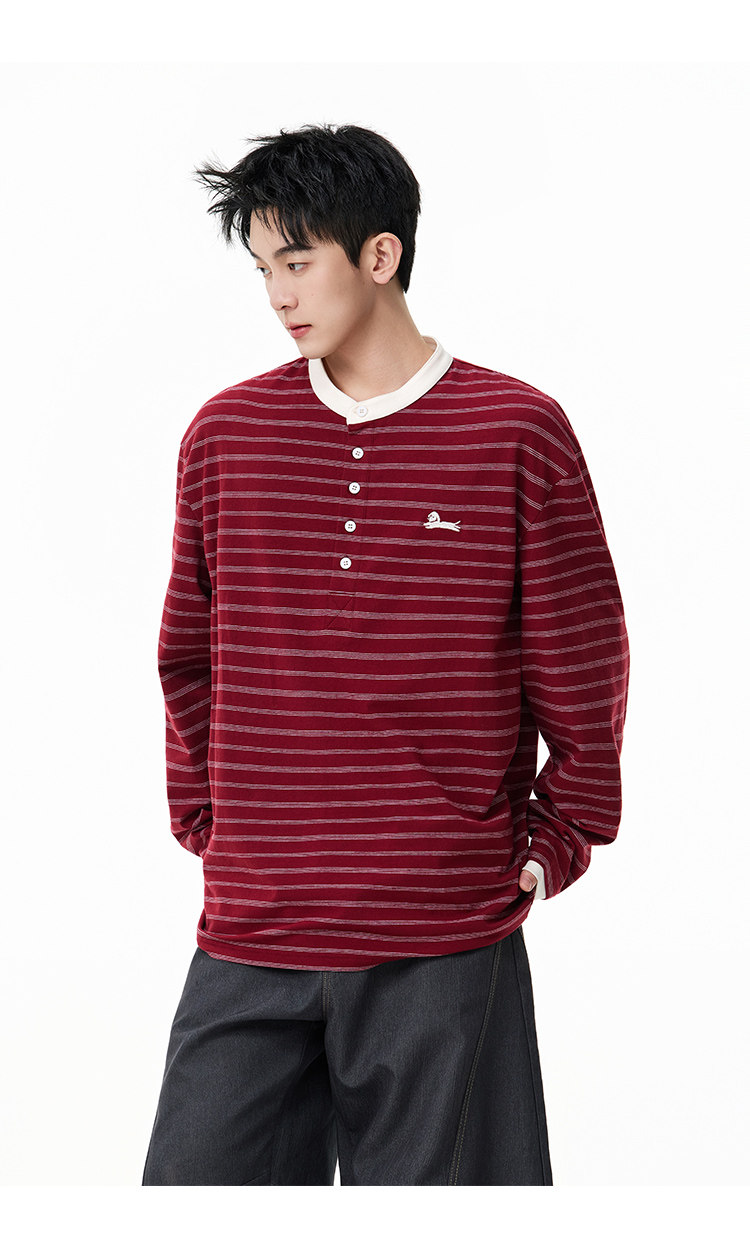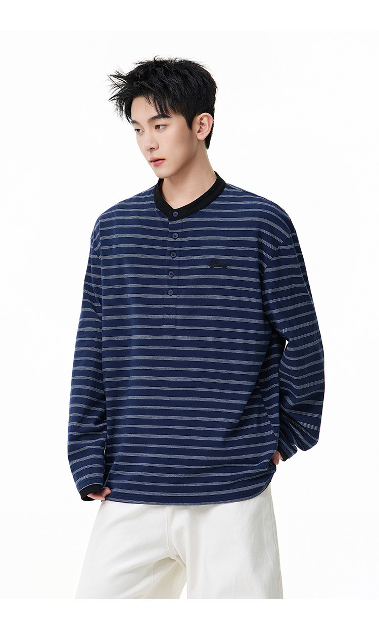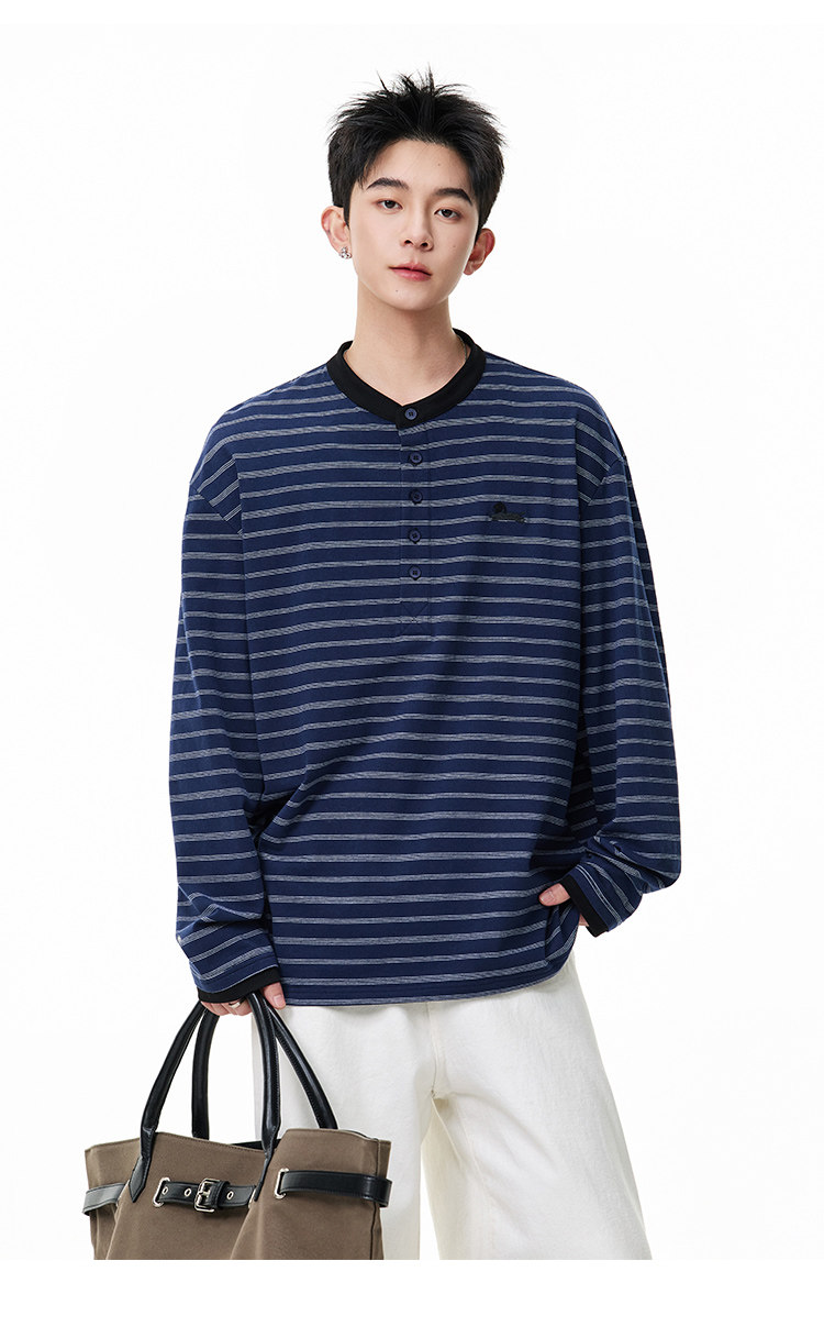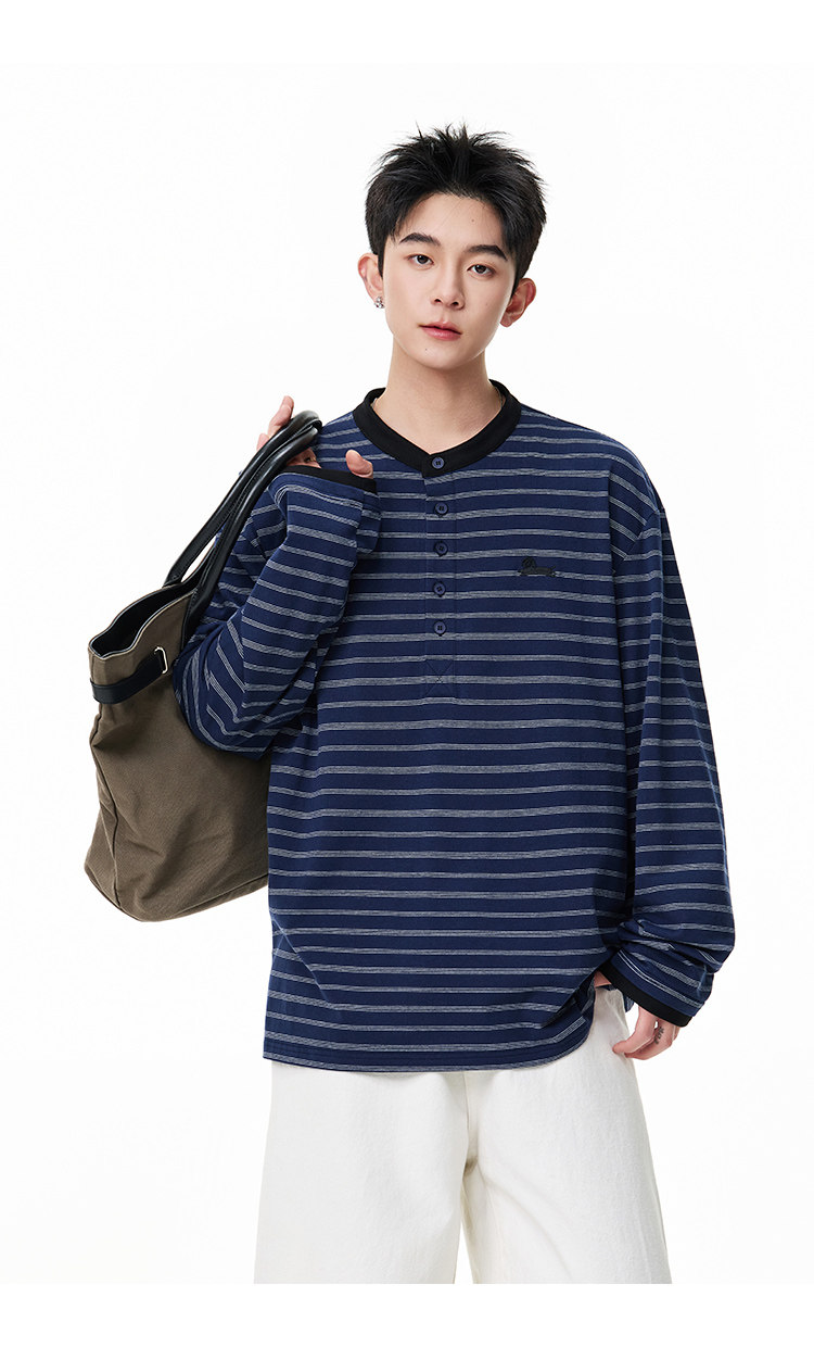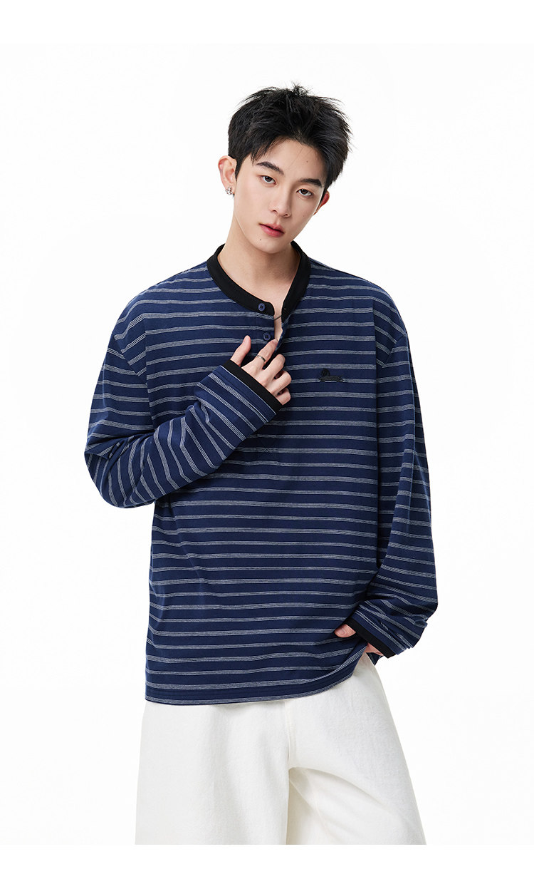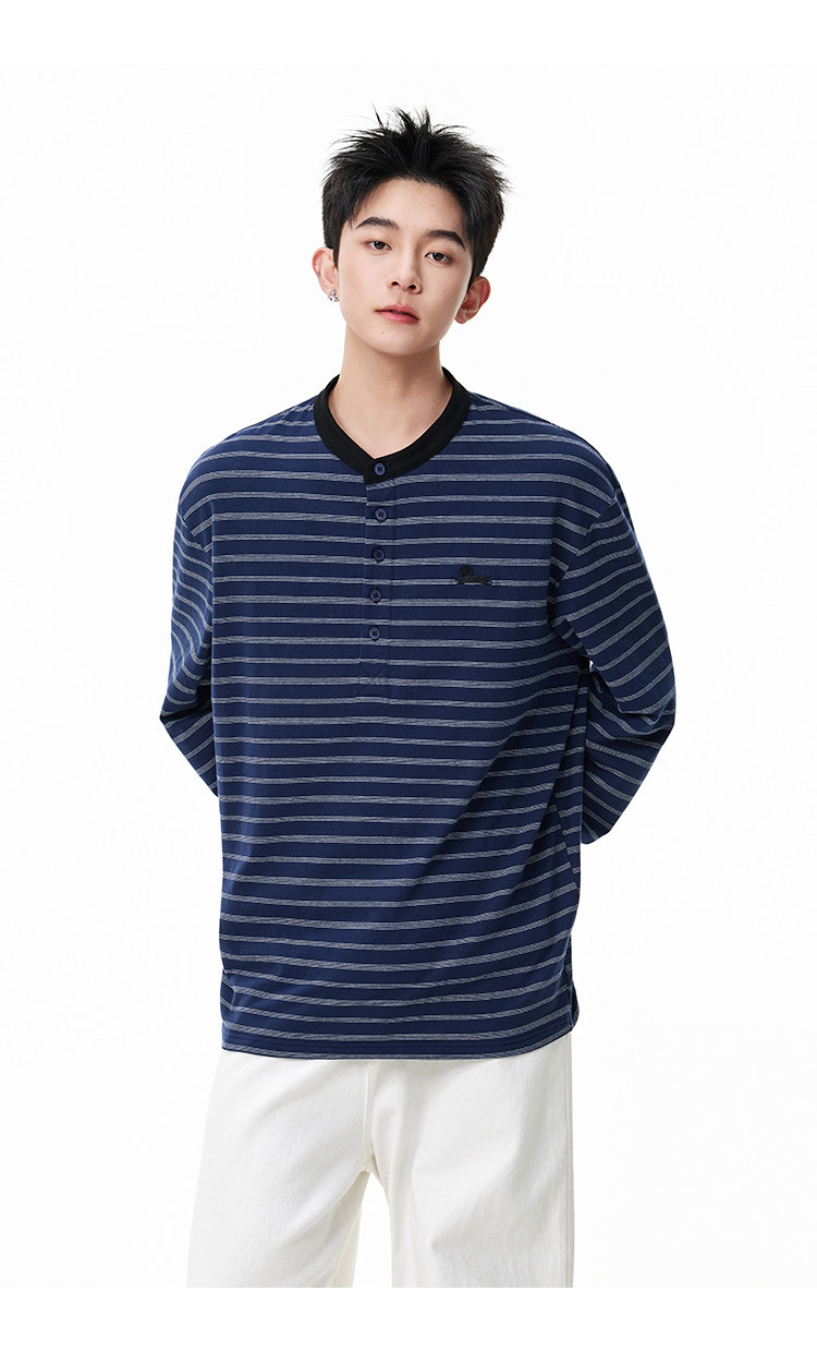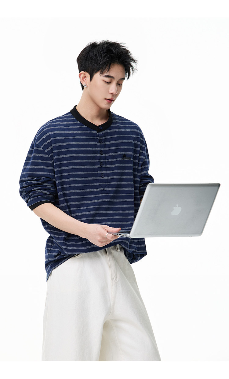 百搭條紋·亨利領長Tee