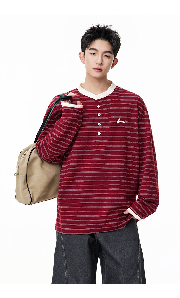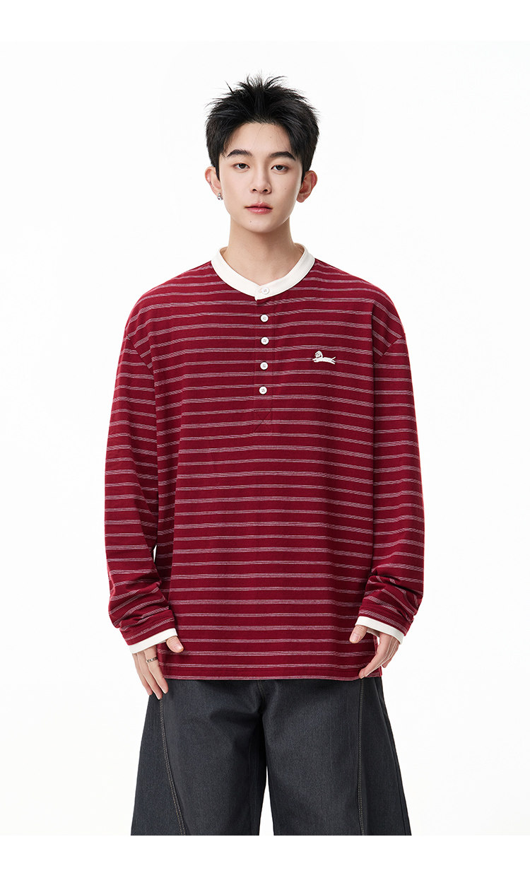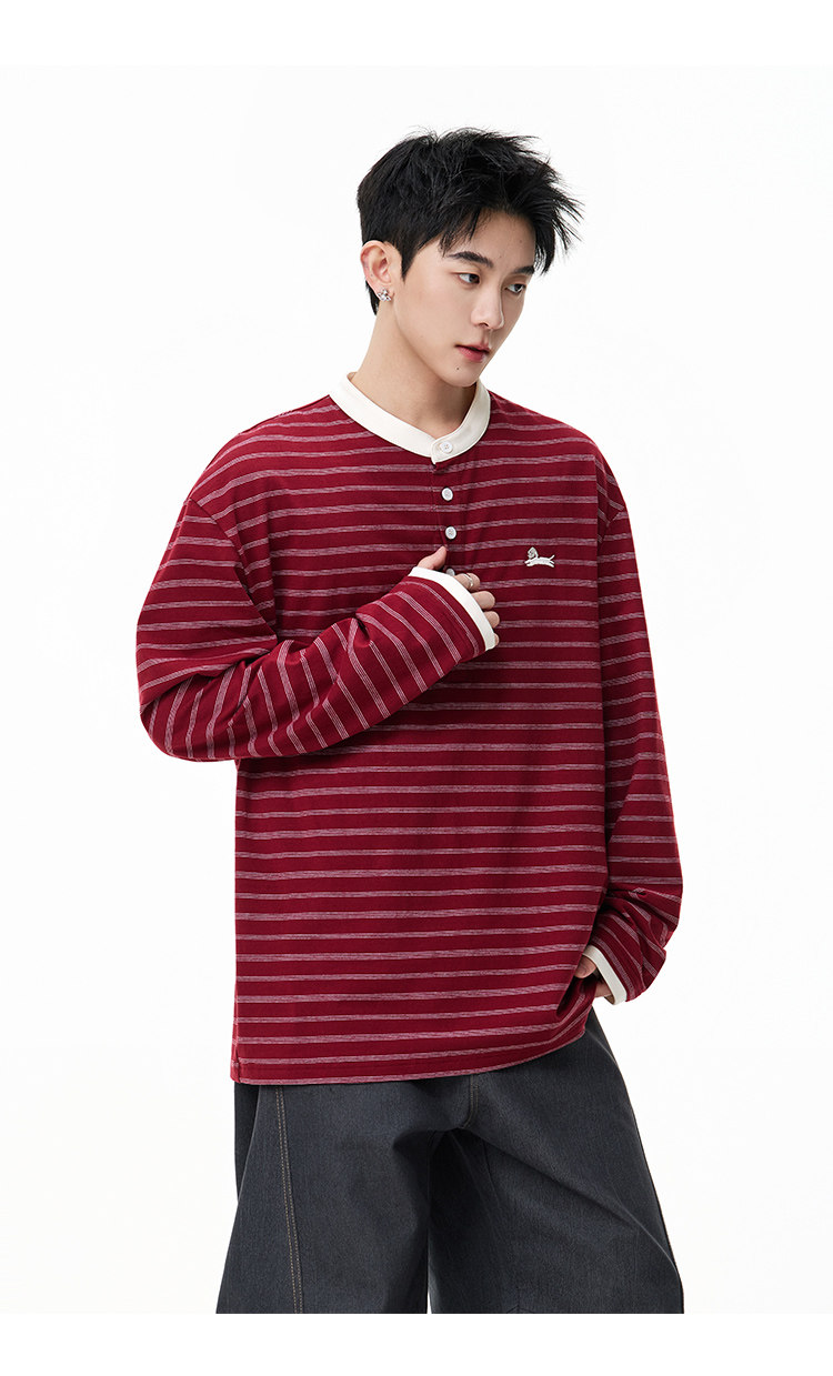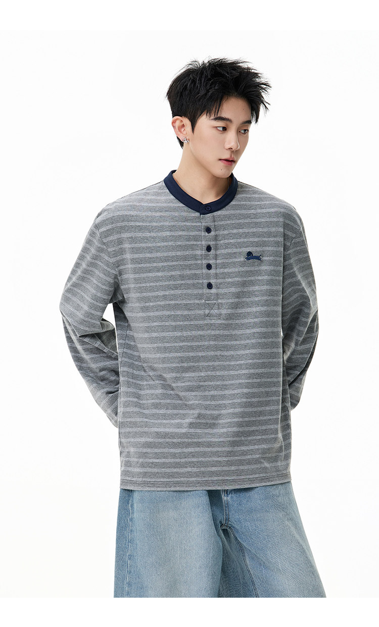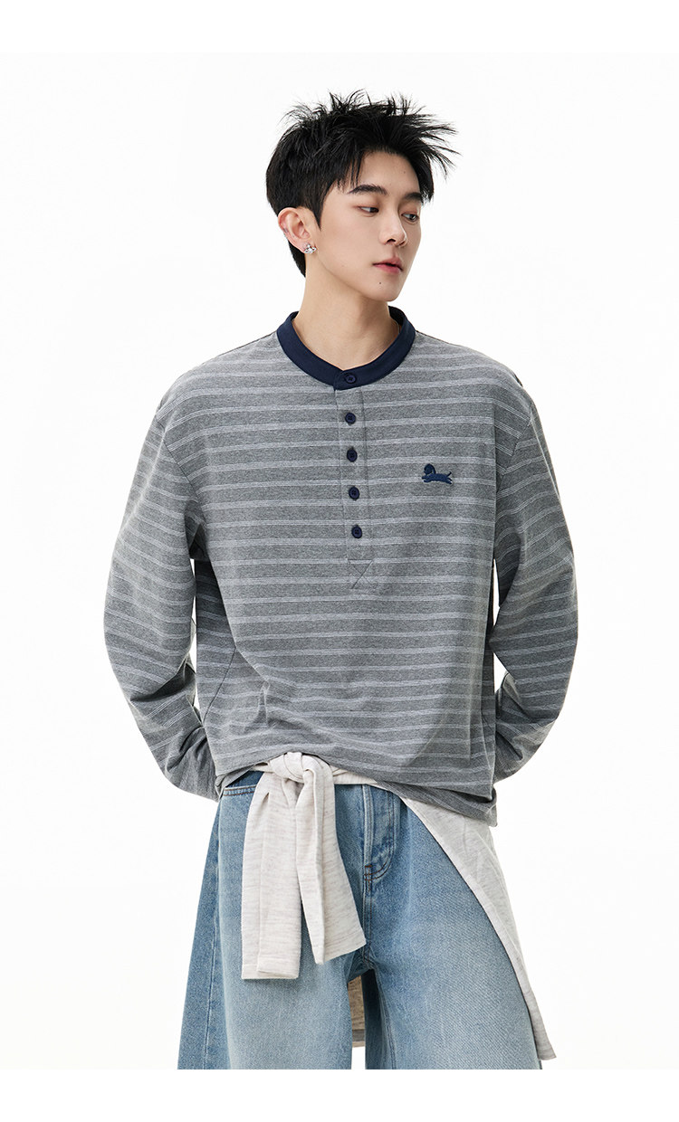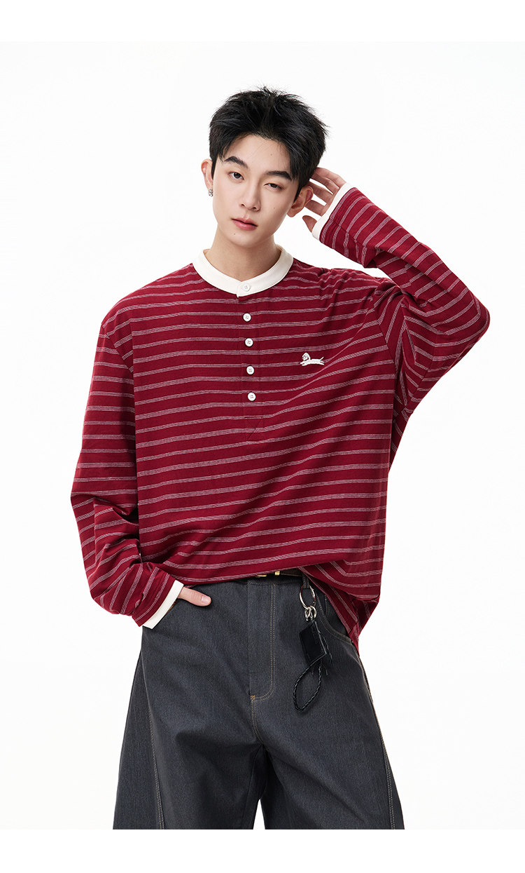 百搭條紋·亨利領長Tee