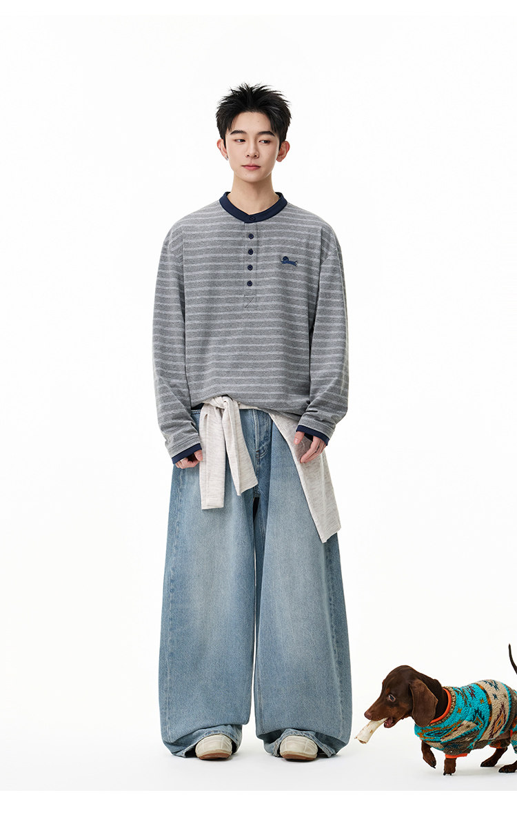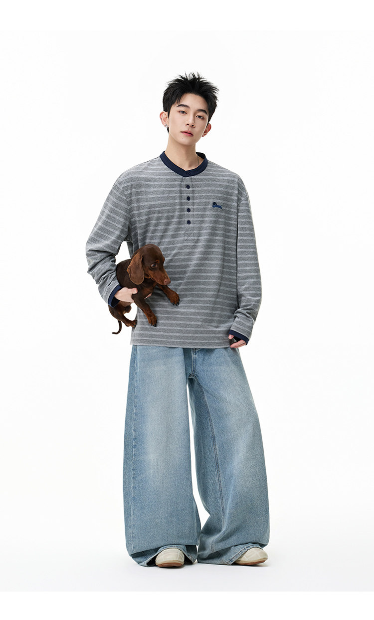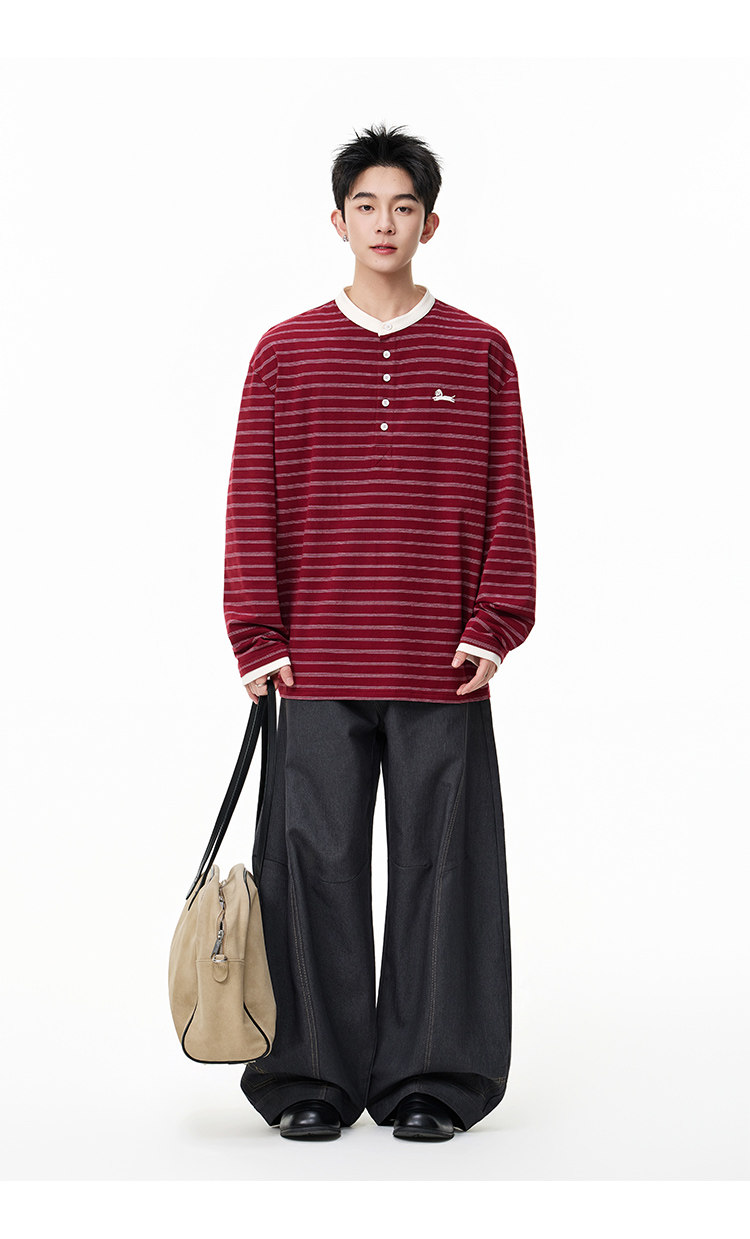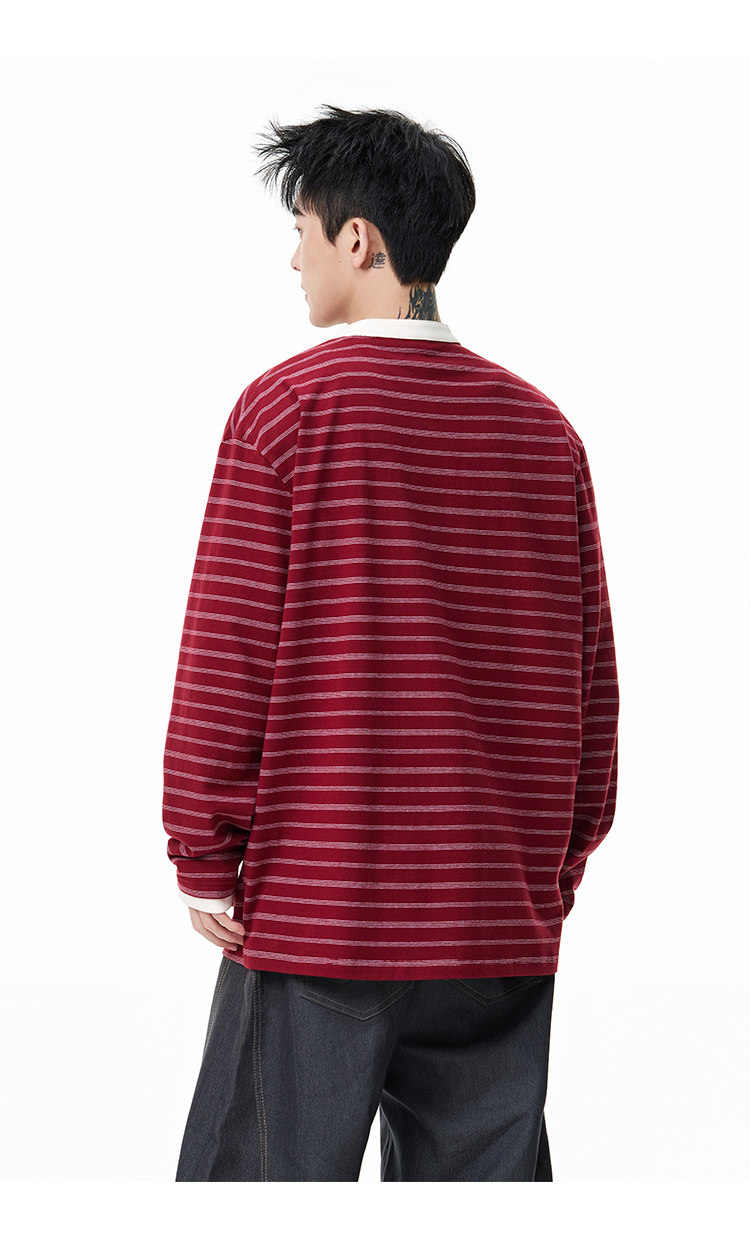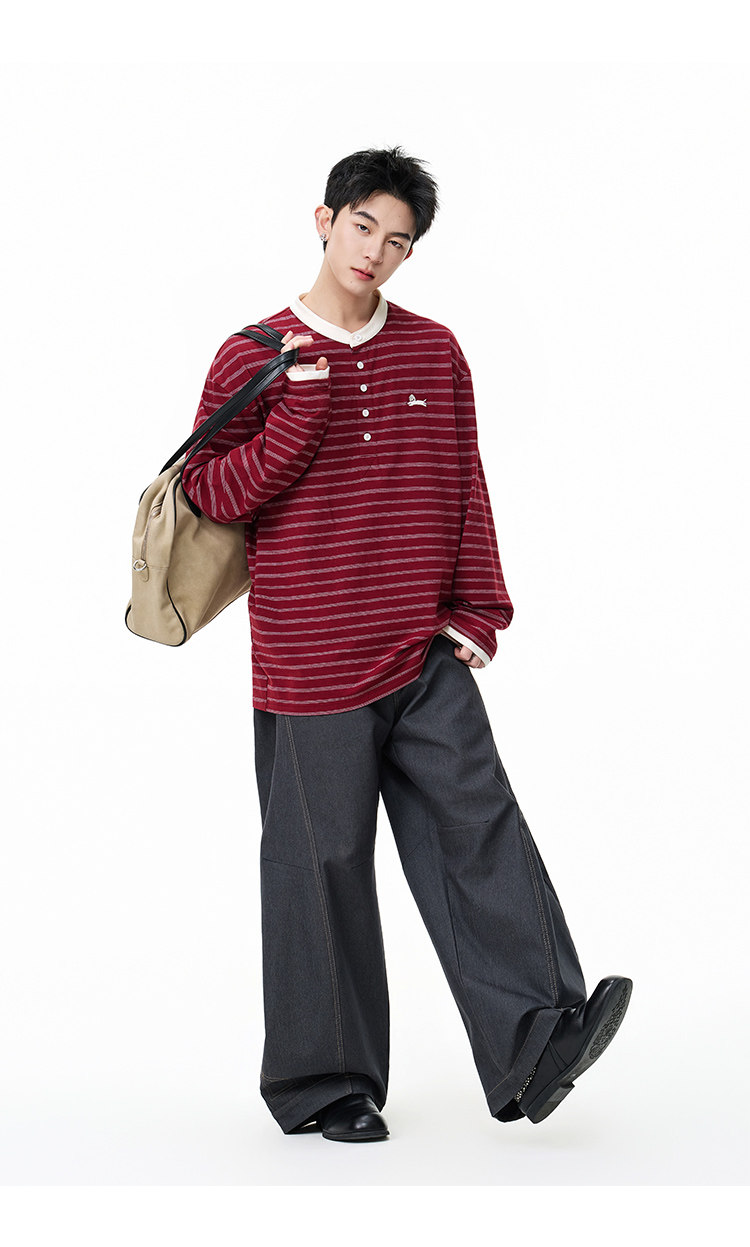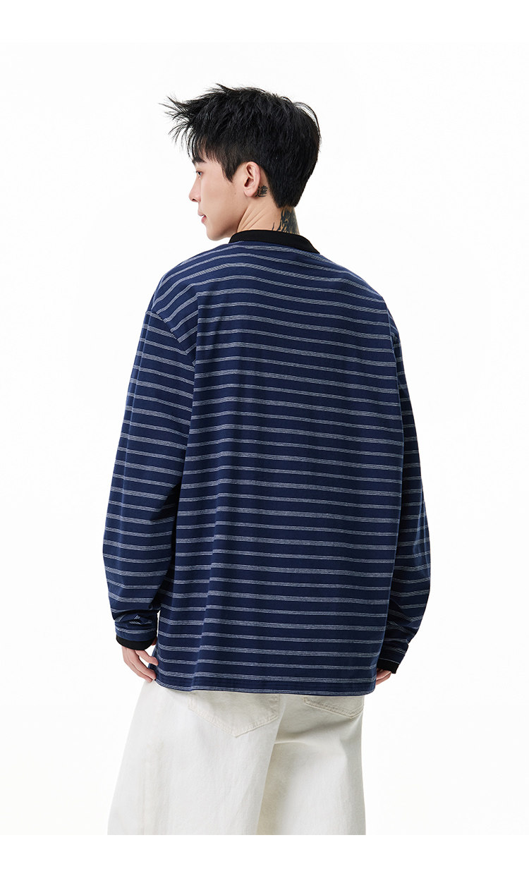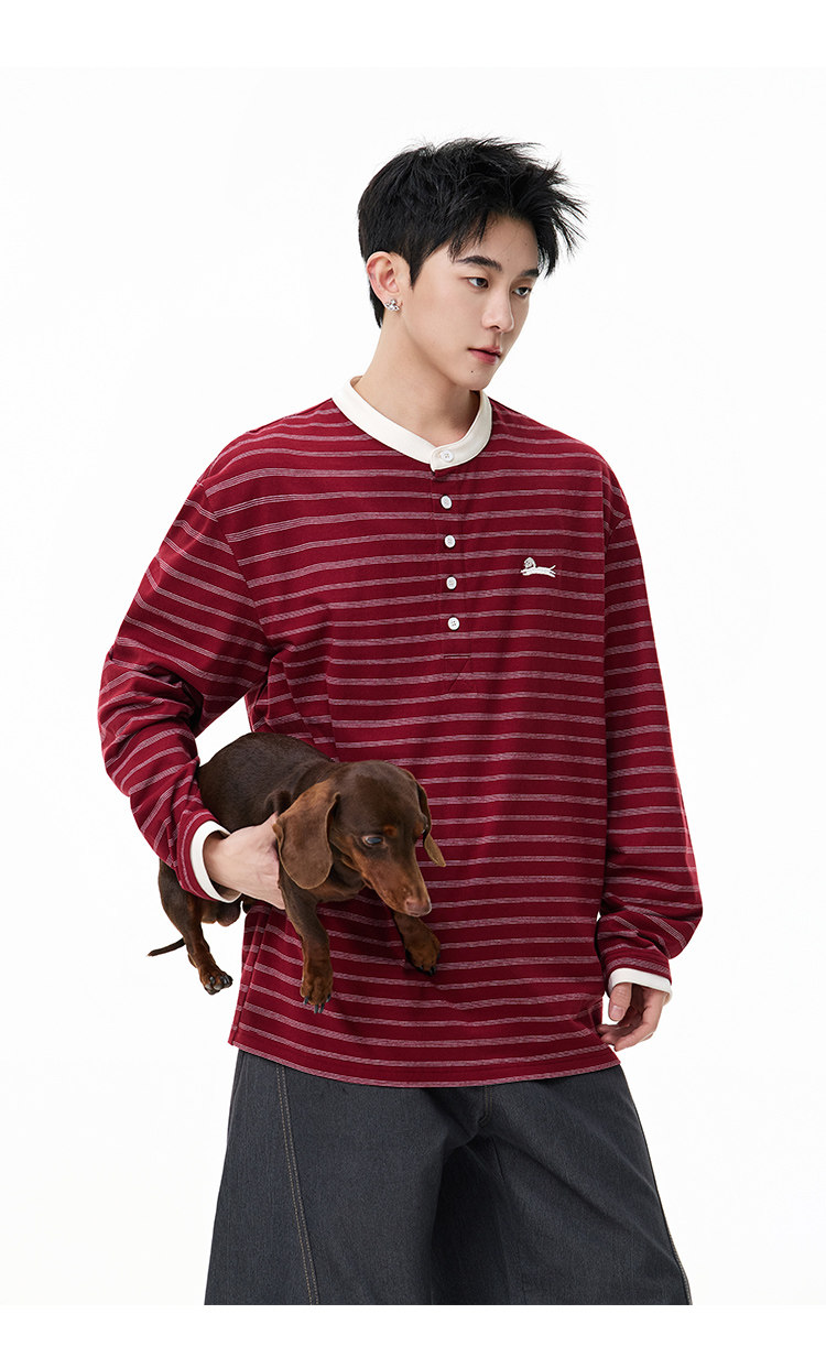 百搭條紋·亨利領長Tee