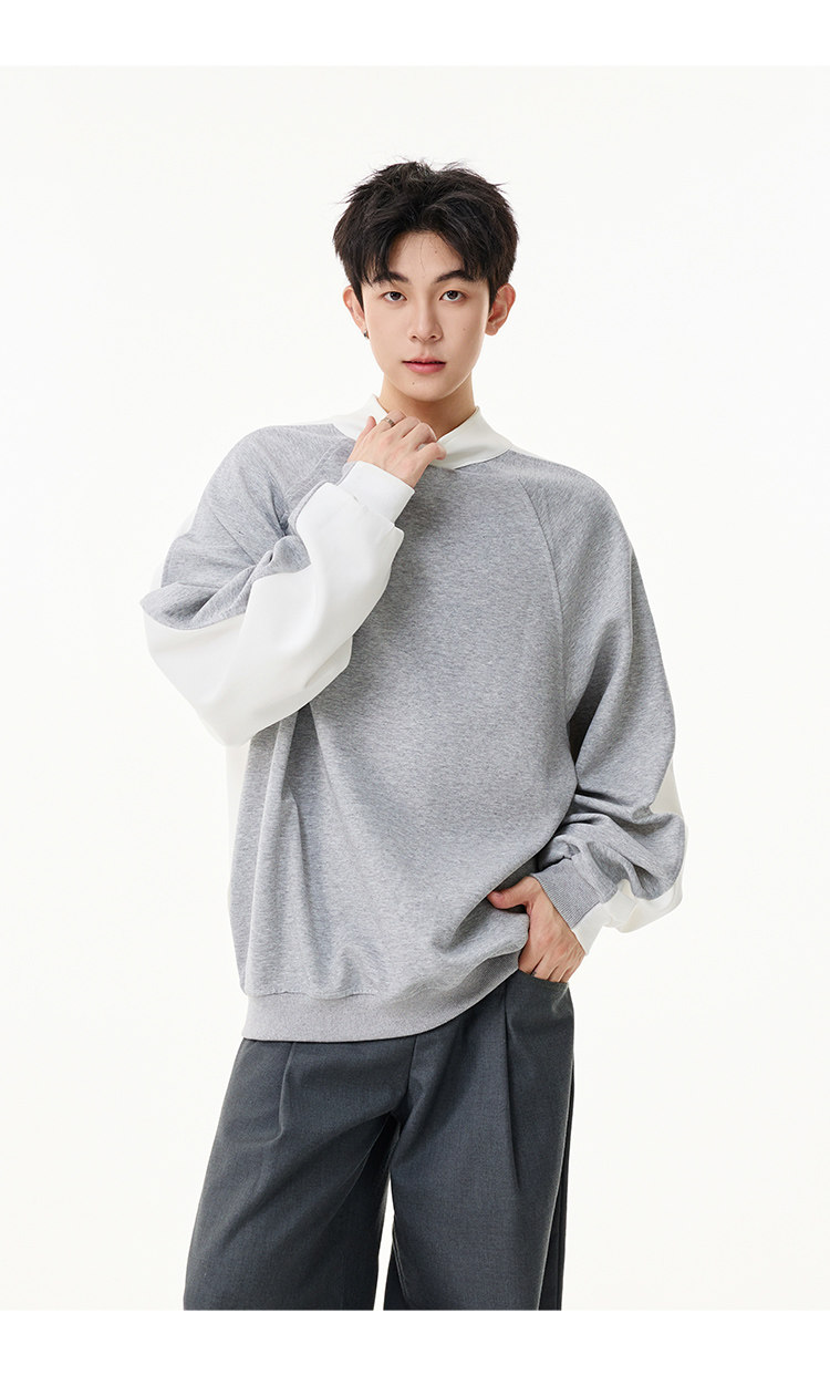 簡約拼接·翻領長Tee