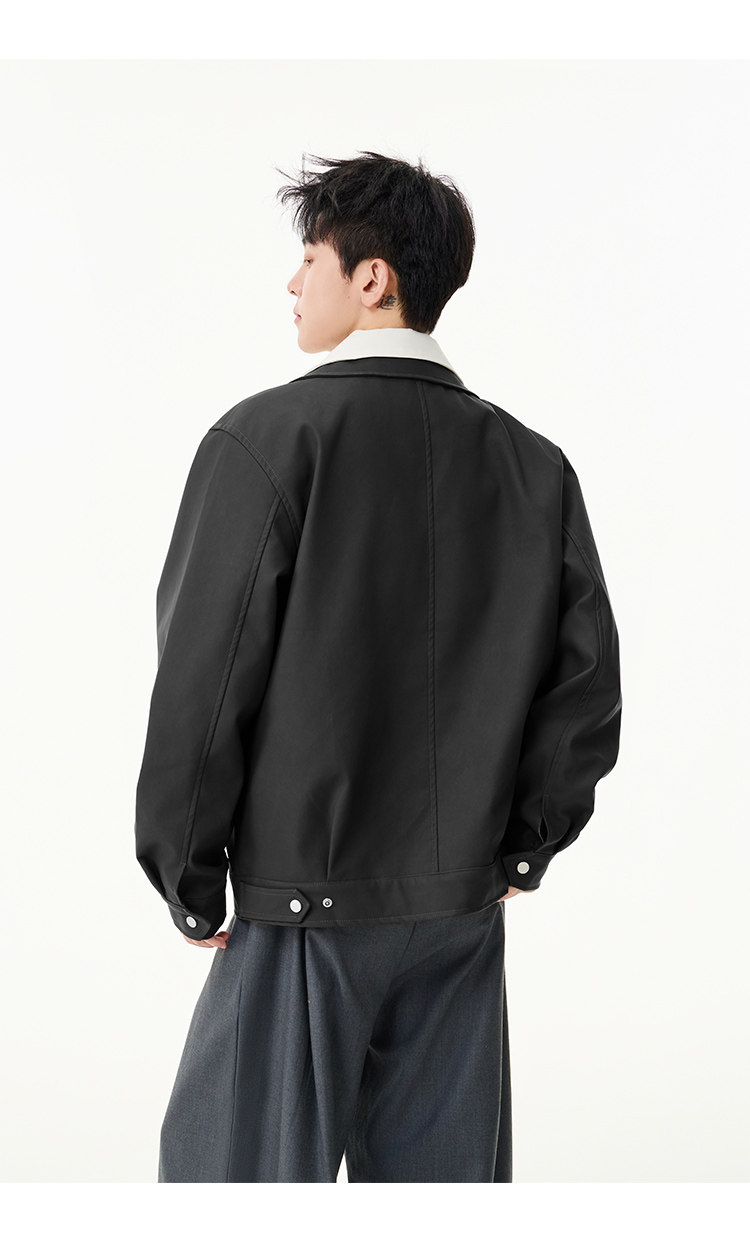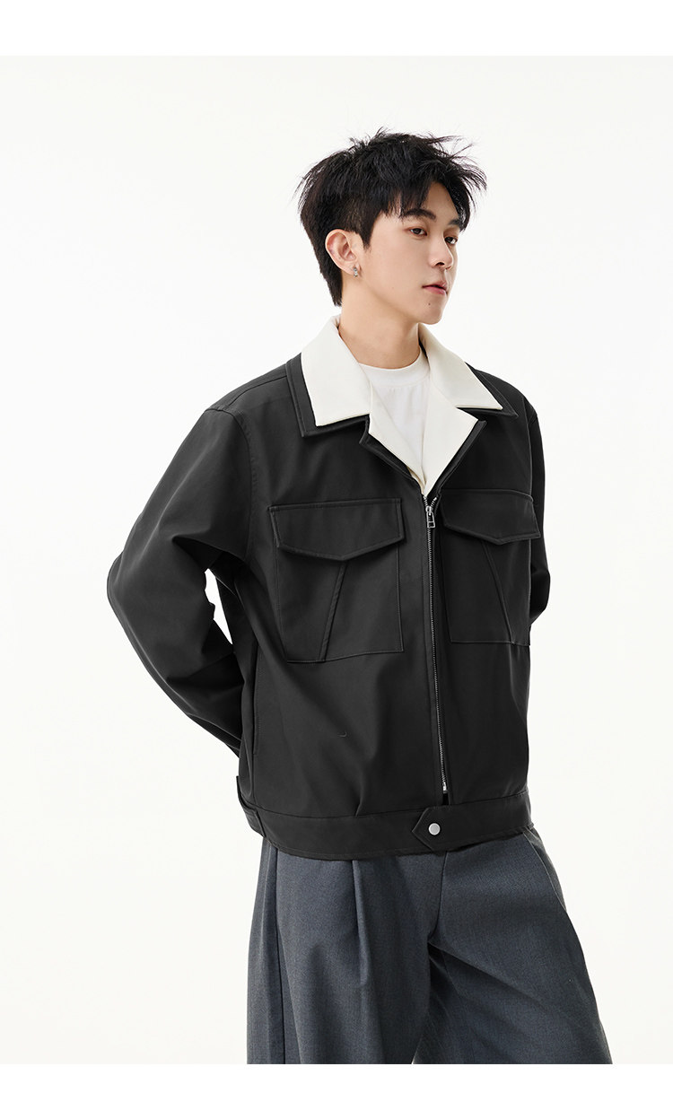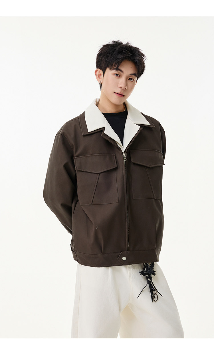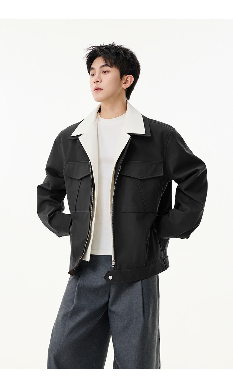 拼接翻領·口袋休閒外套