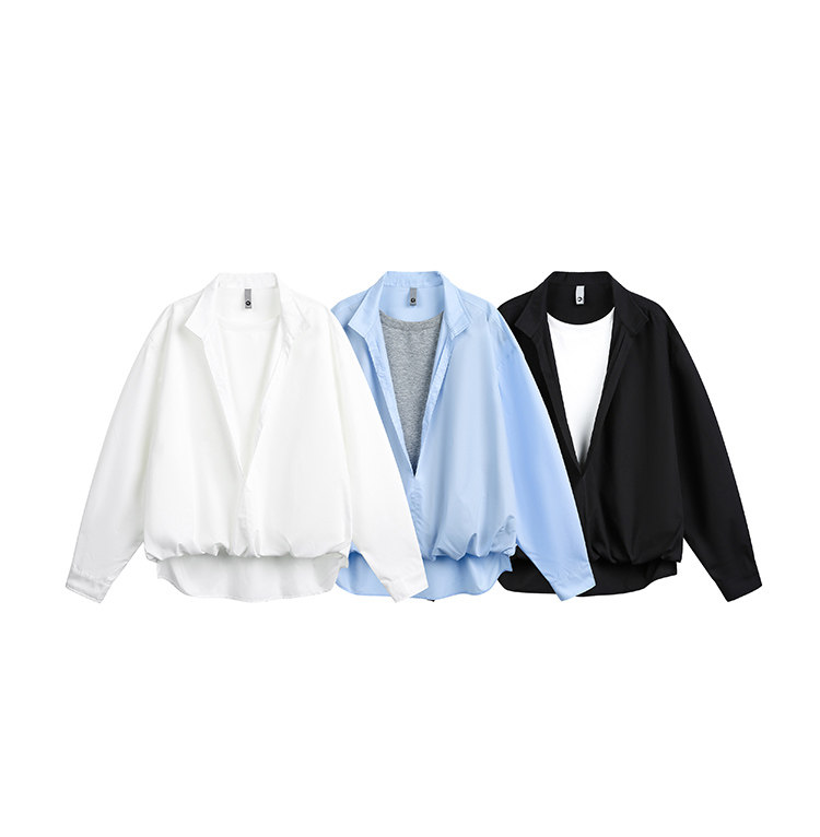 簡約拼接·翻領長Tee
