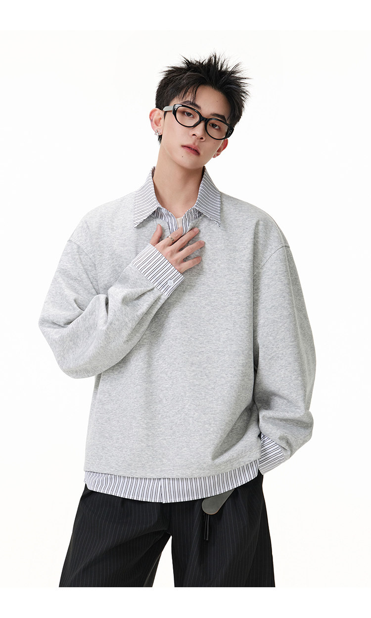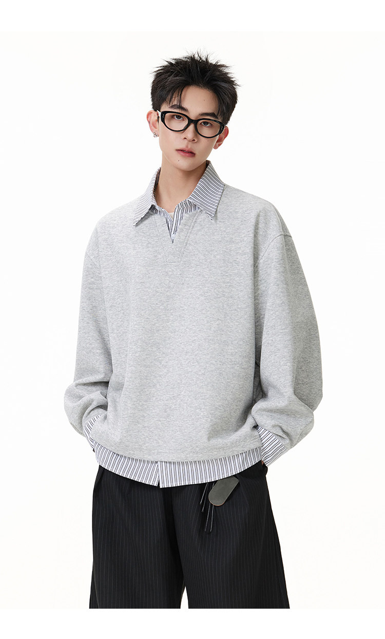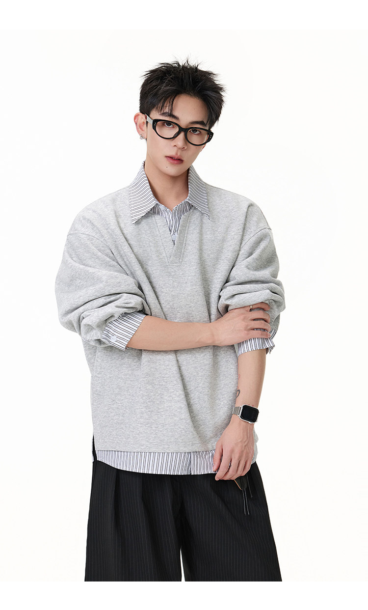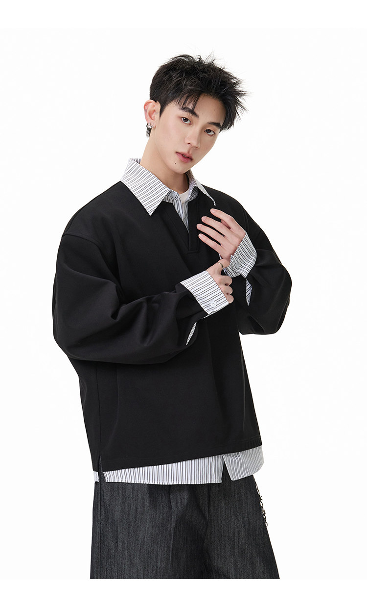 拼接寬版·兩件式長Polo衫