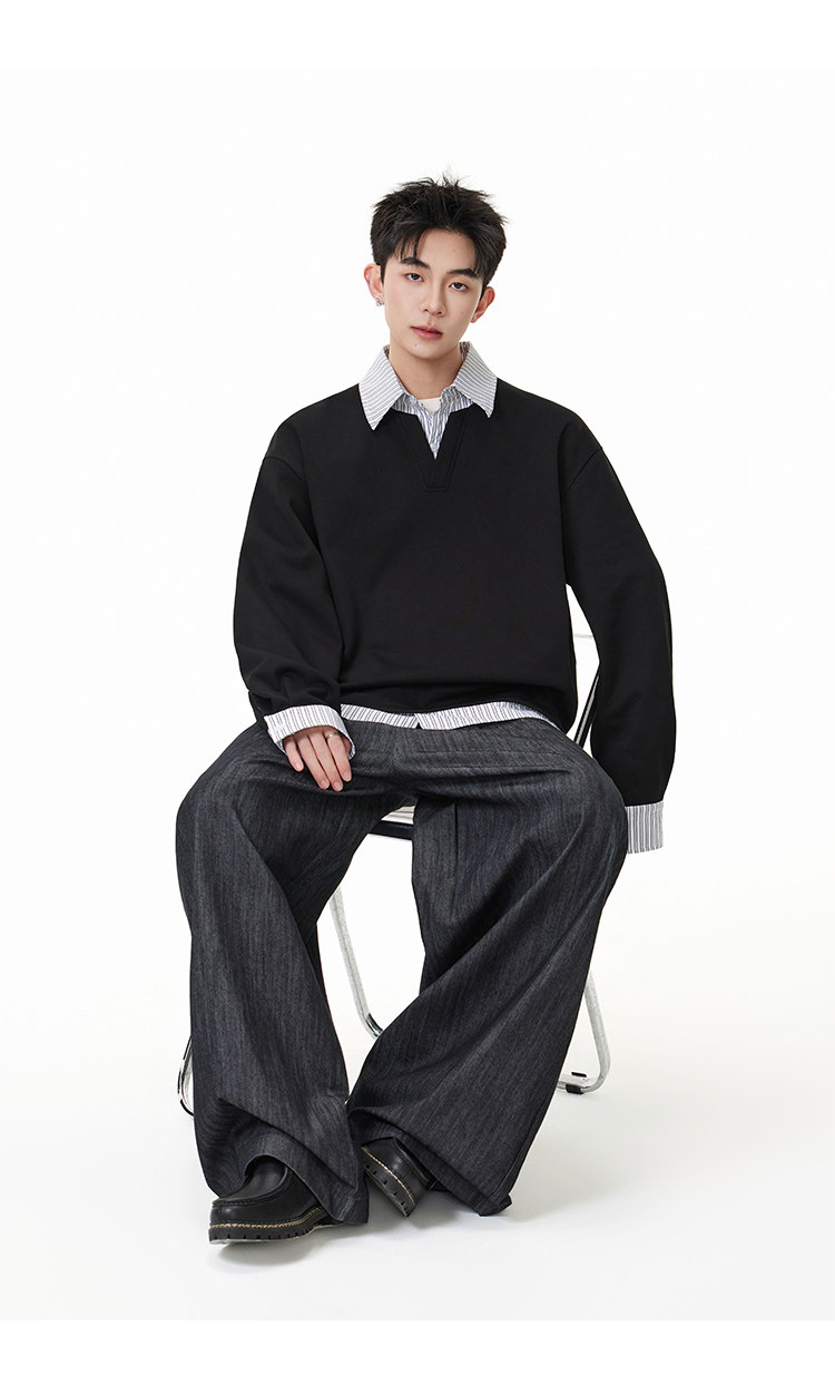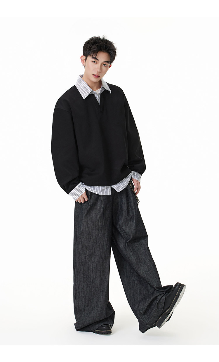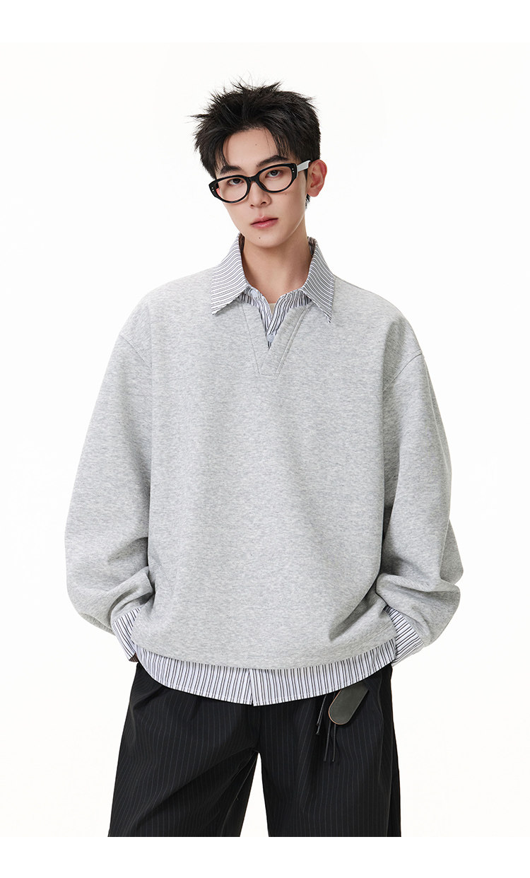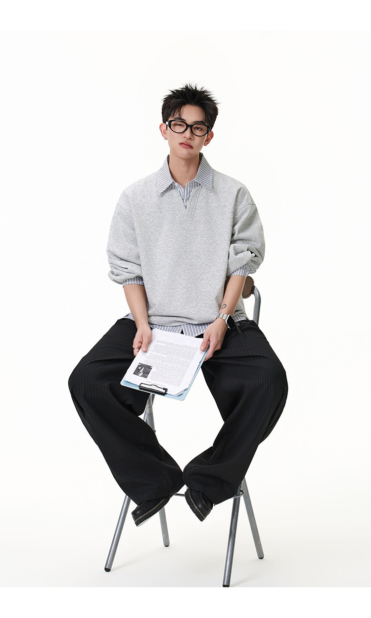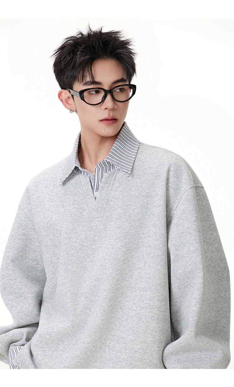 拼接寬版·兩件式長Polo衫